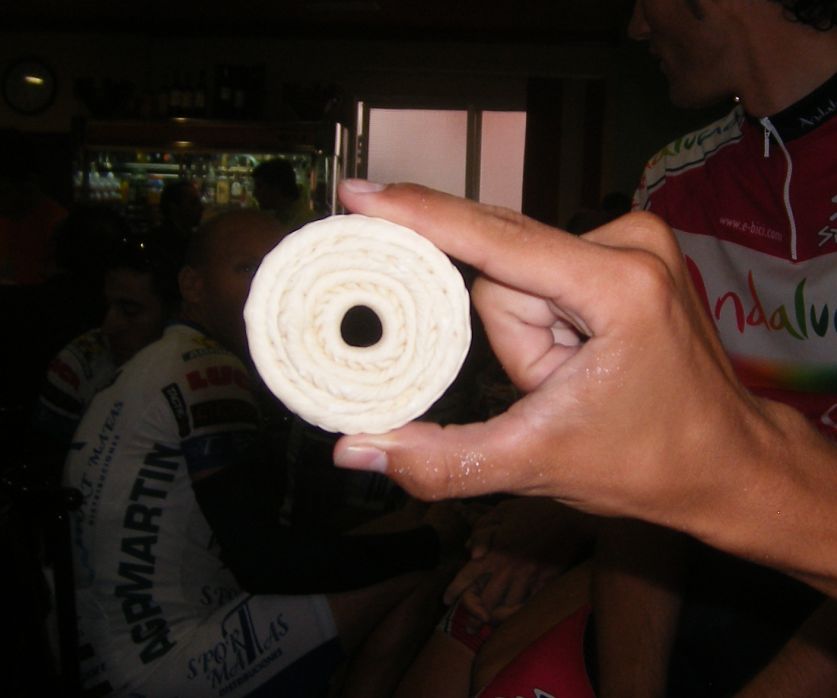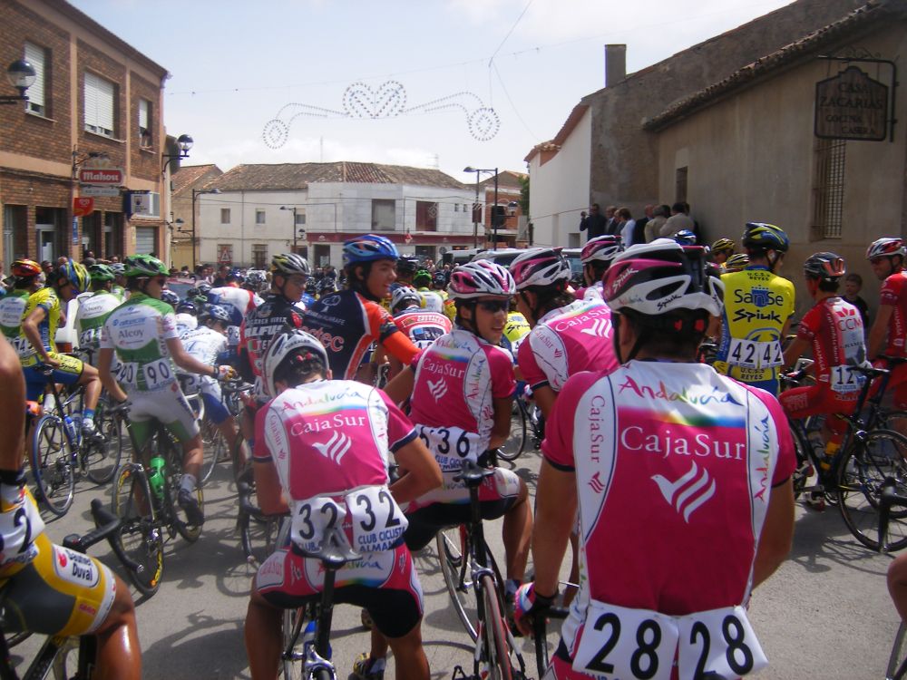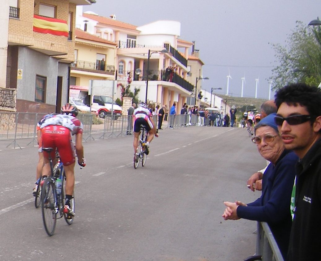 Un pequeño repechillo era un puerto puntuable, y se subió rapidisimo, o yo iba muy mal, se cortaron unos 20 en la tensada de subirlo, yo me puse a intentar pillar tirando yo pero me pegué una paliza tuve que abrirme, me pasaron y no pude ni pillar rueda, empezó mi crisis, llegando a Higueruela en el látigo con el aire de culo iba muerto, no podía ni dar pedales, hasta que pude coger la estela, pero miré para atras y vi que iba el último, ya se había cortado mucha gente.
