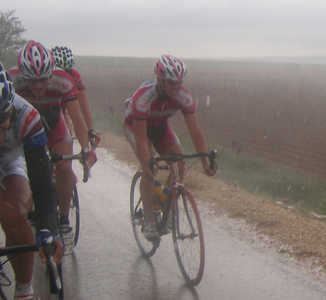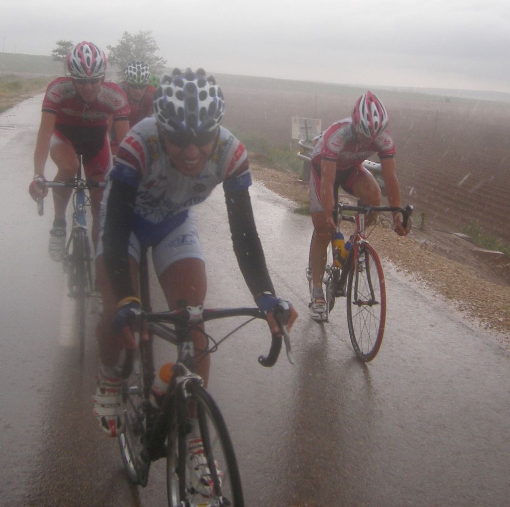 Pero después de las fotos empezó a apretar mas todavía que eso daba miedo ya, pero nos acercabamos a la autovía, y había un puente, cuando ví el puente empezé a esprintar hasta que llegué al puente de la salvación, de allí si que no salía ya con la que estaba cayendo, por que somos Elite-sub23, que si fuera de profesionales la habrían suspendido.