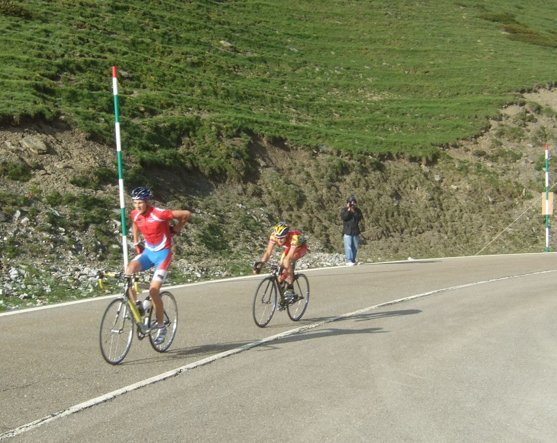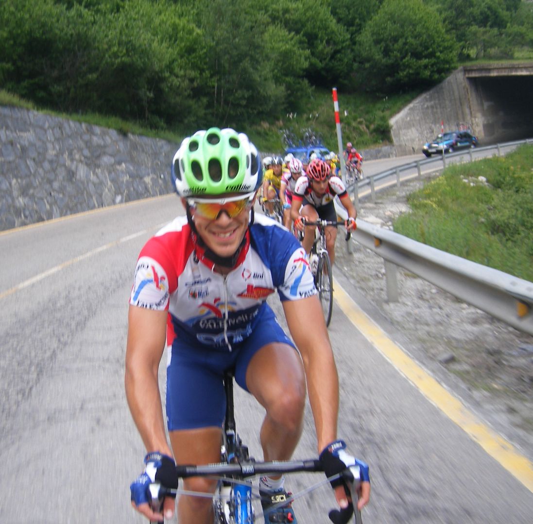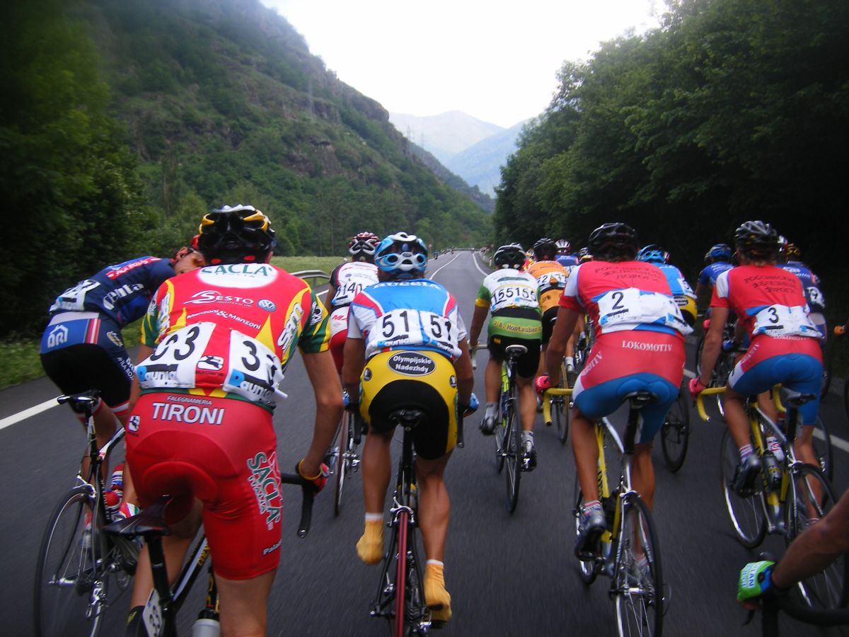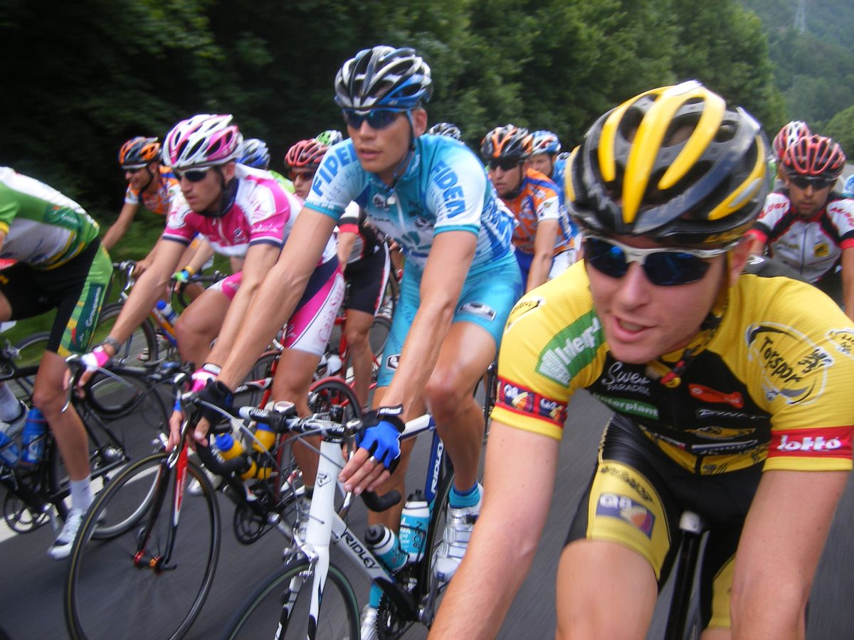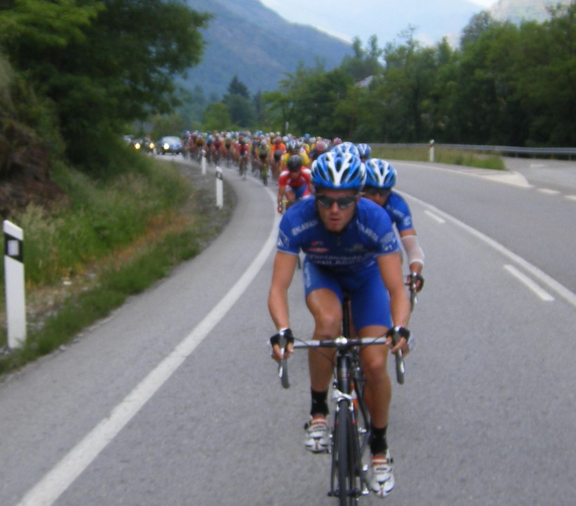 En el inicio del puerto los Davitamon que habían tirado a mil por hora en el plano cayeron como naipes, 4 setos a la vez, cogieron y se bajaron porque ya no había mas etapas, yo intenté pasar alante a ver si podía aguantar, pero empezó el italiano lider de la montaña a arrancar y se subió a mil por hora, no había paroncito para respirar, se iba cada vez mas rápido, todo el mundo había guardado para el momento y yo lo había dado ya todo por ahí atrás.
