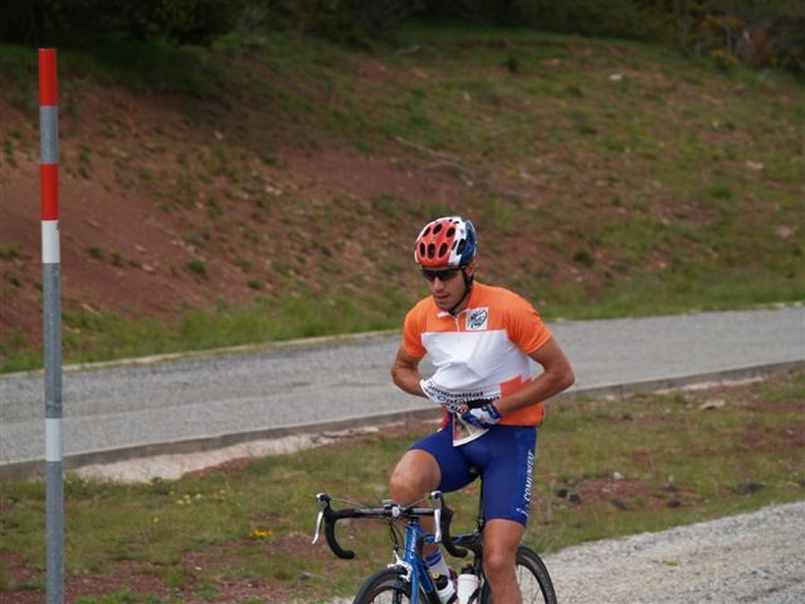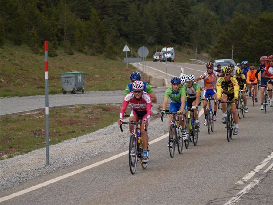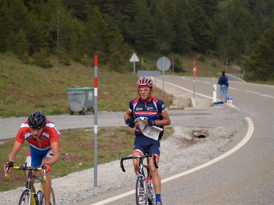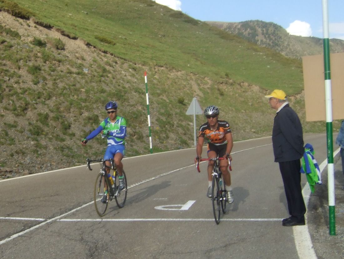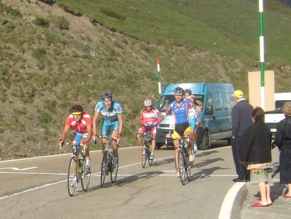 Se estaba fraccionando todo rápidamente, yo pillé un grupillo donde iba Esteban, y que yo iba degollado ahí, llegó Sergei Grechín al grupillo por detrás y se puso a tirar hasta que reventó el grupito, a mi me reventó, sufriendo entre coches, el puerto no era duro, pero dolía mucho por la velocidad que se subía, al final ya me acoplé en el grupito, que iba comandado por los Massi, que tiraban de Antonio Miguel, el puerto al final tenía rampas duras, se hizo durisimo, pero al final ablandaba y el último km era un descenso, el premio montaña era un repechín en media bajada.