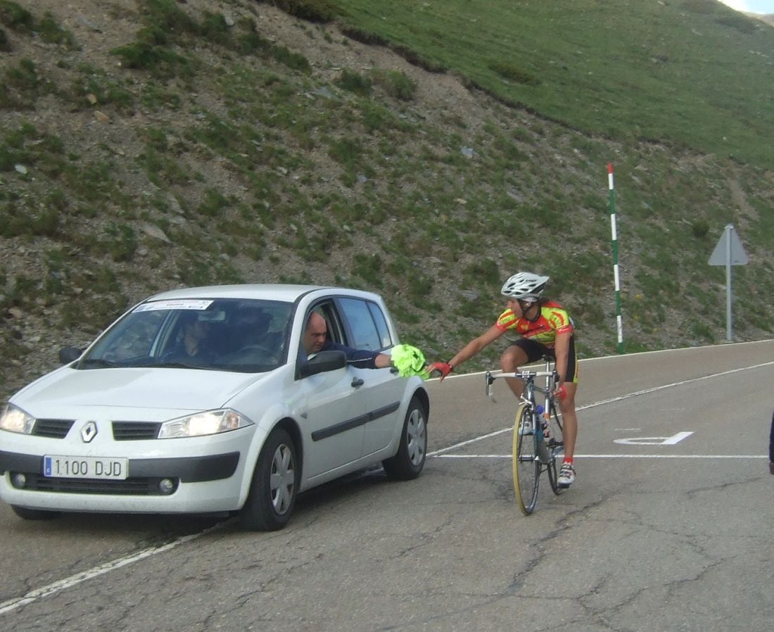 Desde el Coche Escoba ves otra perspectiva de la carrera, ves como el Motriles se remolca en los repechos, como la gente que va muy mal se queda un poco y se tiene que remolcar, como pita el coche escoba a toda la gente que ve la carrera, como saludan todos a la carrera, cosa que en carrera no ves tanto. Dentro solo había dos ciclistas, dos ingleses, que se pusieron a hablar entre ellos, asi que no había ni con quien hablar, se hicieron eternos los 40 kms en el bus y eso que tenía todas las comodidades que ponía en el cristal de atrás, fue para ponerle la guinda a esta mala vuelta Lérida que me salió donde ni siquiera le cogí la medida a la bici.