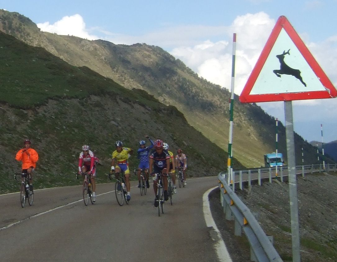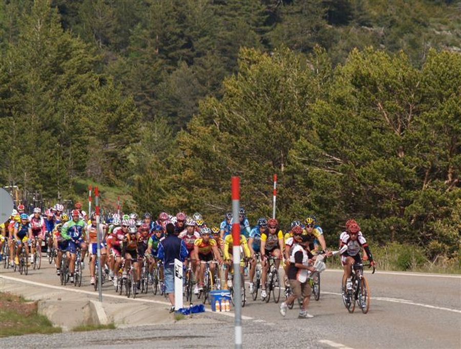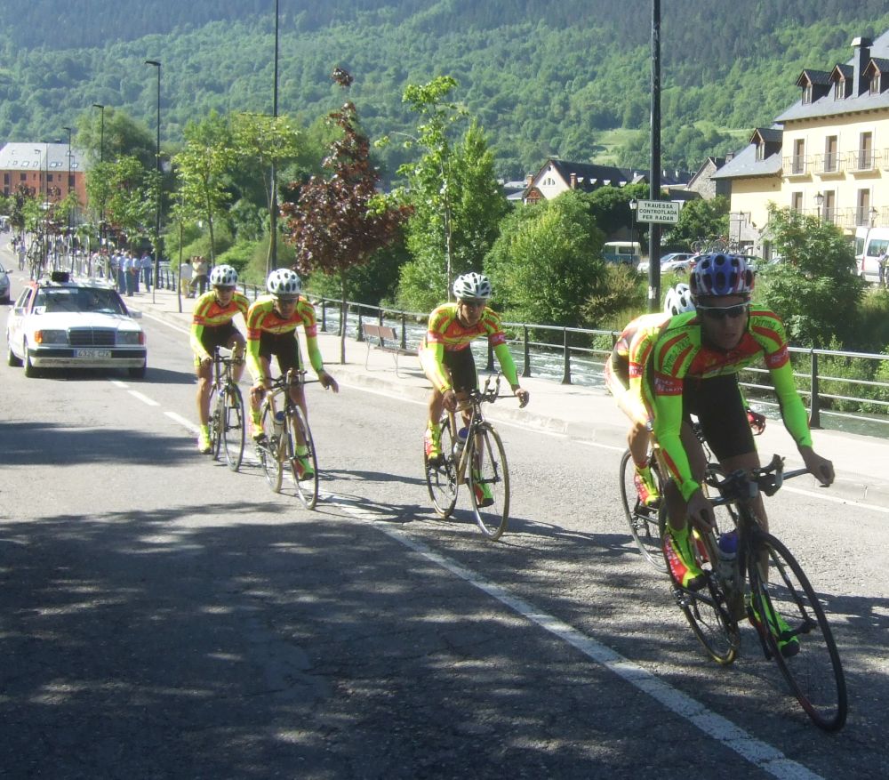 Pasando Sort entrabamos en el tramo llano camino de la Bonaigua, son 50 kms picando para arriba hasta el inicio de la Bonaigua, allí el Tren Maeztu empezó a funcionar, nos llevaba a 50 por hora persiguiendo, empezamos a pasar todos porque iba la grupeta de Sergei cerca, ibamos rapidisimo en ese tramo, y la grupeta de Sergei que no aparecía, hasta que por fin les cogimos, se unieron pues las dos grupetas, formando la gran grupeta.