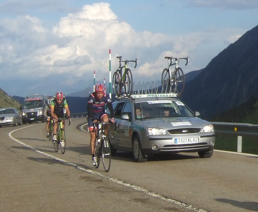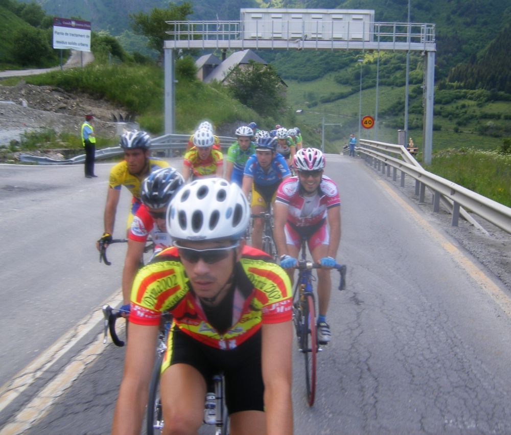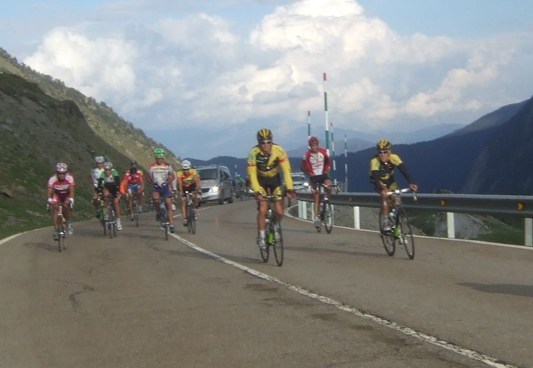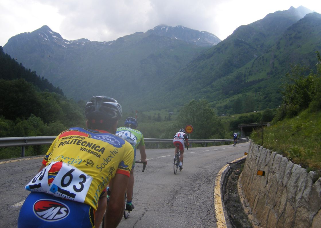 Se iba muy rápido en el pelotón, llegamos a la Intervuelta de Vielha rapidisimo y el inicio del puerto fue un sprint, yo entré mal colocado y aunque me encontré mejor subiendo que otros días empezé atrás y no había manera de remontar, pille una grupetilla donde iba Kike Cima que iba subiendo muy deprisa, allí me acoplé, me hicieron sufrir bastante, hasta que ya llegamos a un terreno mas favorable cerca del tunel.