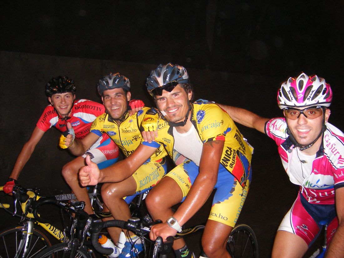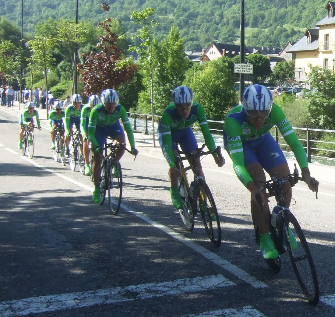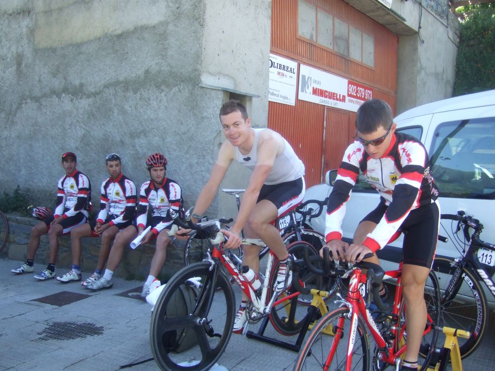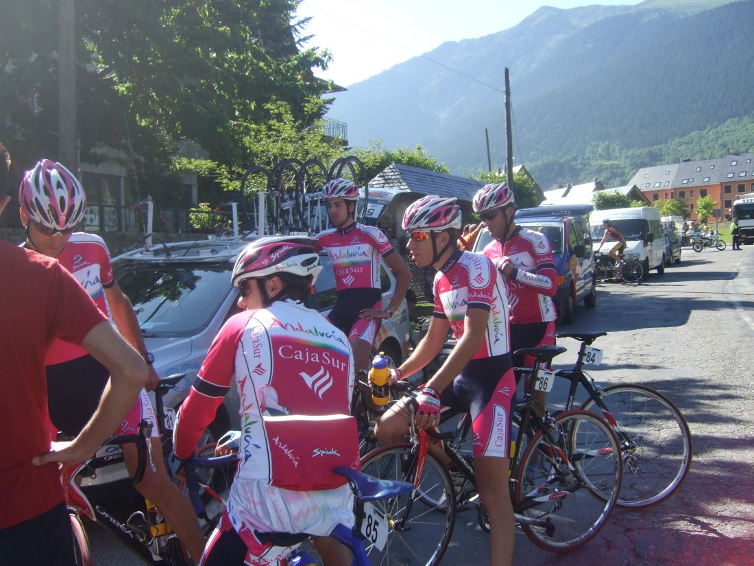 Ya estabamos en la carretera de la Seu d´Urgell, empezó a ponerse negro y a llover con mucho aire de cara, entramos calados a meta y a 10 minutos. El Maté hizo segundo, casi gana aqui, que tiene mucho merito, en toda la vuelta no ganó ningun español y en las tres ultimas vueltas el unico español que ha ganado una etapa ha sido el Manu, la crono del Pont de Suert. Pero hace tres años la Vuelta la ganó el Cordobés Antonio Arenas, que se la ganó al campeón del mundo sub23 de ese año.