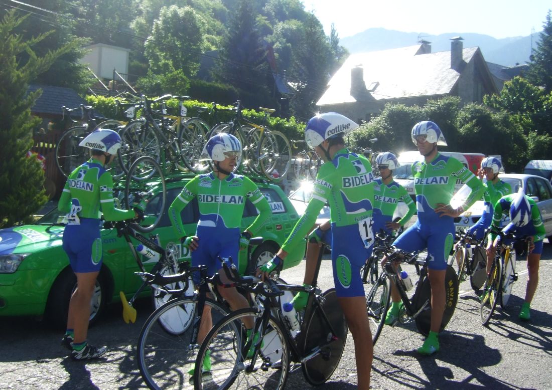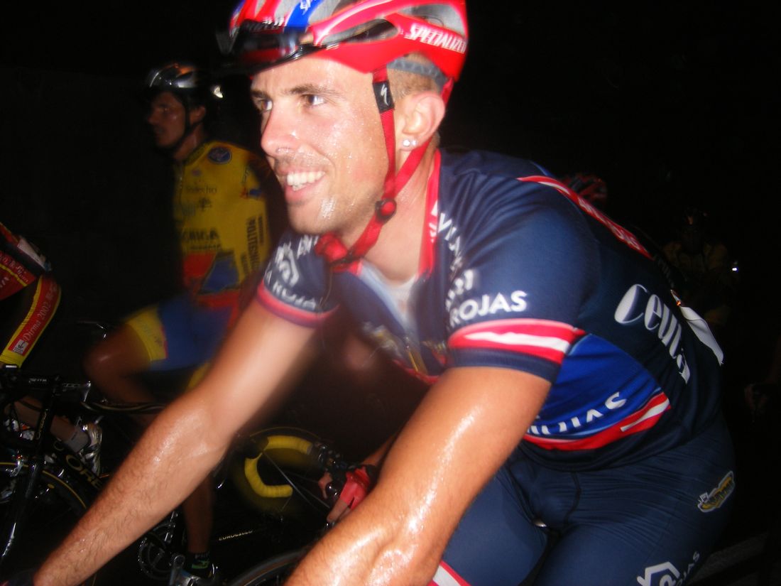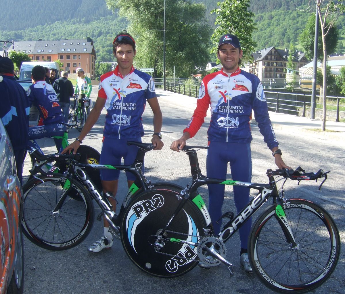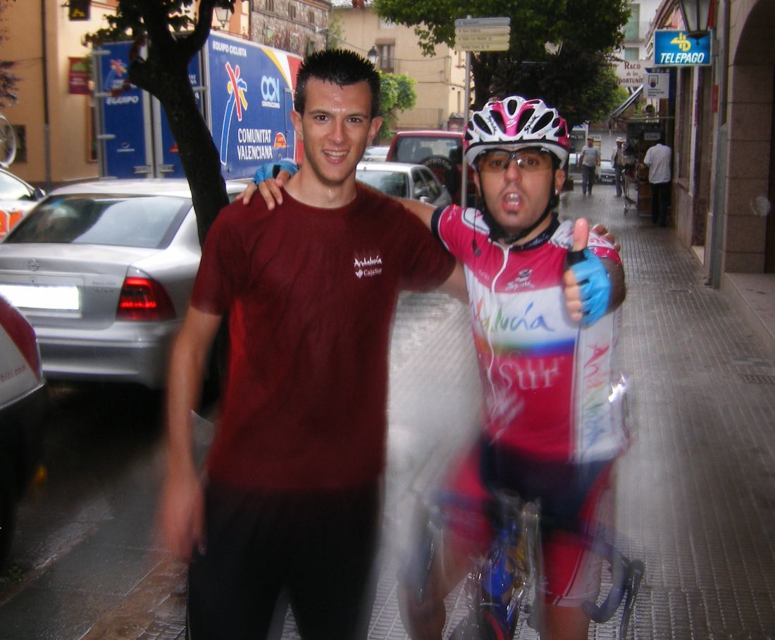Ya estabamos en la carretera de la Seu d´Urgell, empezó a ponerse negro y a llover con mucho aire de cara, entramos calados a meta y a 10 minutos. El Maté hizo segundo, casi gana aqui, que tiene mucho merito, en toda la vuelta no ganó ningun español y en las tres ultimas vueltas el unico español que ha ganado una etapa ha sido el Manu, la crono del Pont de Suert. Pero hace tres años la Vuelta la ganó el Cordobés Antonio Arenas, que se la ganó al campeón del mundo sub23 de ese año.