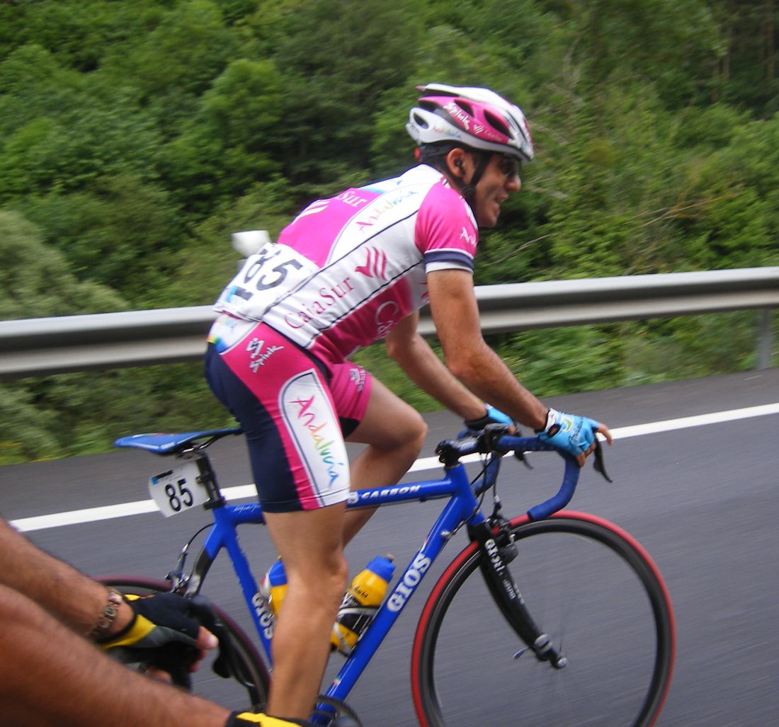 Iba yo mirando para atrás a ver si encontraba el vagón bueno para subir el puerto bien, y vi que venía el mítico Sergei Grechín, con algunos tios acoplados a su rueda, asi que paré un poco para pillar aire y cuando me pasó me metí a rueda del Tren Grechín. Joder como iba el Sergei, subiendo a 26-28 por hora, me llevaba engatillao, casi que ibamos recortando al pelotón, al fin coronamos el puerto y el descenso fue peor, porque al haber cambiado las medidas de la bici ahora si que no bajaba nada de nada, asi que me soltaron bajando rápido, todo lo que sufrí a rueda del Grechín lo perdi bajando.