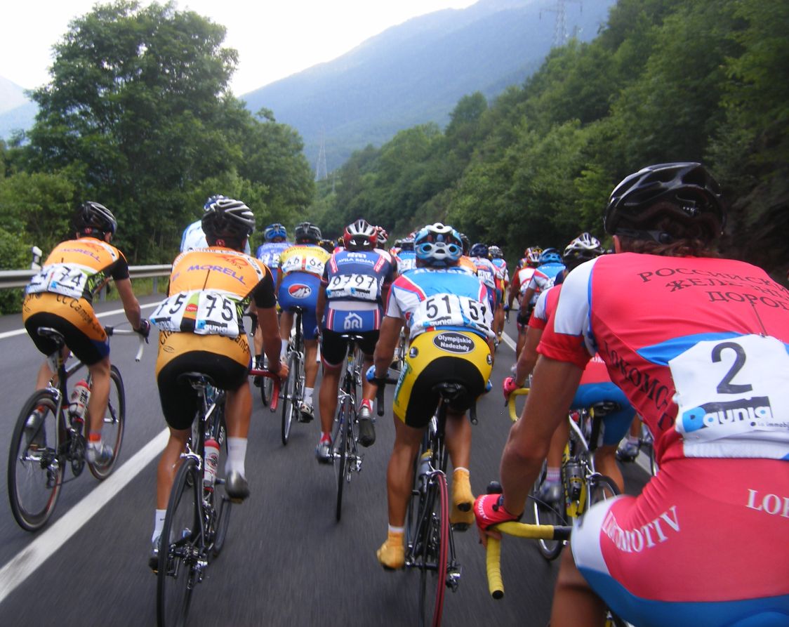 Pero me pillaron unos rusos en el tramo que había de repechos entre puerto y puerto y volví a entrar en el grupo de Sergei Grechín, donde empezamos el último puerto, el de segunda, que no era gran cosa, bajando si se me hizo larguisimo, lo pasé mucho peor que subiendo, tuve que enganchar persiguiendo en el plano que había despues de la bajada, cuanodo volvi a enganchar con el grupo ya faltaba el Sergei que se había pirado bajando a remar el solo por delante pero que ya no iba a coger a los de alante.