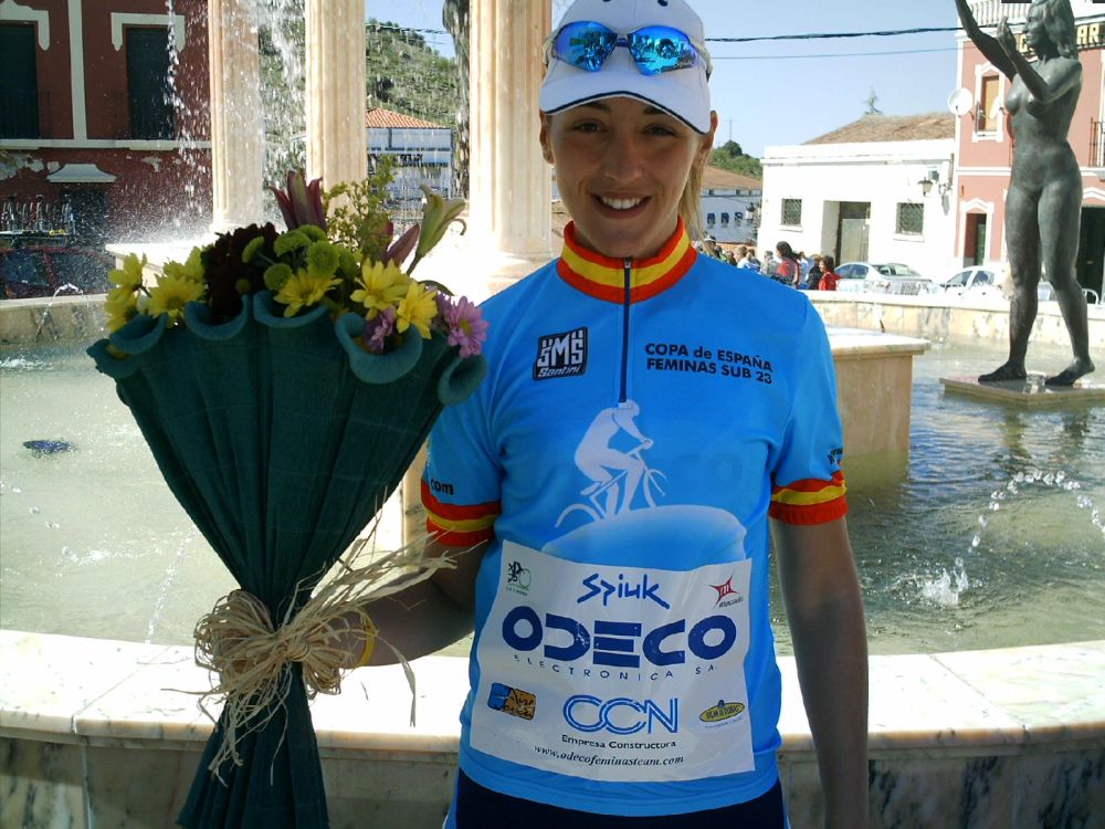 Patri triunfal con su maillot azul de lider de Copa España Sub23.
