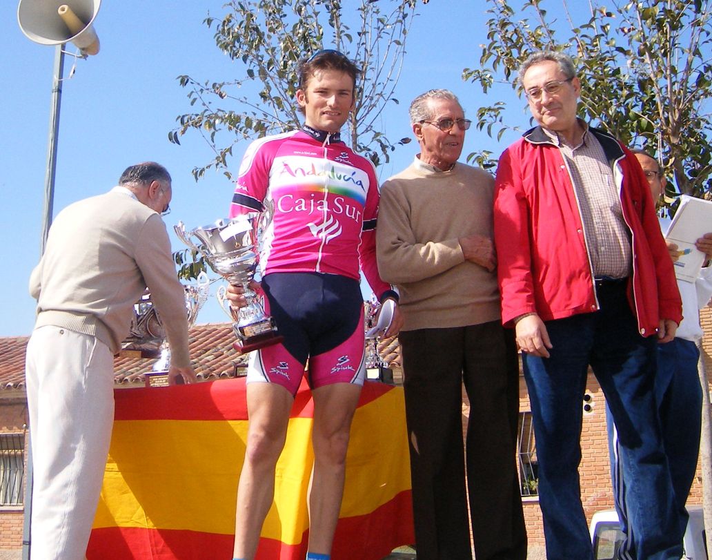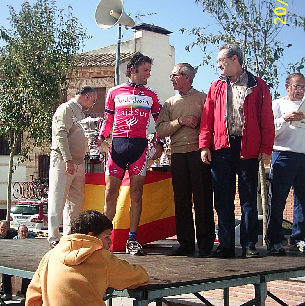 Una vez arriba miré atras y vi como venía el pelotón a mil por hora ya dandolo todo, había cierto parón y fui yo el que dio continuidad, pedí relevo, me paso Taffí quise que pasara Escobar, pero me dejó cortado, me hizo la 13-14, son paisanos, asi que iban los dos contra mi, tuve que salir a por Taffi y ya me remachó Escobar a un km de meta, no pude hacer nada, ya miré para atrás para llegar tercero con cierta tranquilidad, por lo menos salvaba el podio pero la carrera se me había escapado, faltaba Esteban Plaza u otro compañero allí.
