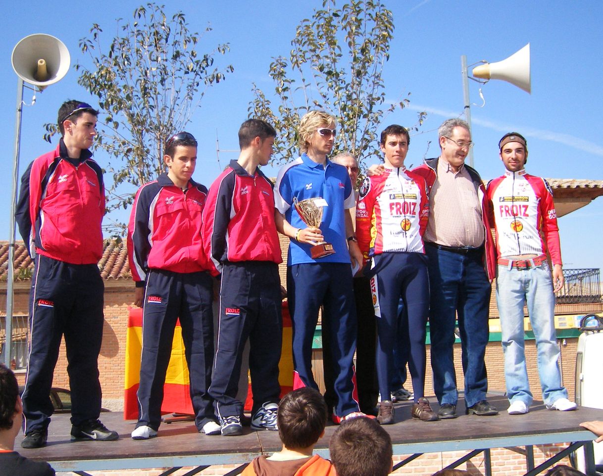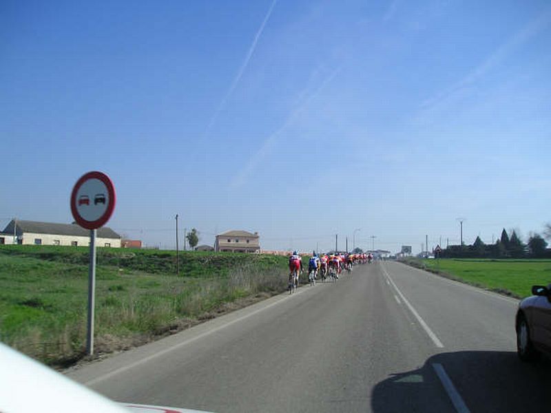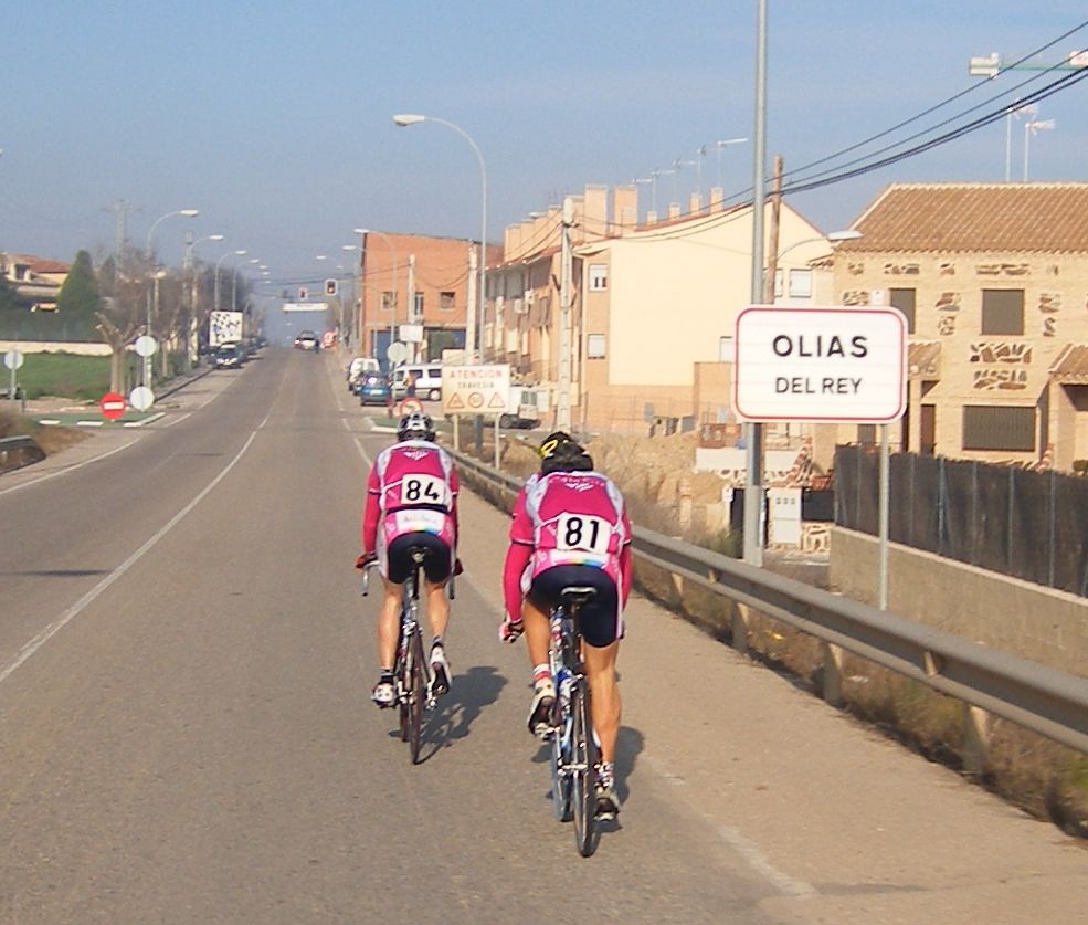 Teniamos una misera ventaja de 15 segundos, esto no iba a ser fácil, pero no nos desanimamos y con nuestro ritmo fuerte la ventaja subió a 30 segundos en Mocejón, donde se gira hacia Olias del Rey, donde estaba el repecho del Premio Montaña, antes hay una recta, que hicimos a buen ritmo manteniendo los 30 segundos de ventaja, hasta que llegamos al premio montaña, allí arrancaron el Taffi y el Galleta tan decididos que se disputaron la montaña entre ellos, yo esperaba que saliese el escalador Esteban a por ellos pero Esteban no hizo ni el amago y tuve que salir yo, que pasé tercero.