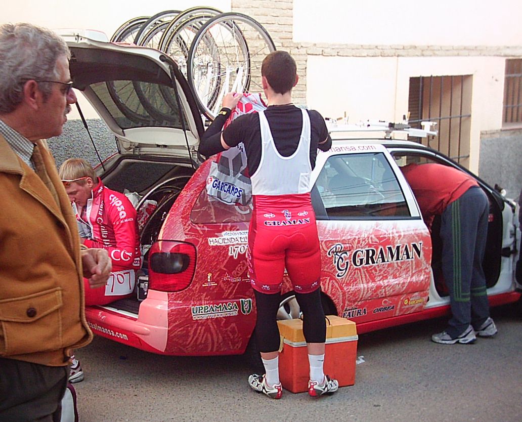 Nos dirigiamos al repecho, el repecho donde se hizo la fuga en 2003, asi que yo iba dando voces - Hay que llegar!! - Hay que pasar el repecho y si lo pasamos esto irá para alante!! Llegamos al repecho y yo todo nervioso me puse a abrir gas para coronarlo con hueco con el pelotón, subi el repecho a muerte y cuando lo coroné la gente estaba un poco desestabilizada, se había cortado el Nagares totalmente, pero nos juntamos 6, unos seis que ya ibamos a durar bastante. Los 6 componentes eramos el Galleta del Froiz, Taffi, mi compañero Esteban Plaza, un Sanse, Jimenez del Trican y yo.