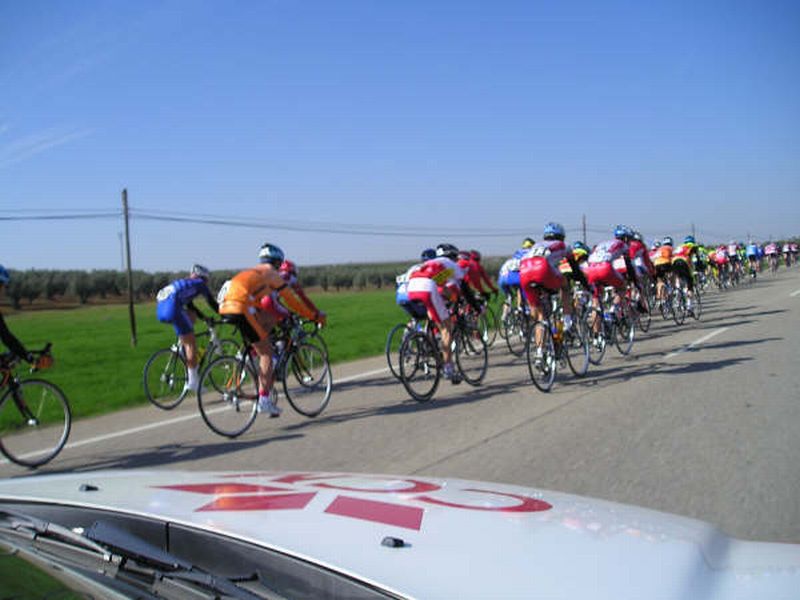 Llega el de la Moto -"20 segundos", yo lo vi ya indignado y gritando - Es por culpa de estos zanganos que no tiran, pa que coño os meteis en la escapada si no tirais!! Ruederilesssss..en fin.. parece que las plegarias surtieron efecto y por lo menos Esteban siguió pasando relevos, aunque no con mucha decisión. Esta vez queriamos pasar el siguietne puerto de Olias, por que seguramente allí se desestabilizarian los Sanse y romperían el ritmo, algunos decían que los Sanse no tenían equipo con fuerza para cogernos, pero eran muchisimos Sanse tirando y la unión hace la fuerza.