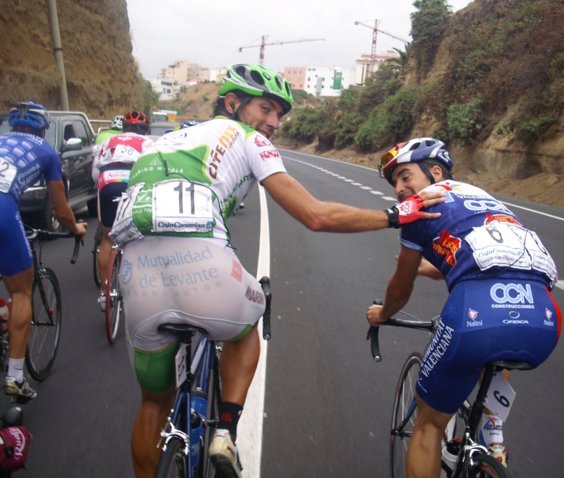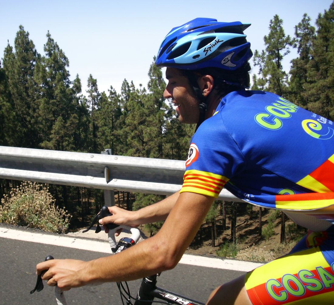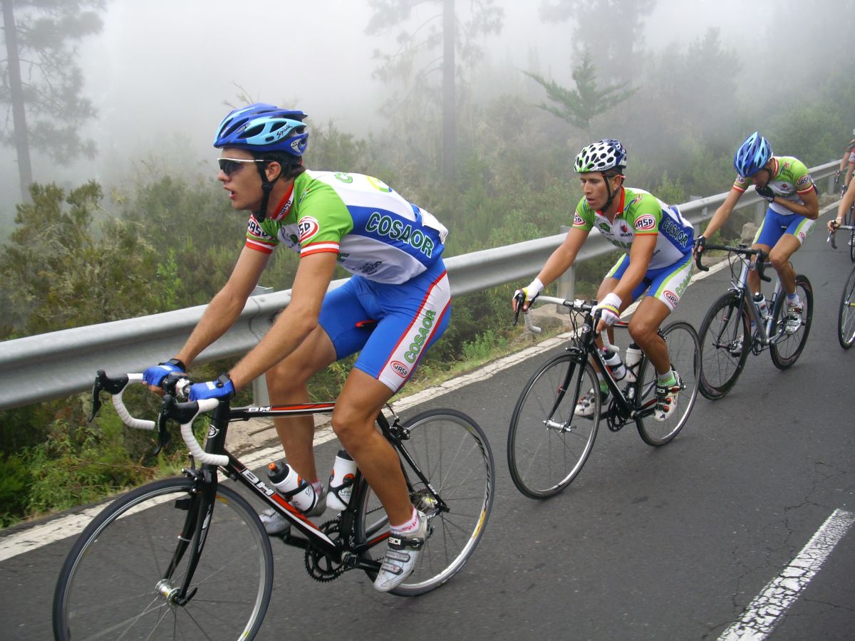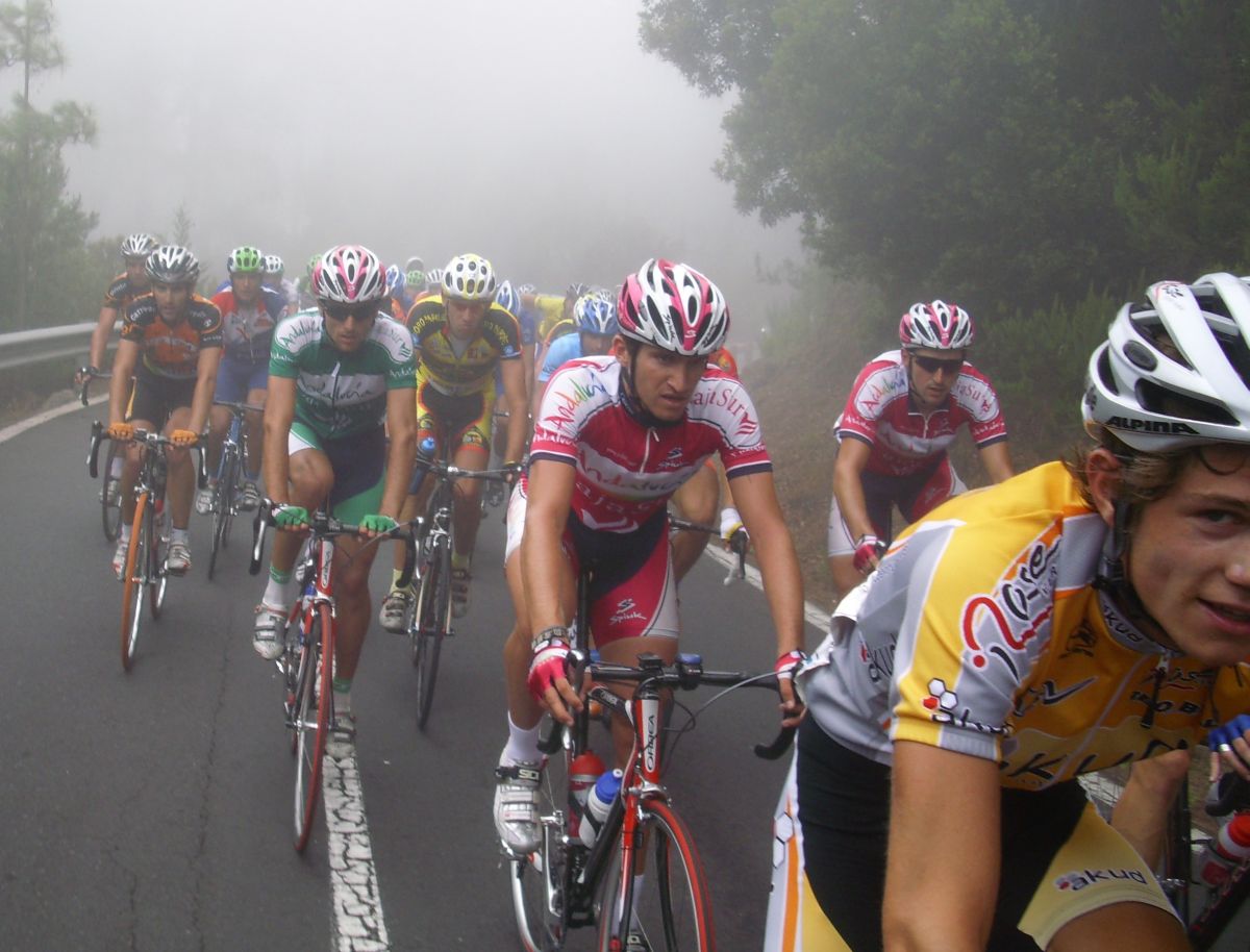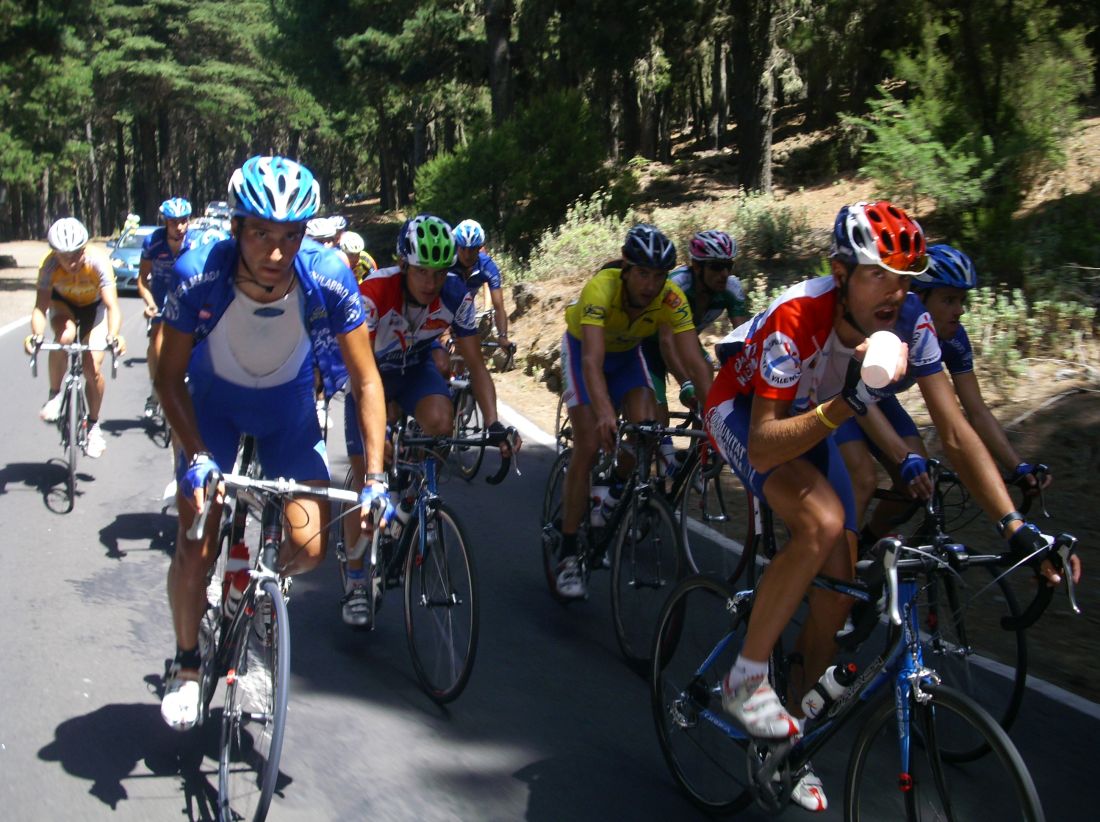 En el pelotón se iba bien al paso del Cosaor, pero empezó un Fuenla arrancando y encendió la mecha de la mascletá, volvió a arrancar Torrella, Diego Tamayo, se lió ya gorda, yo cogí la rueda de Toni Zamora, que era valor seguro, cedimos unos metros pero volvimos a entrar, aunque se volvió a enfilar y ahí tuve que sufrir bastante para aguantar, coronamos el Teide un grupo de 15 tios, el Maté había arrancado y se había ido solo, en el momento que mas rápido se iba.