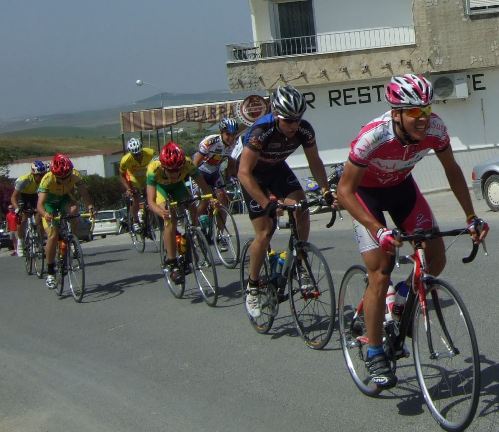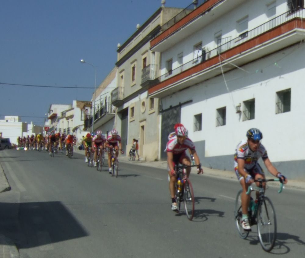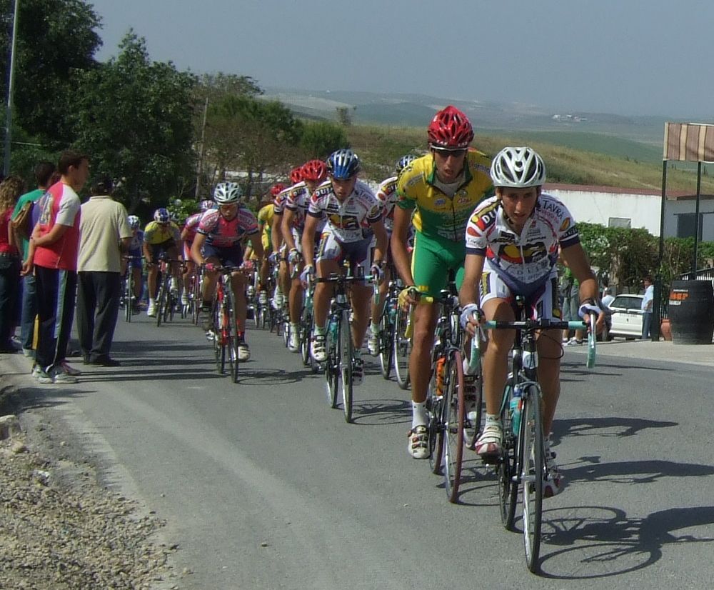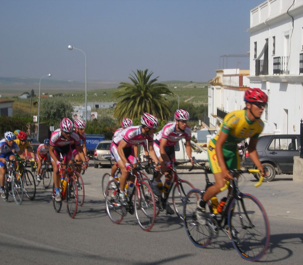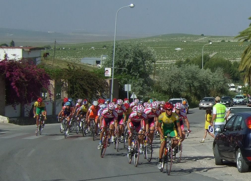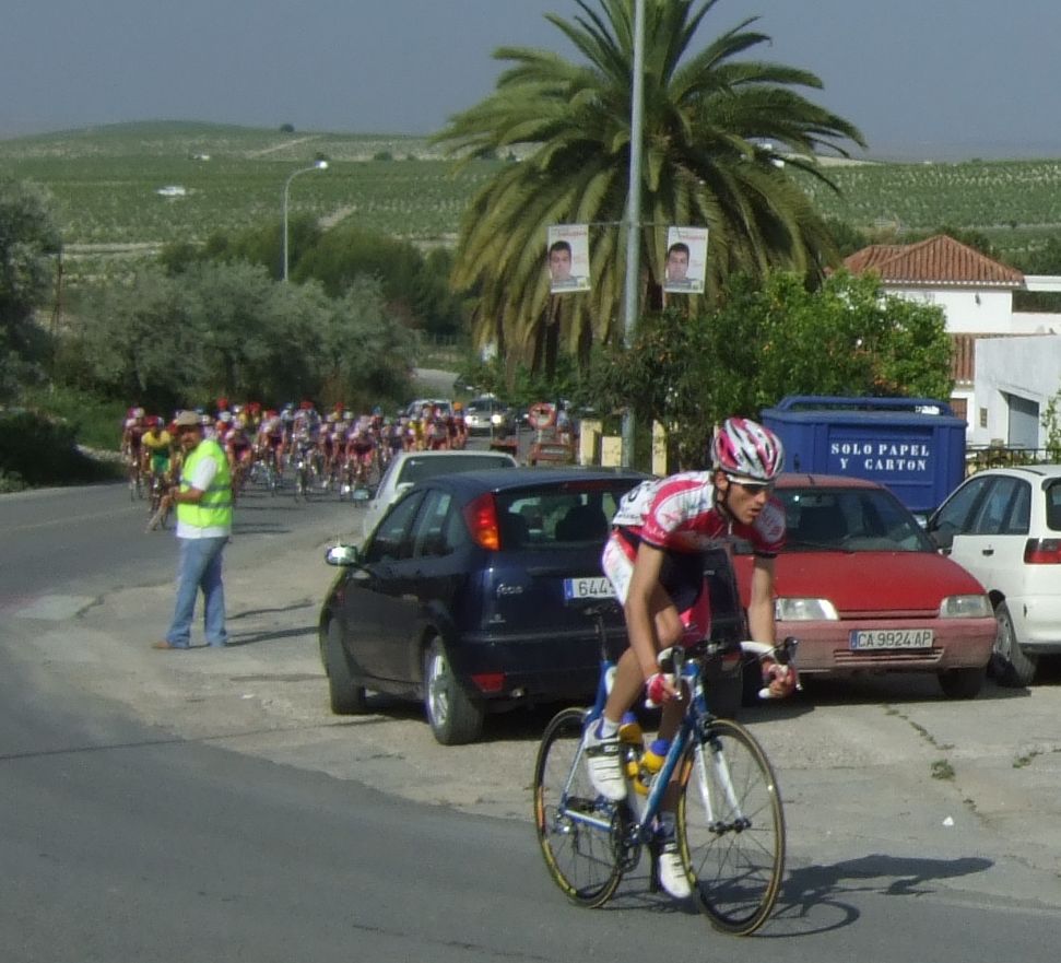 Empezamos la primera subida a Trebujena, arrancó Fito cuando nos cogieron y se fue el solo, asi que los portugueses fueron los que tomaron el mando, yo subí en las primeras posiciones atento por si se hacia un corte, pero subimos rápido y no se fue nadie.