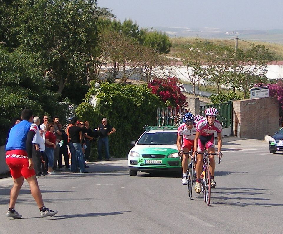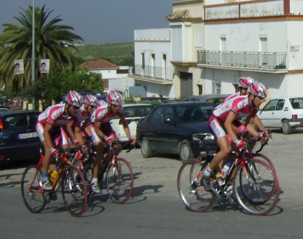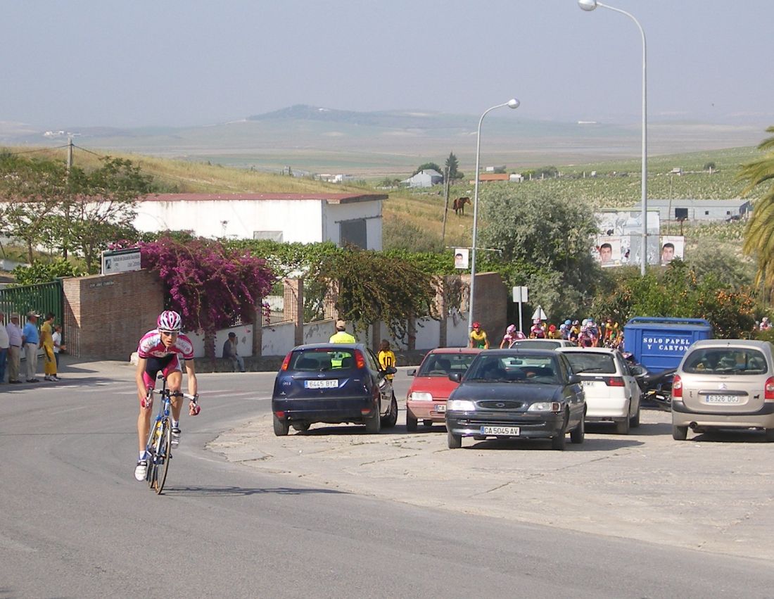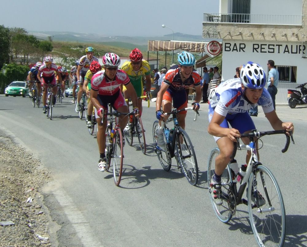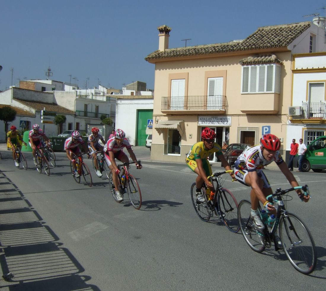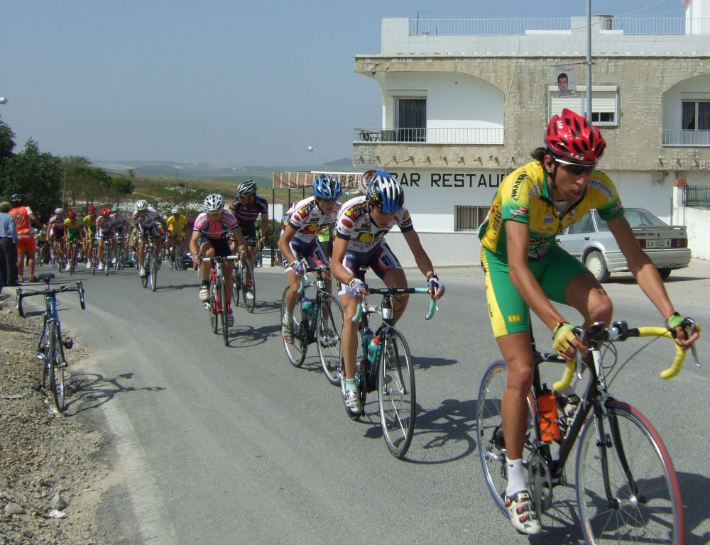 Empezamos la primera subida a Trebujena, arrancó Fito cuando nos cogieron y se fue el solo, asi que los portugueses fueron los que tomaron el mando, yo subí en las primeras posiciones atento por si se hacia un corte, pero subimos rápido y no se fue nadie.