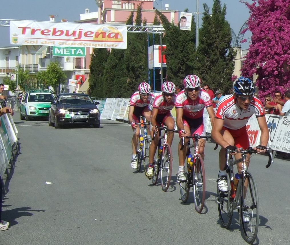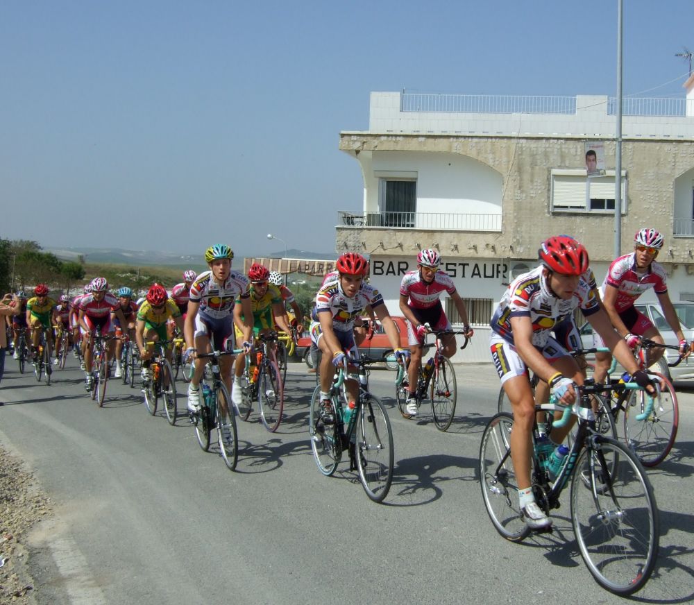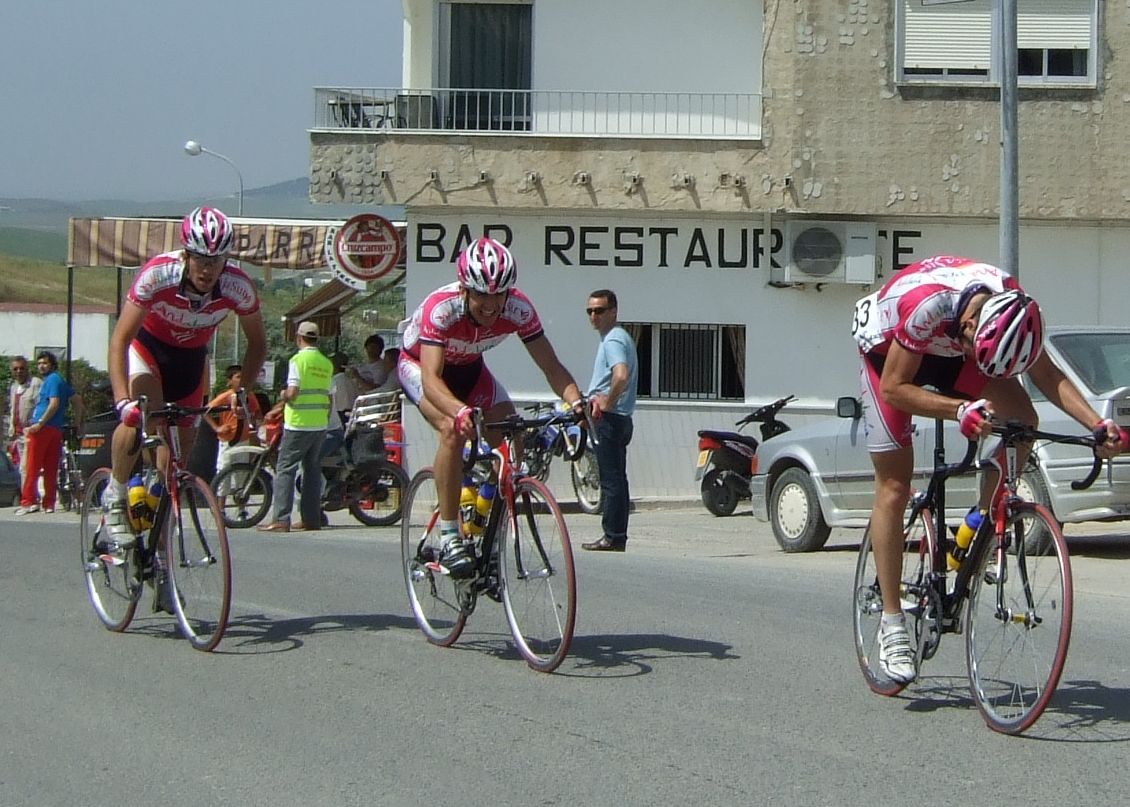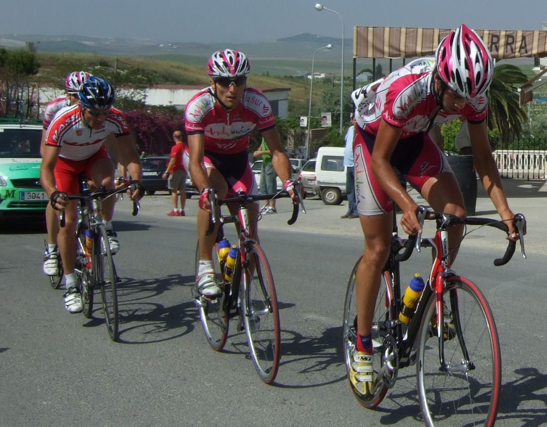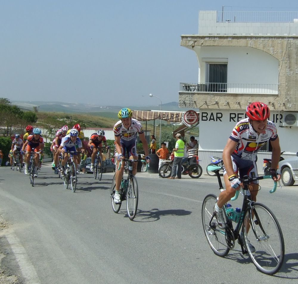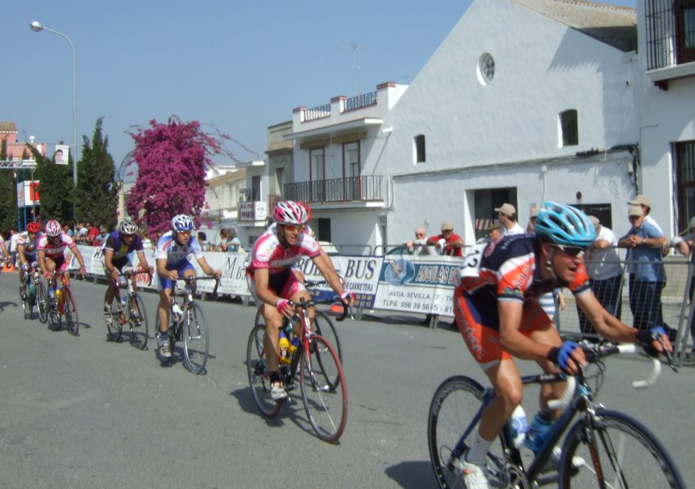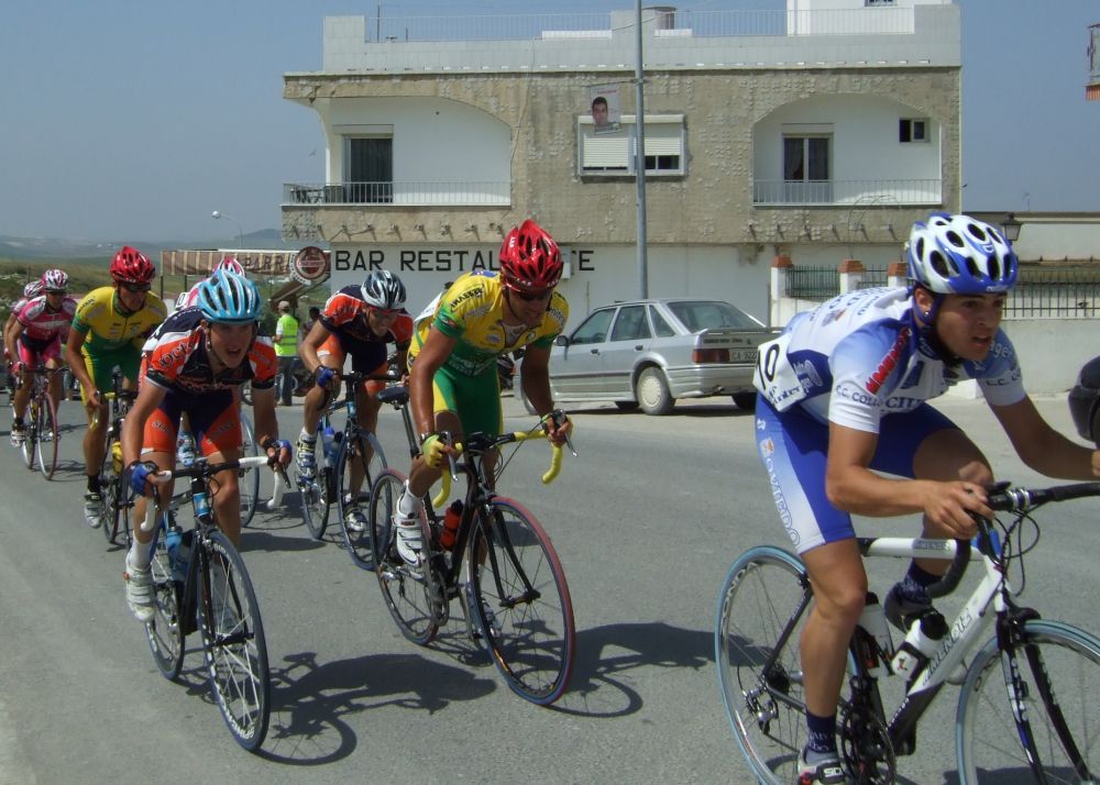 Empezamos la primera subida a Trebujena, arrancó Fito cuando nos cogieron y se fue el solo, asi que los portugueses fueron los que tomaron el mando, yo subí en las primeras posiciones atento por si se hacia un corte, pero subimos rápido y no se fue nadie.