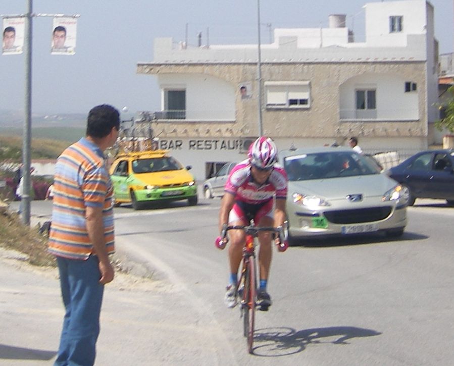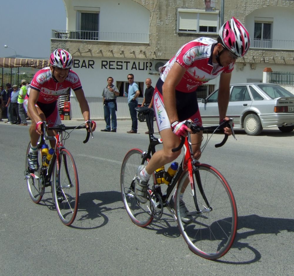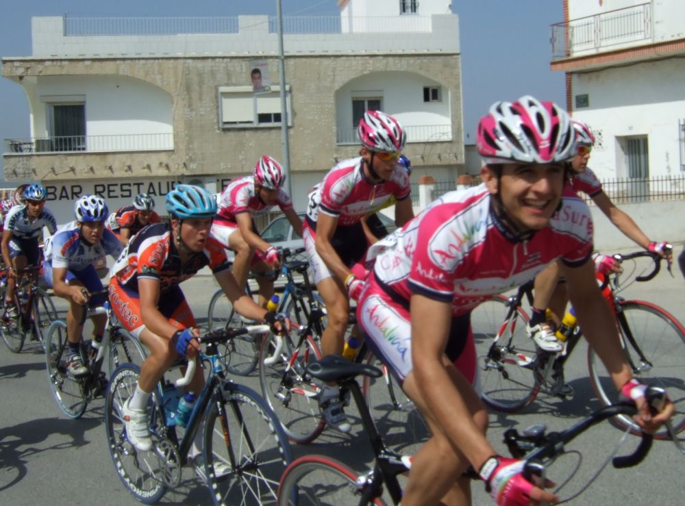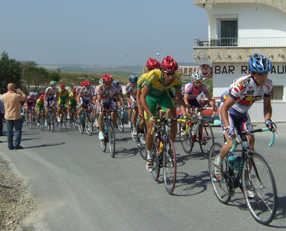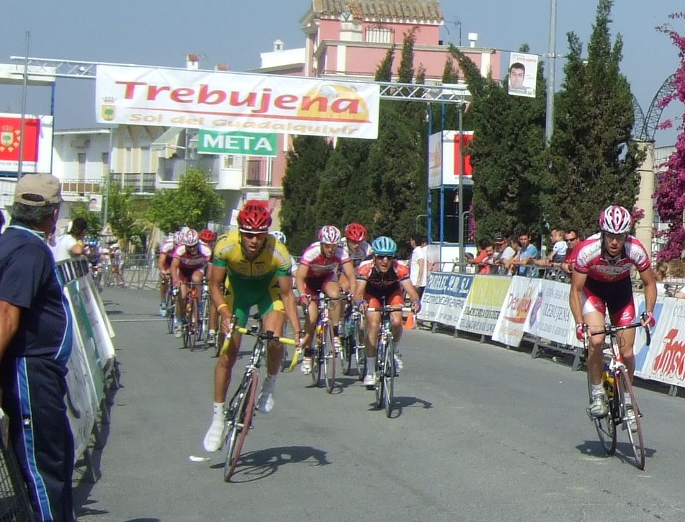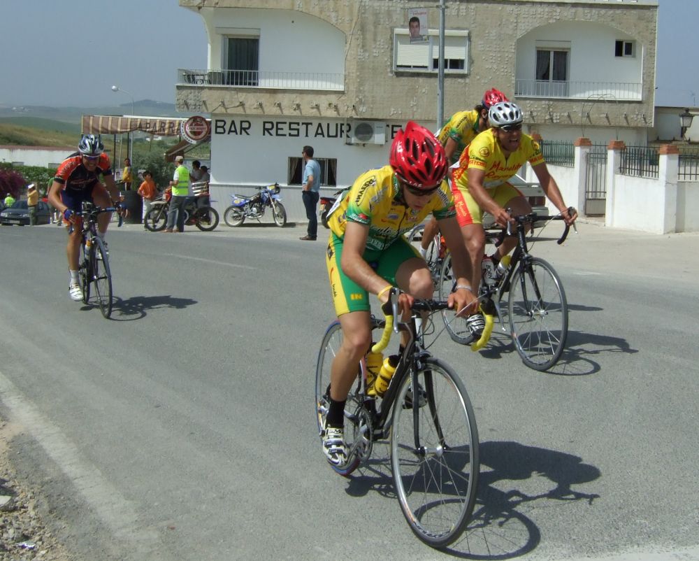 Empezamos la primera subida a Trebujena, arrancó Fito cuando nos cogieron y se fue el solo, asi que los portugueses fueron los que tomaron el mando, yo subí en las primeras posiciones atento por si se hacia un corte, pero subimos rápido y no se fue nadie.