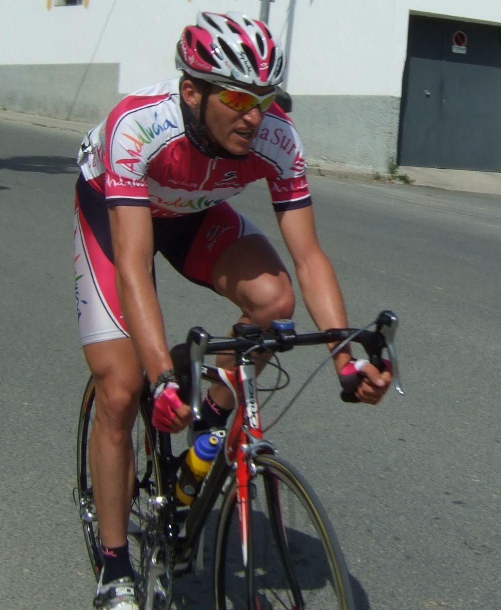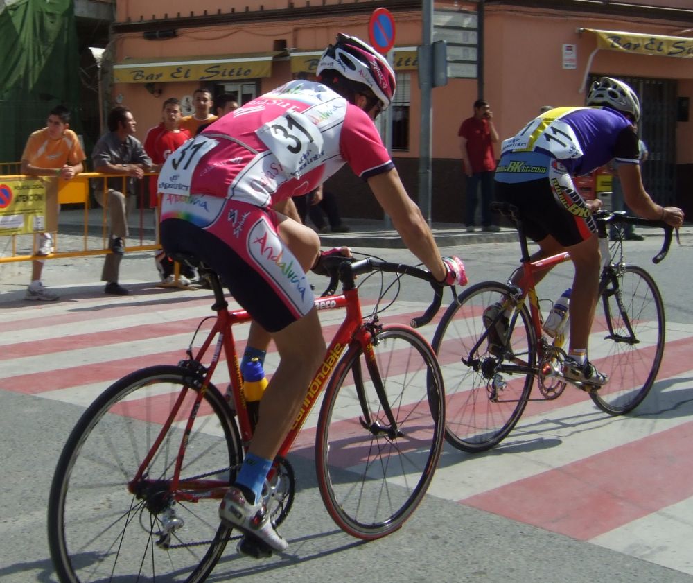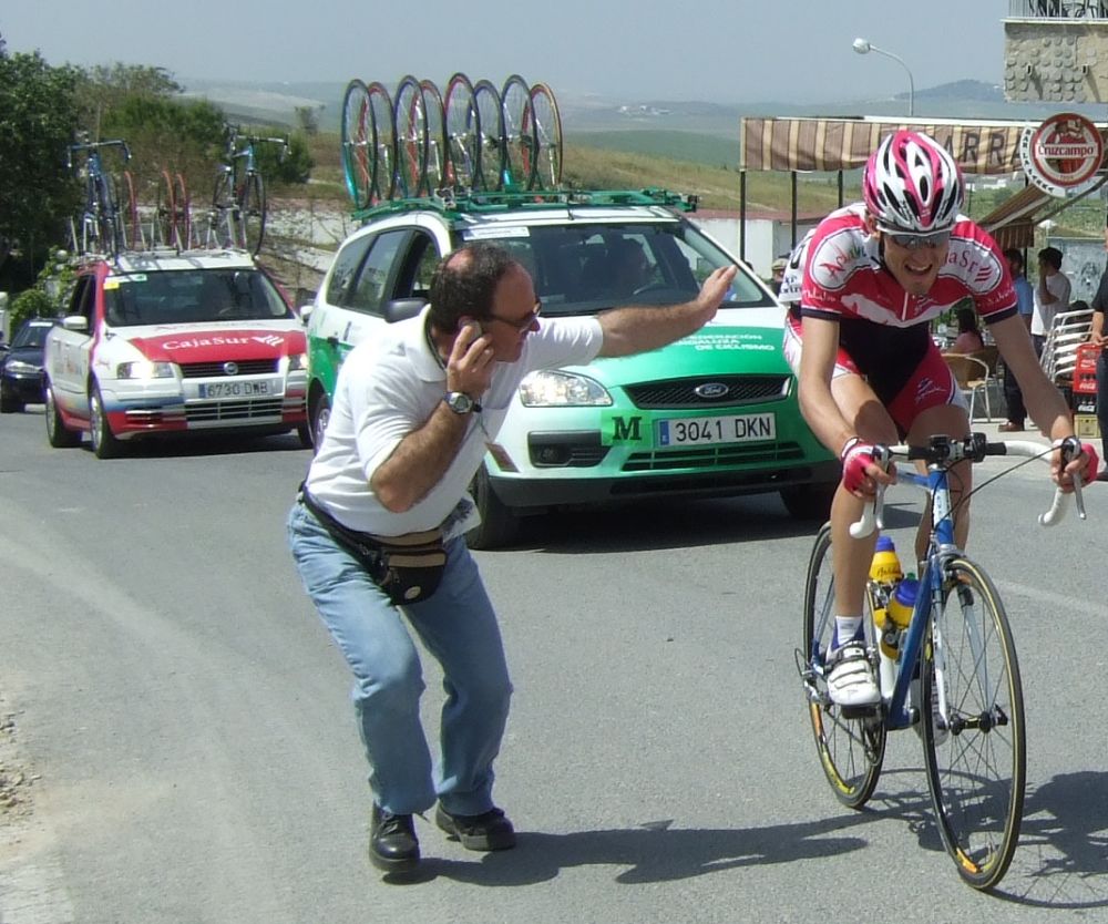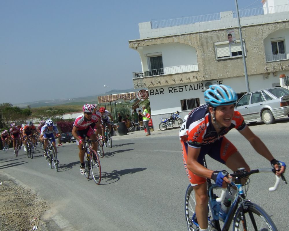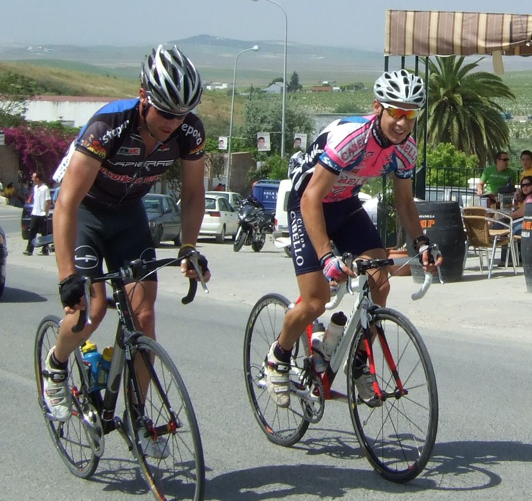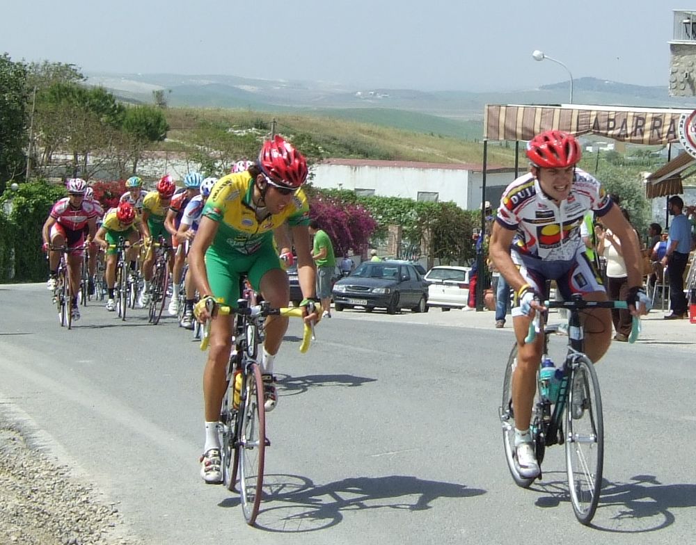 Empezamos la primera subida a Trebujena, arrancó Fito cuando nos cogieron y se fue el solo, asi que los portugueses fueron los que tomaron el mando, yo subí en las primeras posiciones atento por si se hacia un corte, pero subimos rápido y no se fue nadie.