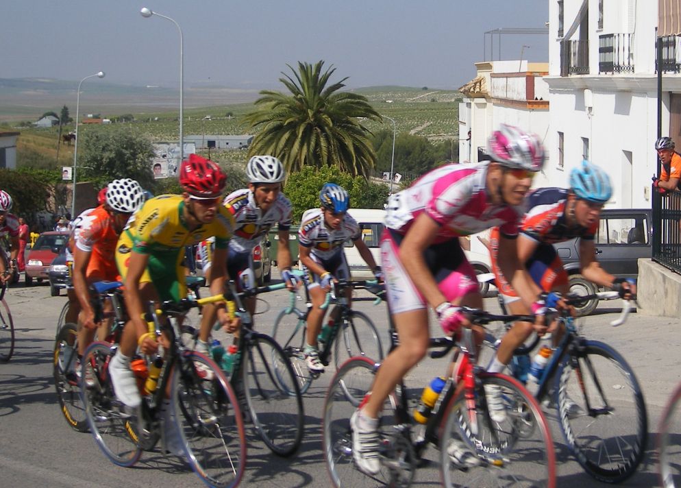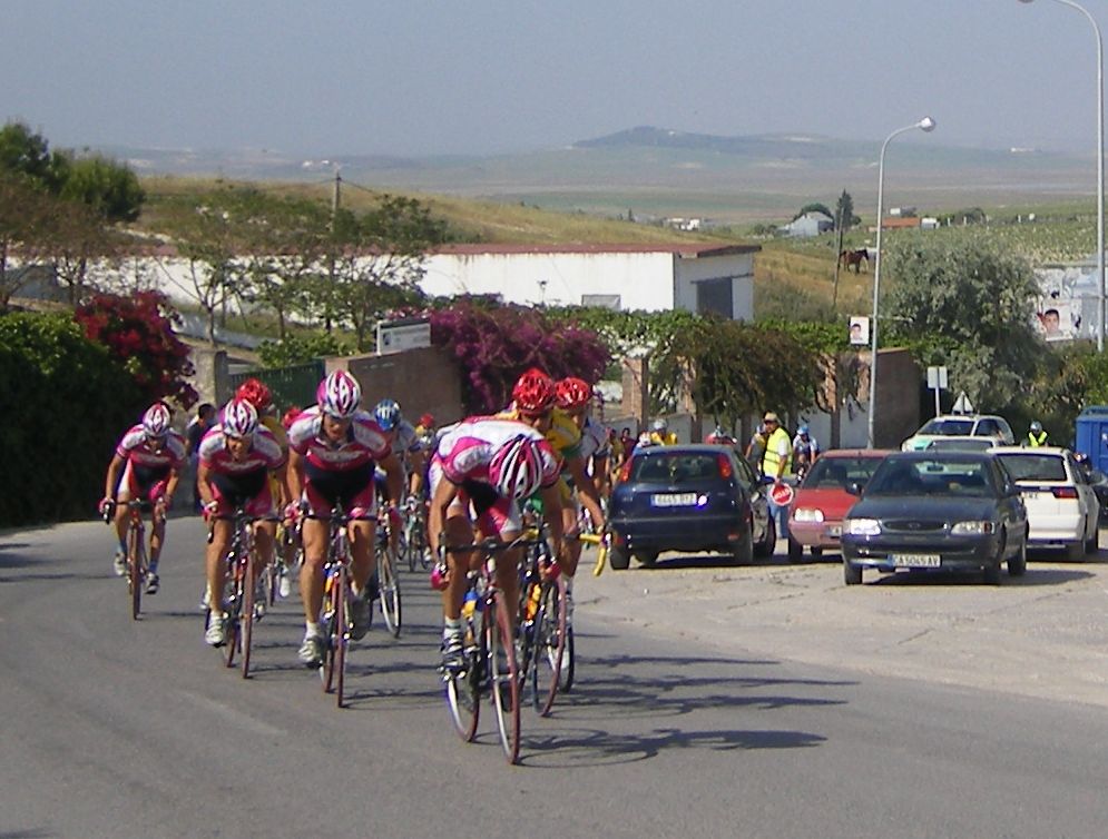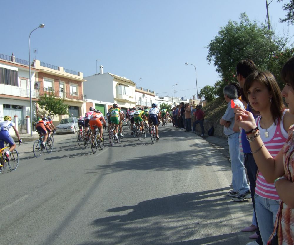 Primeros kms picando para abajo hasta que se llega a un repecho tendido, muchos ataques infructuosos, yo me metí en un cortecillo pequeño, estuvimos con ligera ventaja hasta que llegamos al inicio de la subida a Trebujena, que nos cogieron, mal momento.