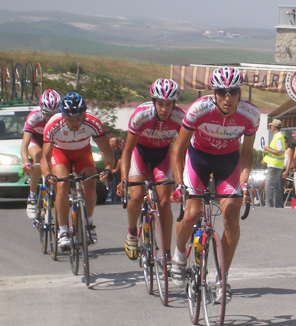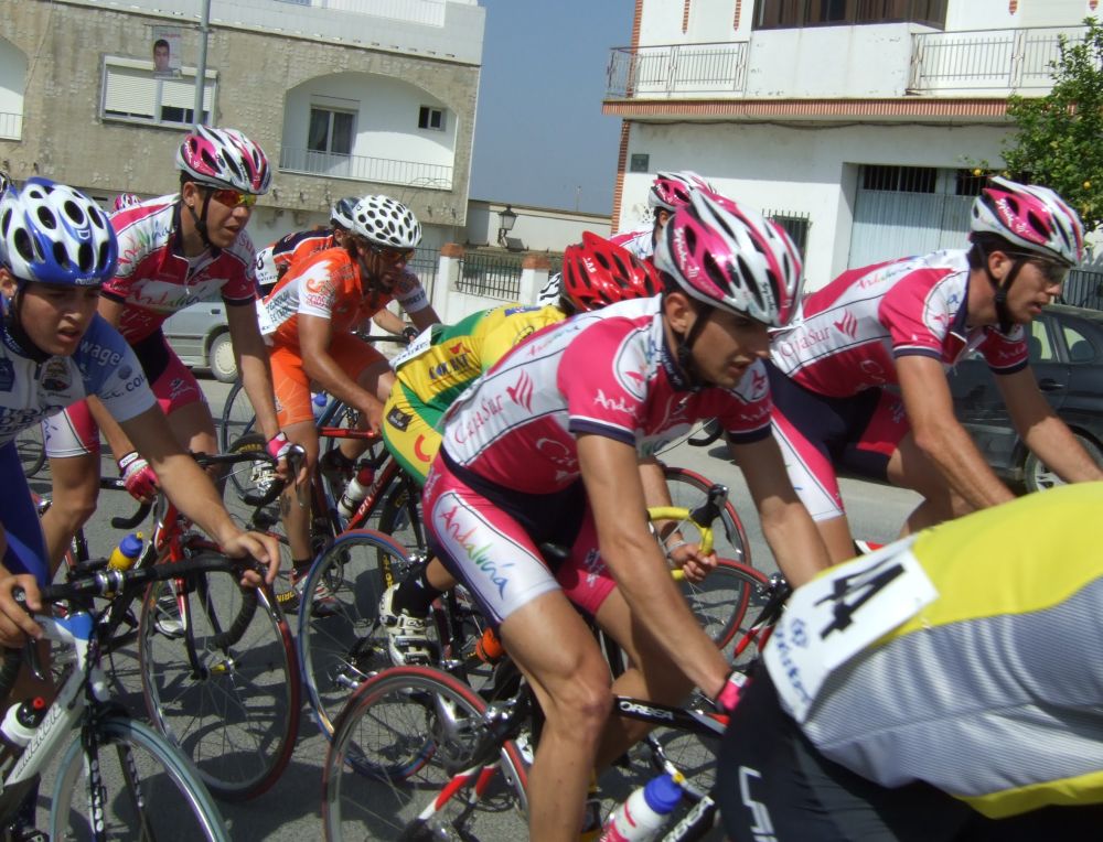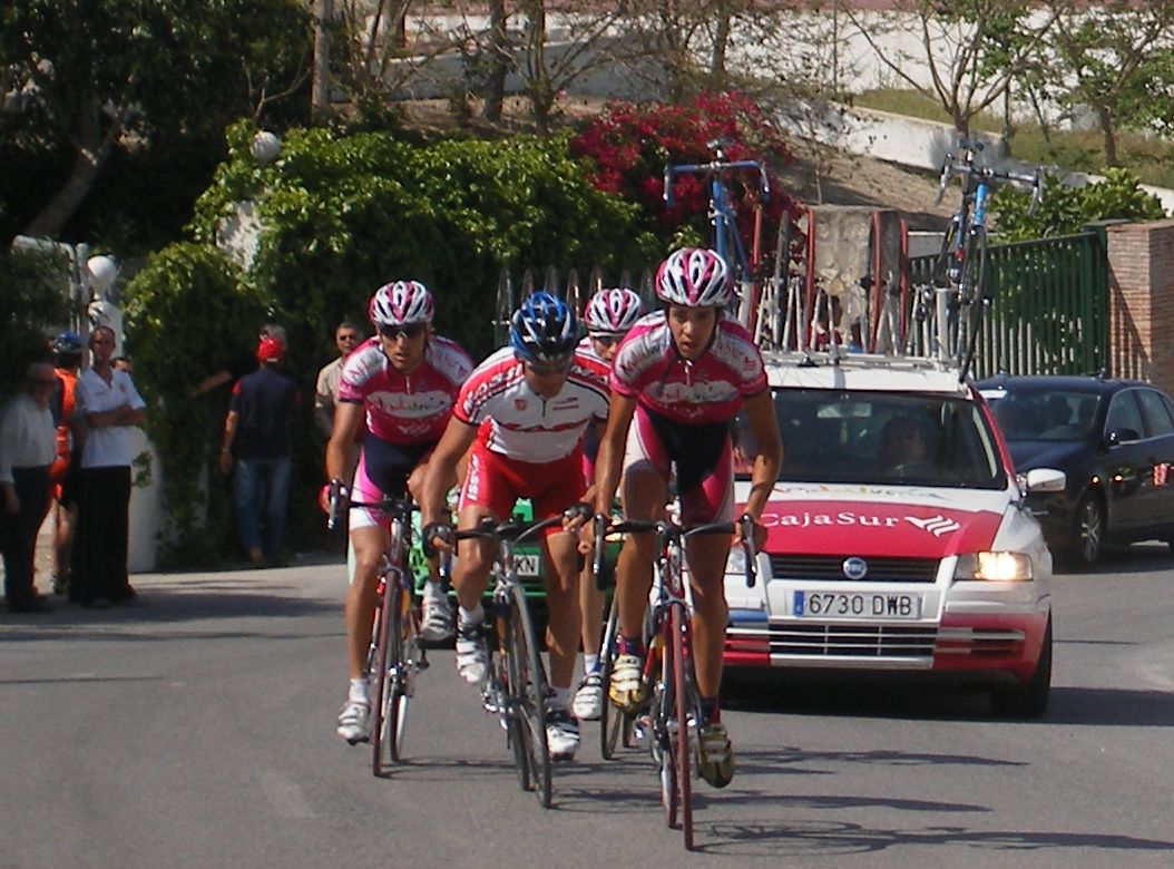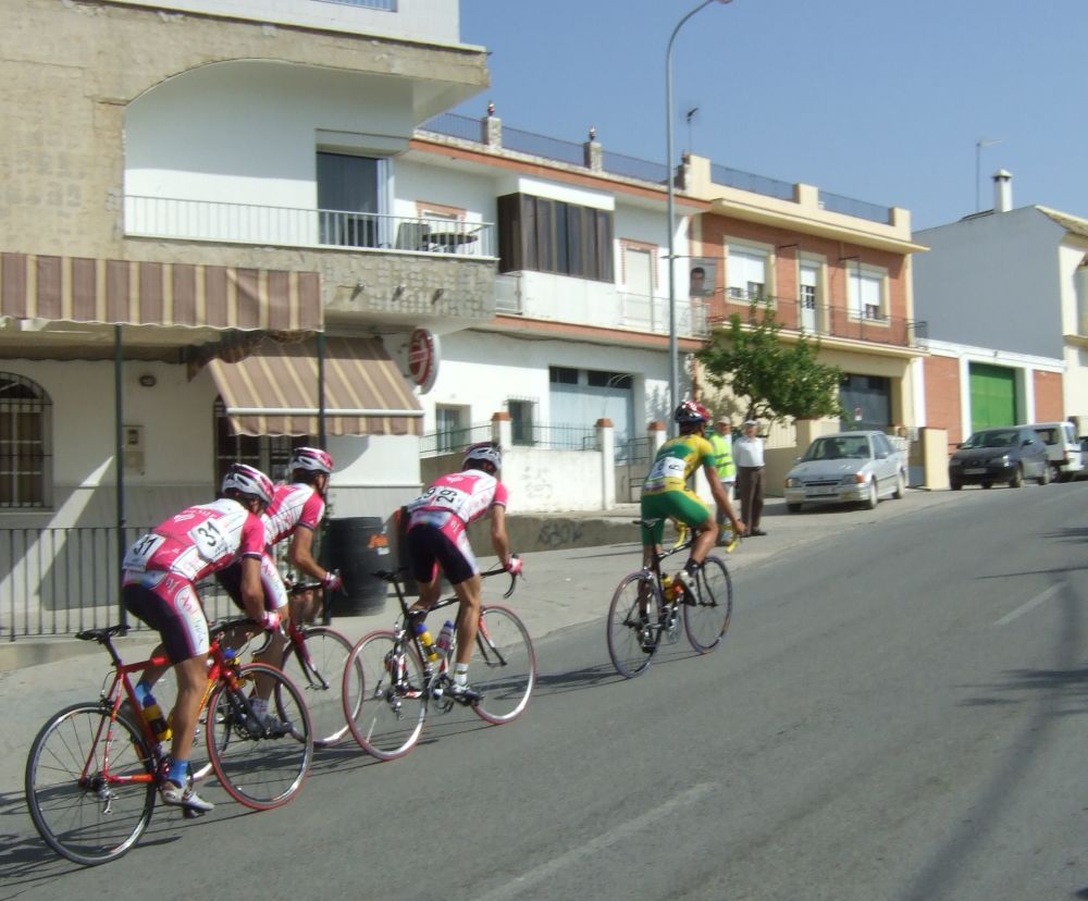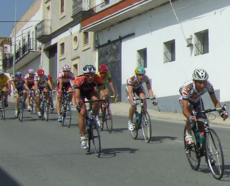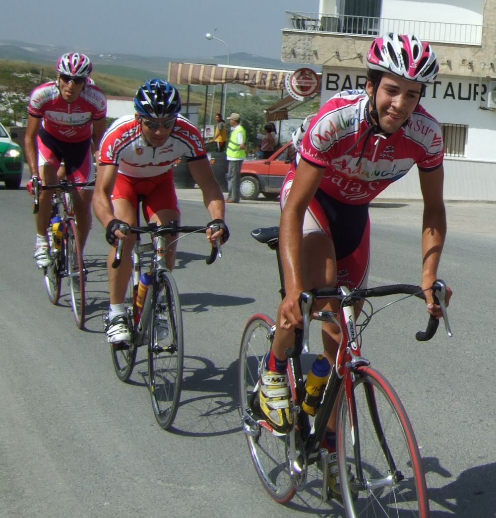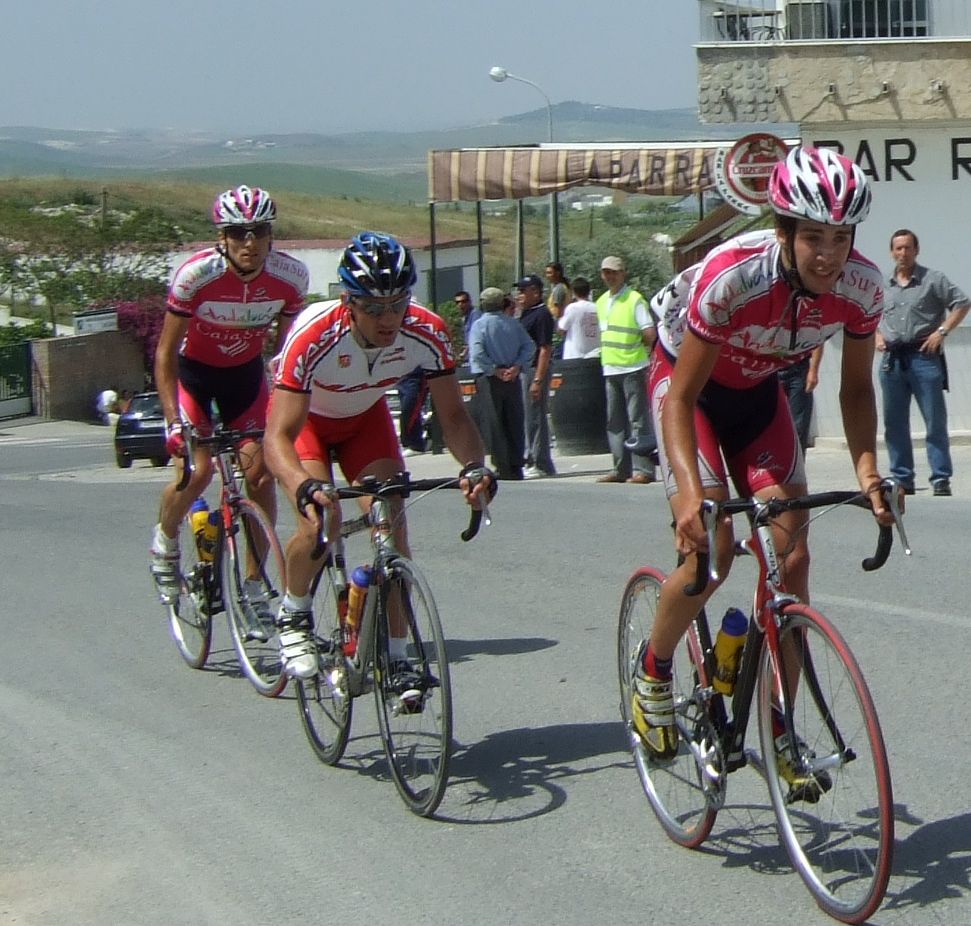 Los tres que arrancaron abrieron mucho hueco y cogieron al Fito, asi que eran 3 Andalucía y el Trujillo, en el pelotón muchos ataques y parones, no tiraba nadie, los parones propiciaron que alante abrieran muchisimo hueco.