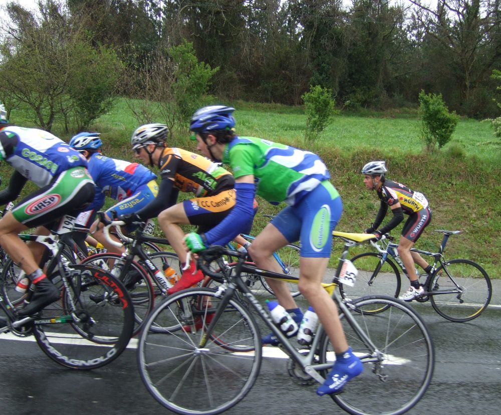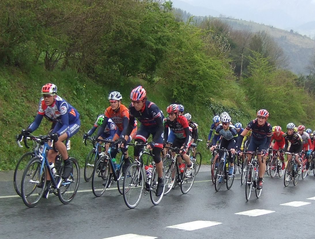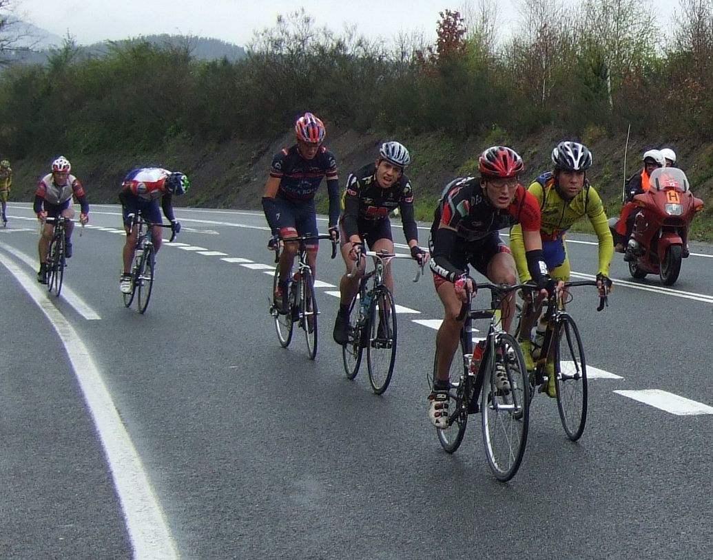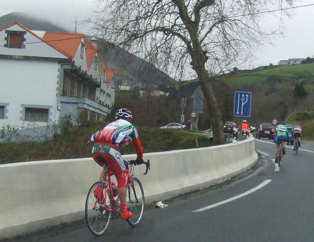 Di algunos relevos en ese corte pero nos pillaron rápido, no era el repecho bueno para arrancar, poco después se subía el puerto de Meagas, otro tercera pero mas blando que Itiziar, allí se hizo otro corte, yo salté a ver si lo pillaba subiendo Meagas, pero me quedé entre medias y tuve que abandonar el intento, ademas era un gasto inutil porque se enfiló un poco el pelotón y los pillaron, con lo comodo que se iba en el pelotón a rueda.