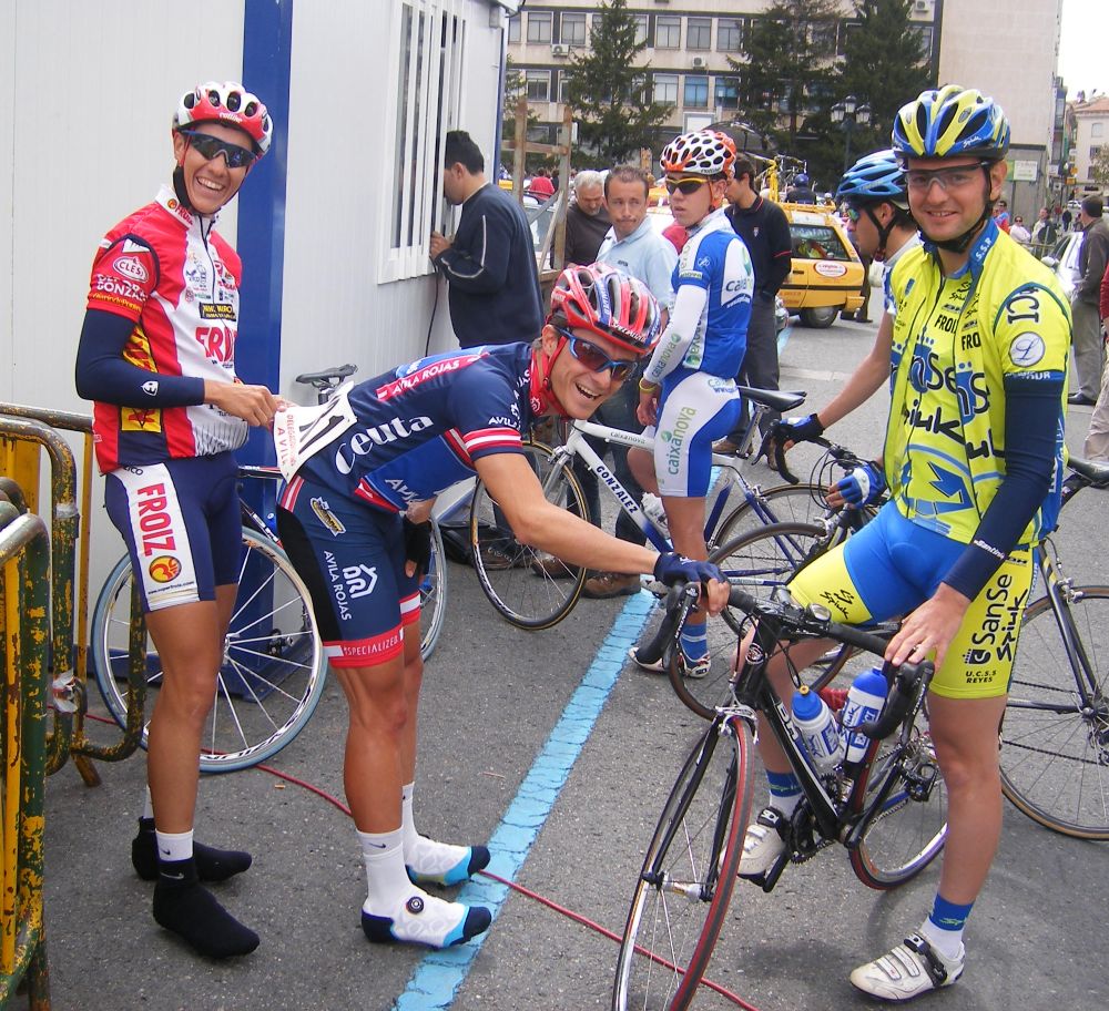 Ganó Carlos Oyarzún, nuevo fichaje del León, estratosferico, Roldán hizo septimo, para que digan que solo anda en las Bulerías, aqui septimo y con la Jet Set, Esteban el 12º, también entro alante, y Churrianero en un grupo intermedio de los 30 primeros, también buena carrera. Yo fatal en la grupeta, con la bicicleta en condiciones poco aptas para correr pero si no me apañan la del equipo es lo que hay, eso si, el pedalier ahora ya esta cambiado que yo no corro mas así, jeje, y Toledano, el de Pedro Abad, de primer año, bien, le echó cojones y acabó la carrera el solo remando como un campeón, otro se hubiera bajado antes de pasar toda la miseria que pasó el bueno de Toledano 60 kms solo a bloque.