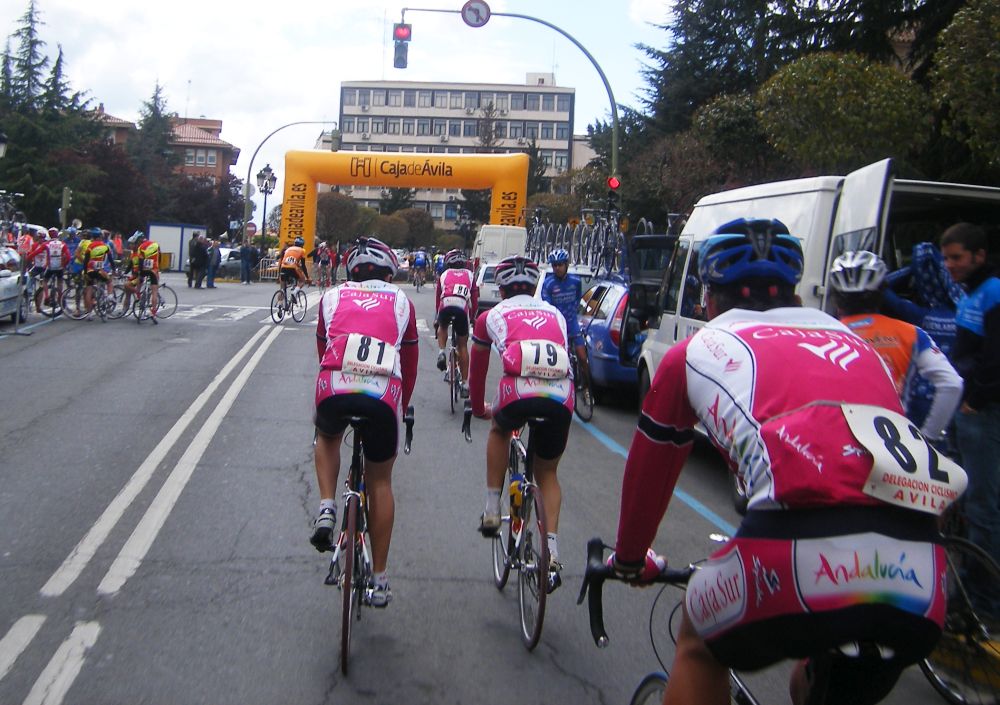 Gran nivel en la carrera, pelotón de unas 120 unidades con la jet set del panorama, solo faltaba alli PacoMicro para describir el nivel que había, salimos neutralizados de Avila bajando las murallas hasta dar la salida lanzada en la nacional 403, al pie del puerto de la Paramera,