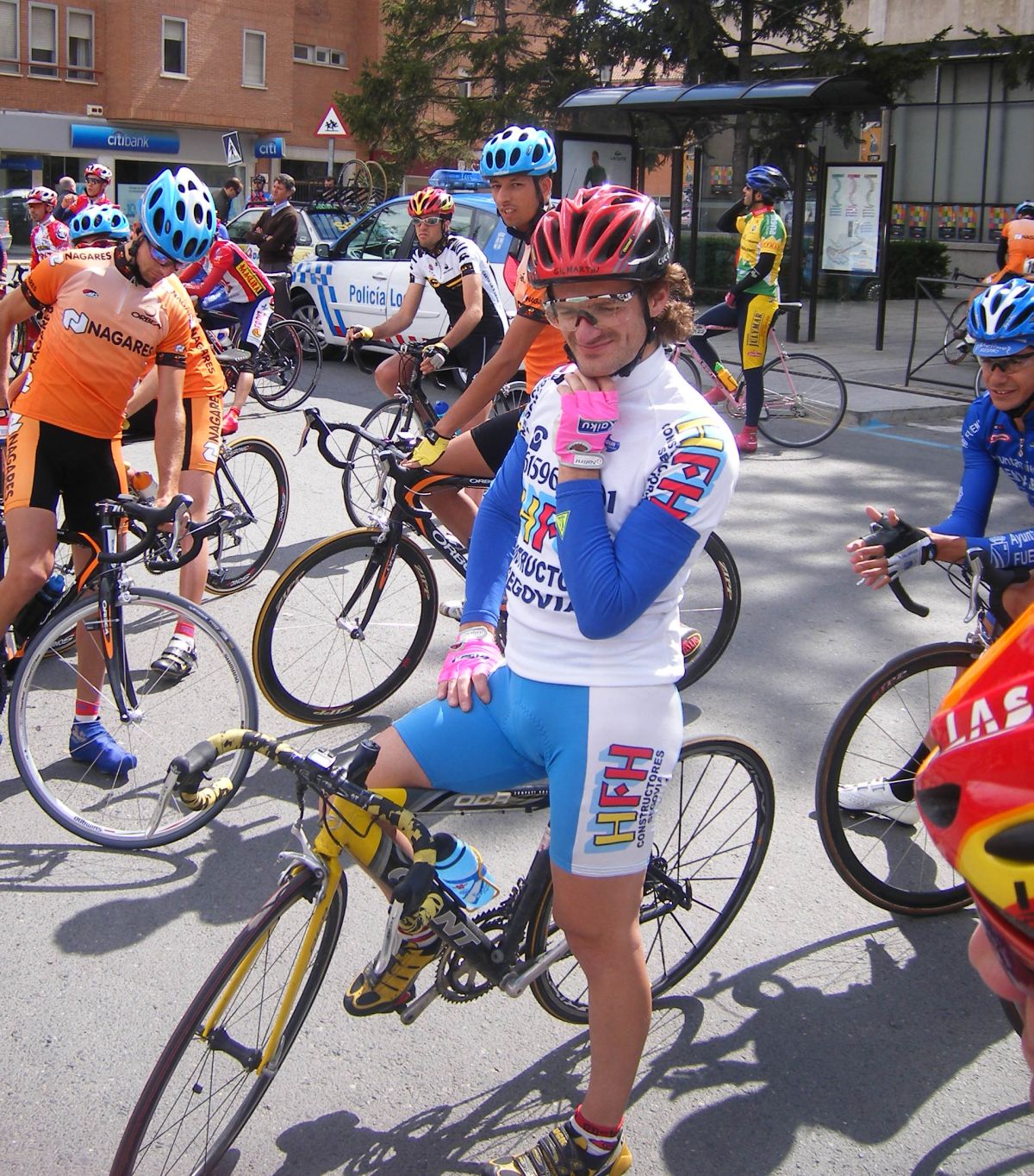 Entramos en el puerto enfilados y empezaron a subirlo a bloque, esprintando, yo esperando a ver cuando paran, a ver cuando paran, pero no se paraba, mirabas la cabeza y siempre veias un Froiz tensando, y un Froiz tensando, y no se para, y que agonía.., y que mal va la puta bici, y como se sufre. y ese Froiz que no se le acaba el gas, no había parón, iba ya con el ganchó aguantando cuando el Vega hizo un seto dando voces cabreado por una avería, el Seto me pilló delante, tuve que frenar y ya no tuve fuerzas para volver a entrar, cuando vas con el gancho una pequeña situación de estas te elimina.