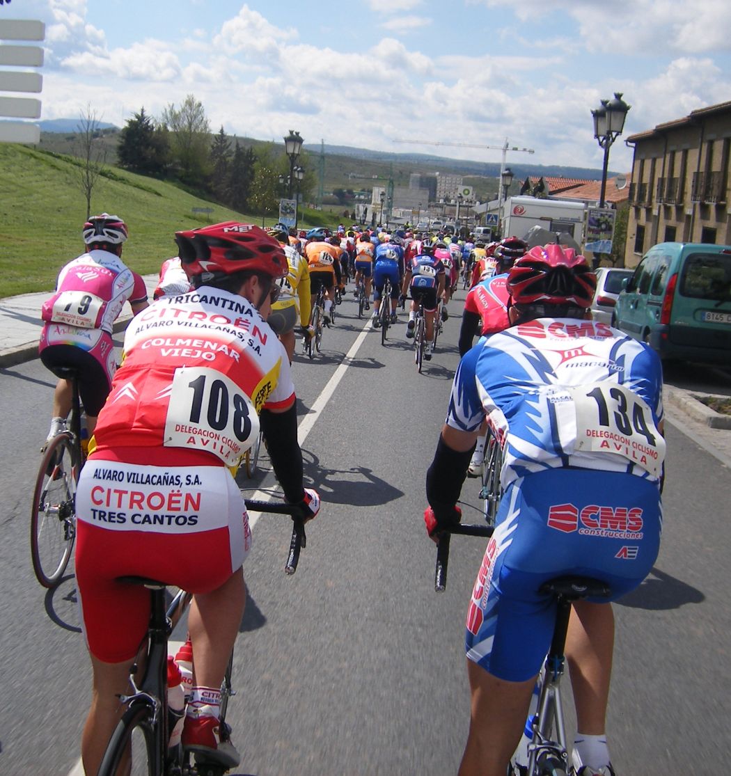 Se hizo largo y frio el descenso hasta Avila, por fin llegamos a Avila y un Kaos de tráfico hasta que llegamos a una rotonda y nos dicen los locales que nos paremos, pero nos quedaban 2 kms para acabar la carrera, después de todo lo que habíamos sufrido no nos podían retirar ahora, imposible, unos locales no pueden hechar a los ciclistas de carrera, al final acabamos la carrera y los locales se picaron, nos tomaron los dorsales, la organización les dio el DNI de todos los de la grupeta y veremos si nos llega una multa por acabar una carrera dando pedales, seguro que a los que se agarraron al coche ni les multan ni nada.