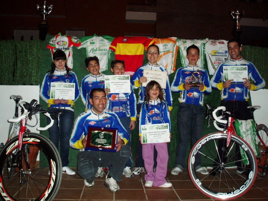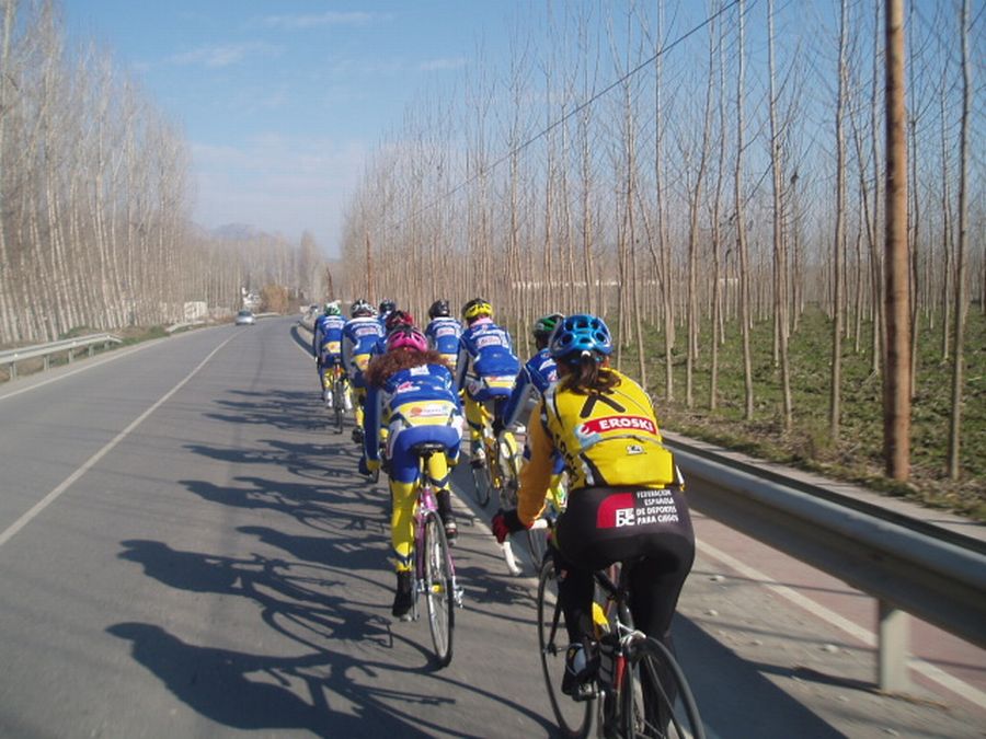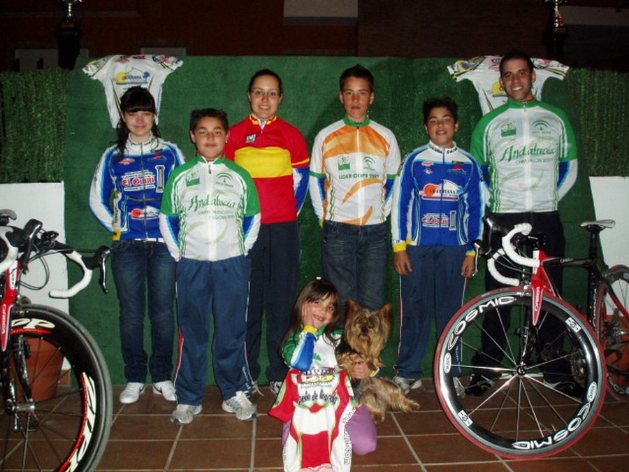 ![]() Fali (campeon de Granada y Andalucia) y Marina, campeona el año pasao y subcampeona de españa de Tandem. Andres Estudillo, que estuvo 4 días lider de la Copa, Javi, gran gregario del equipo. Y abajo del todo tenemos a Nerea, con la graciosa mascota del equipo, Bethoven!. |