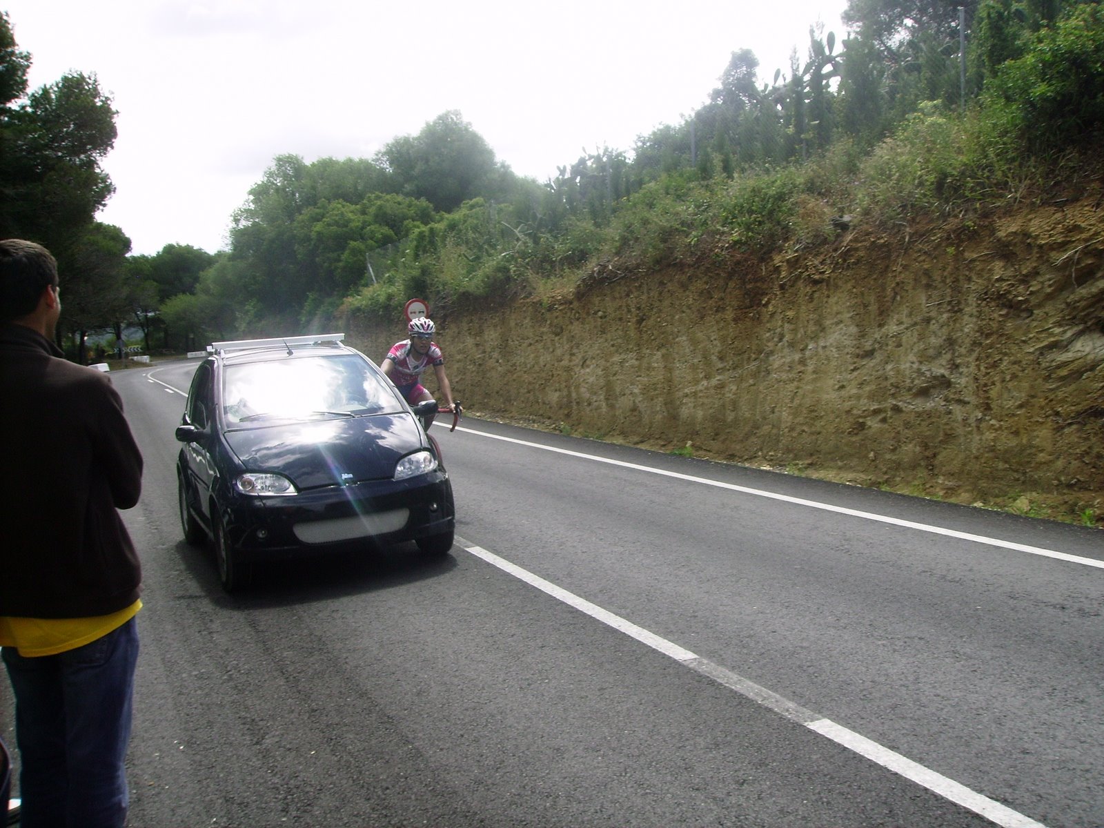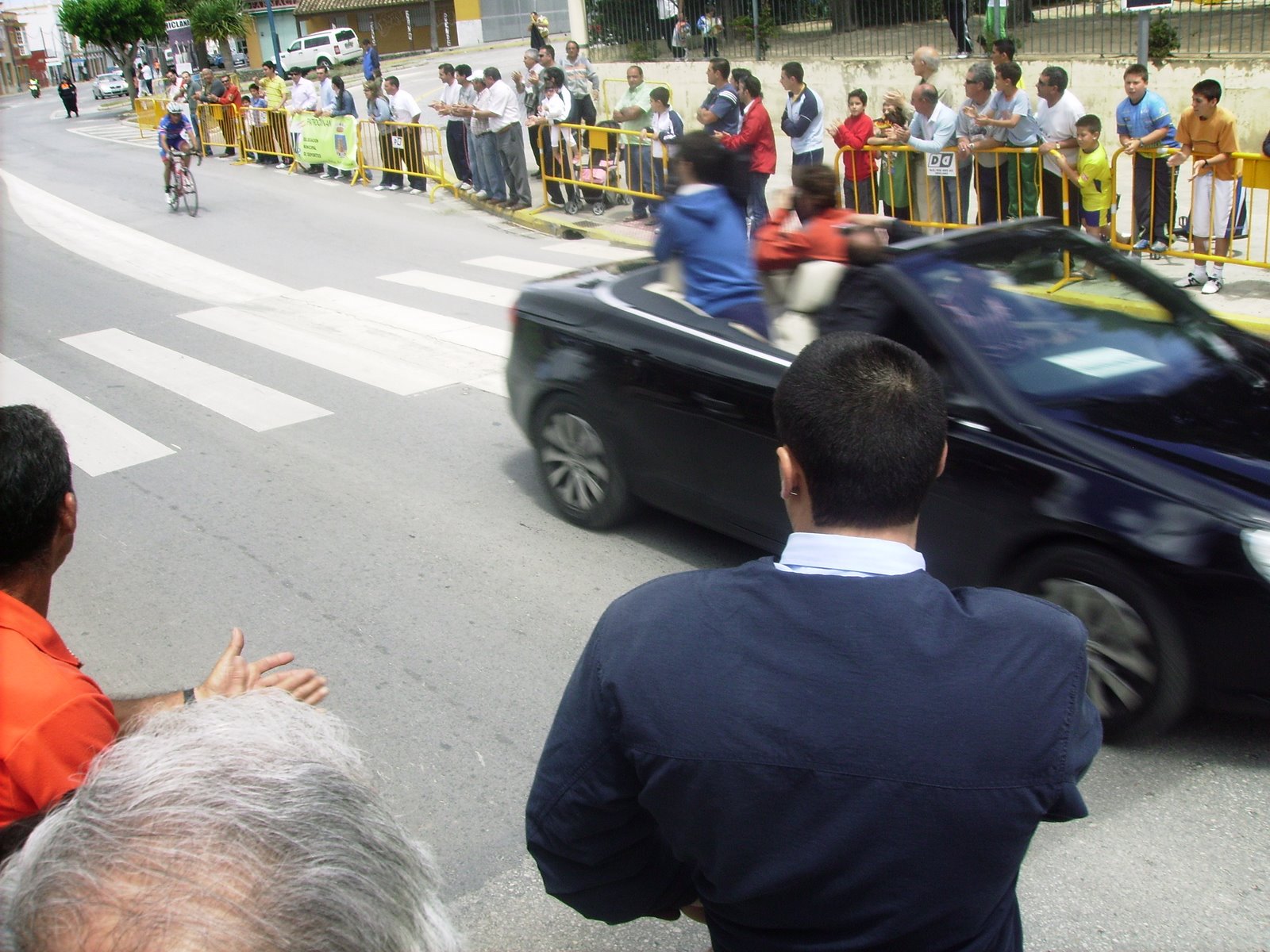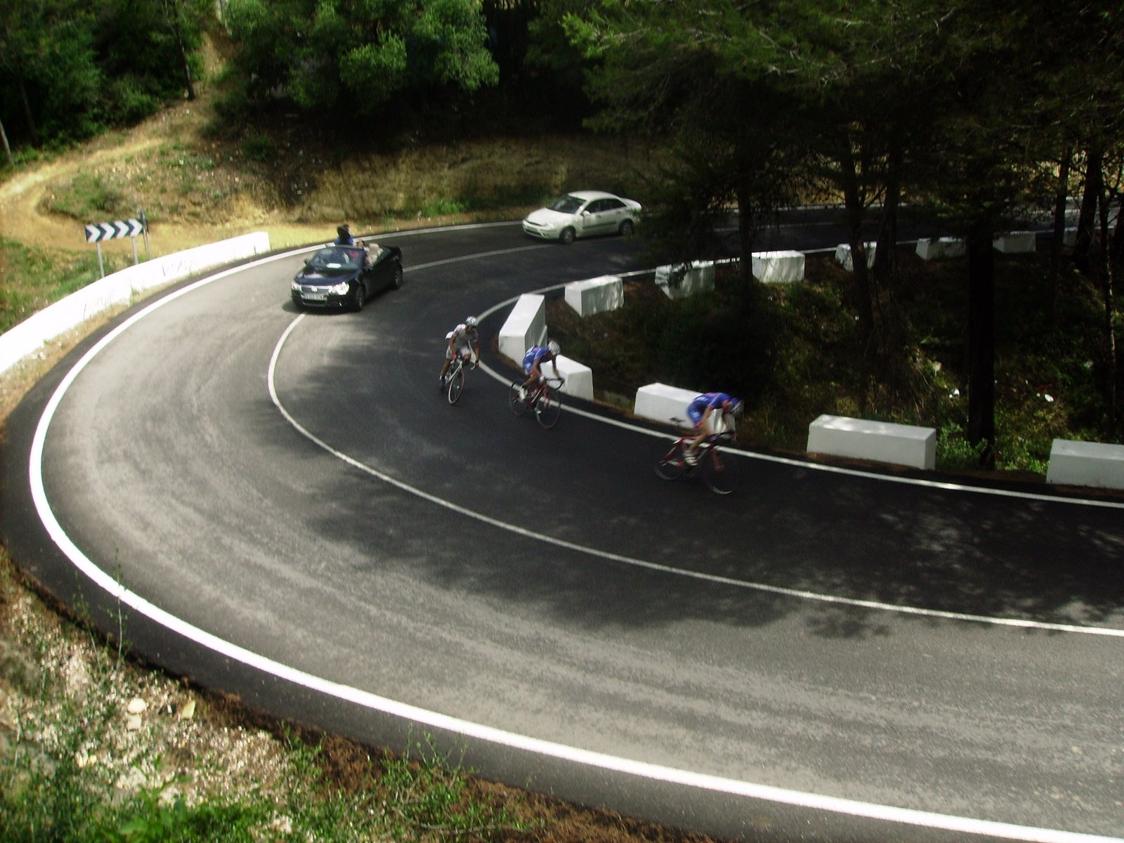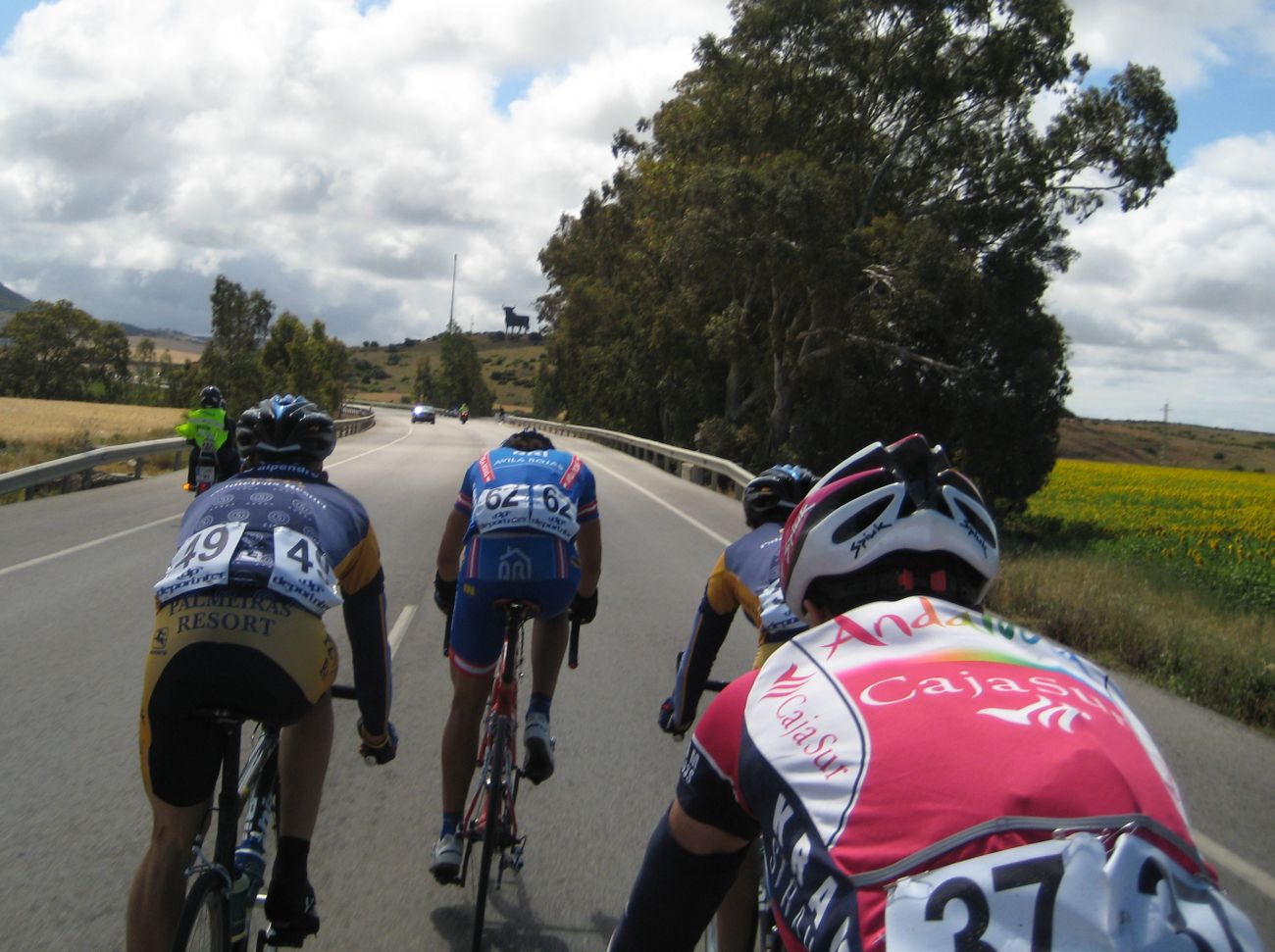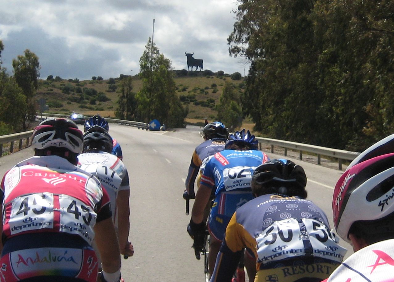 Situación comoda para mi, a rueda en el pelotón, de unas 25 unidades, iban por delante 3 hombres, y por atras tirando todo el Andalucía Cajasur, nosotros a rueda, se tiraron unos buenos kms hasta que les cogieron cerca de Chiclana, festival de ataques entonces, Esteban Plaza que se había resguardado empezó a atacar haciendo eses... al ultimo que vi hacer eso fue al Romes en una carrera de Manzanares..