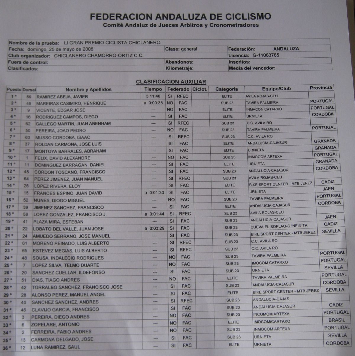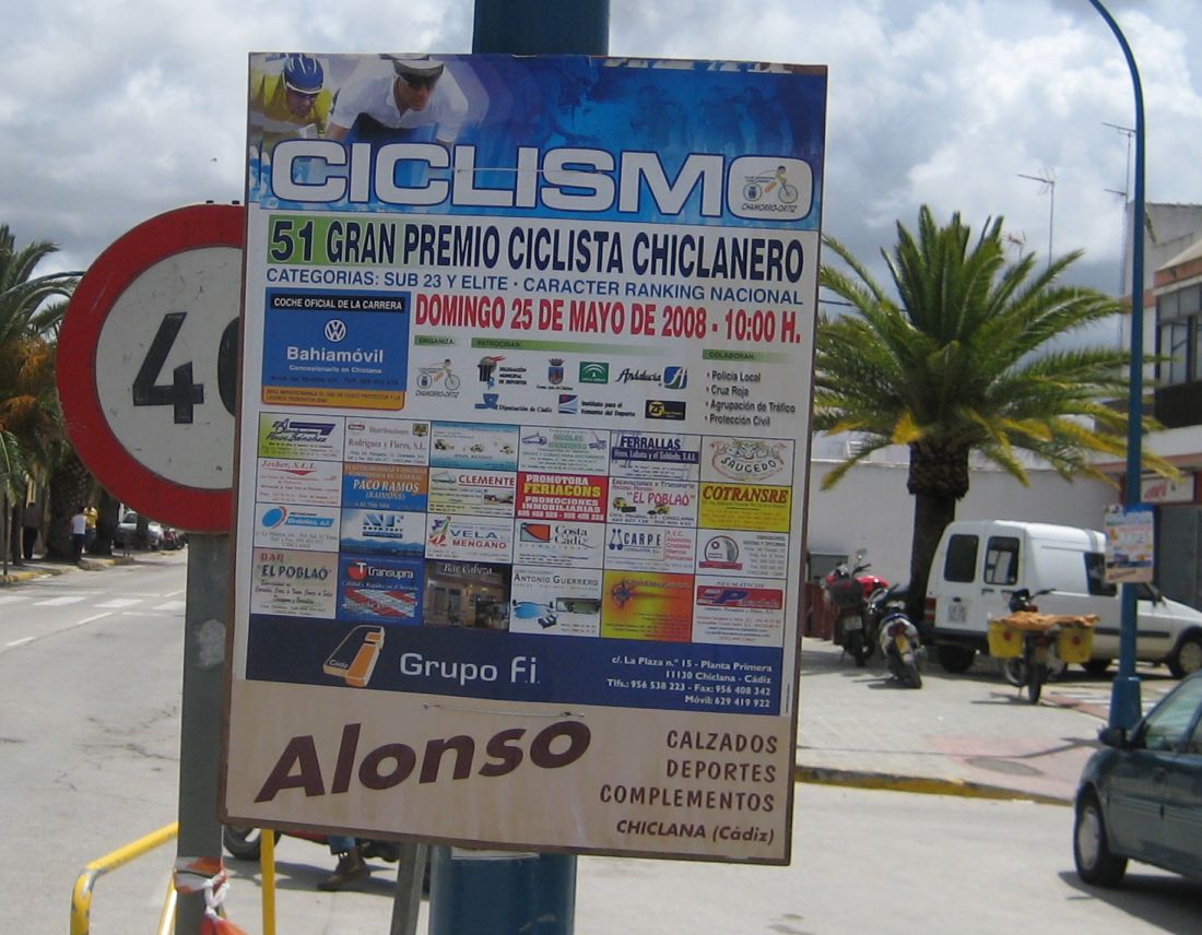 Gran Premio Ciclista Chiclanero, Ranking nacional y Copa Andalucía, con amplia participación portuguesa que dió nivel a la carrera ademas del bloque Avila Rojas, que bajó desde Inguanzo, Andalucía Cajasur y nosotros, los Urnieta, unos 70-80 corredores. El Algarrobo saliendo con el maillot de lider de la Copa Andalucía, que consiguió en la primera puntuable de Adra, Almería.