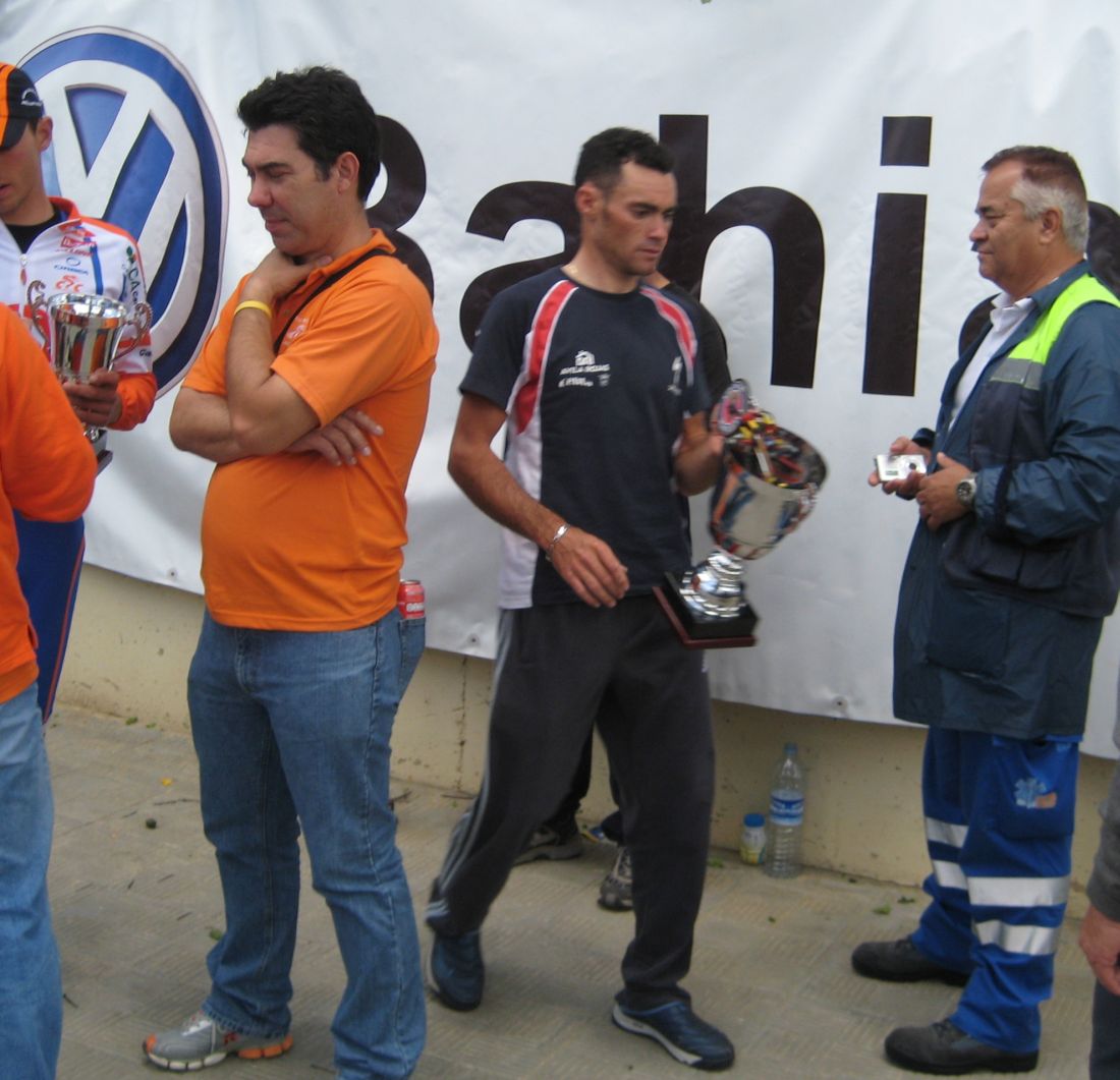 Giro derechas y comienza puerto.. yo tirando ahí con el portugués y arranca Dani, arrancó Dani y se fue solo, yo me quedé a rueda del portugués, digo bueno, a ver si se va Dani solo y ganamos la carrera, quedaban unos 20 kms a meta, pero era mucha carrera. Pronto llegó el de siempre, el Abeja, abriendo gas por detrás, cuando llegó a nosotros ya iba un poco mas sofocado, pero mas sofocado iba yo que no le pude coger rueda, iba con otro compañero, se fueron los dos por delante y pescaron al Dani.
