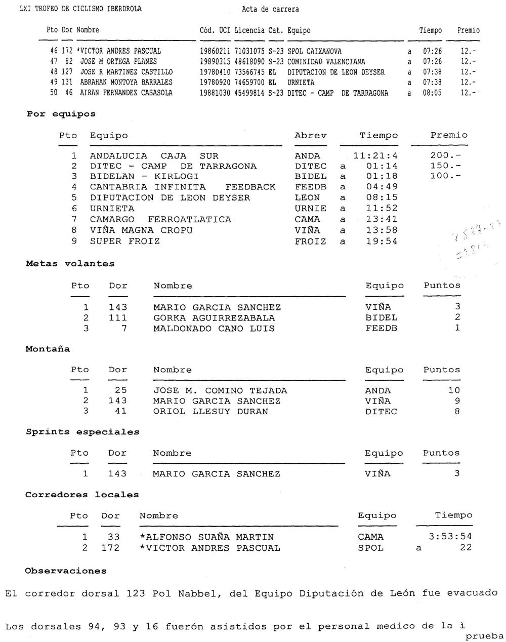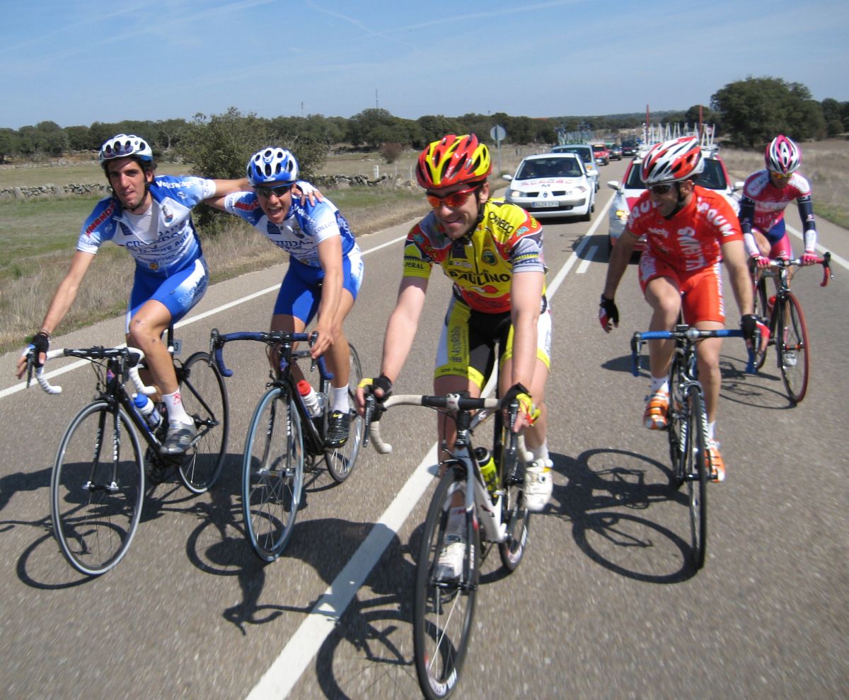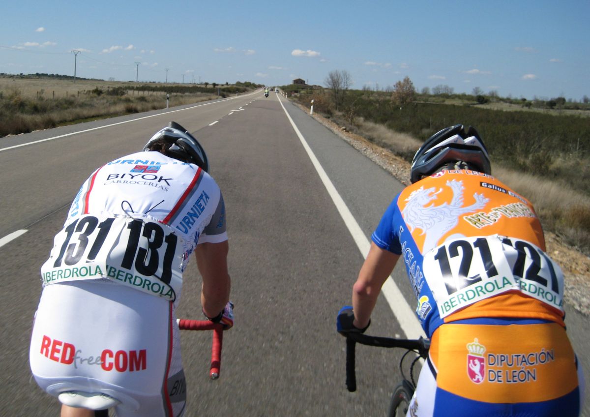 Cogimos la carretera de Alcañices y hubo una caida, Pol Nabben y el Tortolas arrollados por una moto, fue gorda porque era a mucha velocidad bajando por la nacional al puente de Ricobayo. Entrabamos en una zona donde el aire iba a hacer mucho daño, ya porque la gente va tocada, yo iba jodido pero ese tramo se me da a mi bien y tiré pa alante y me coloqué bien, arranqué una vez y luego ya me puse a tirar.