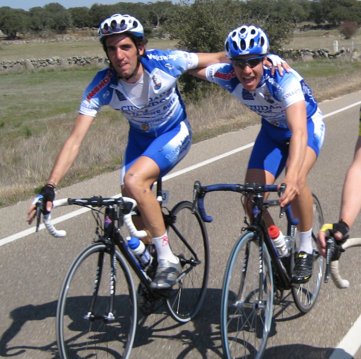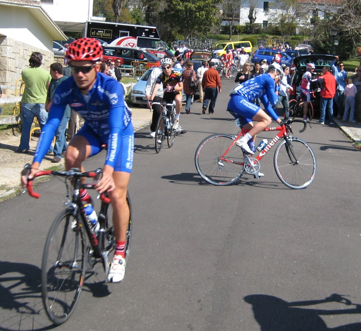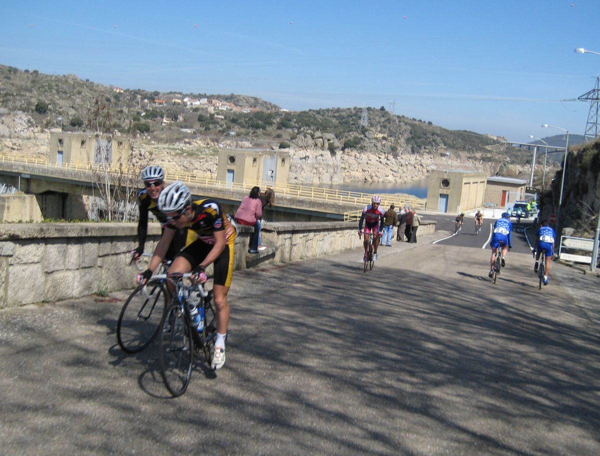 Vueltita pequeña con la subida a la presa de la carretera mala donde esta ubicada la meta, ya pasando meta veo que hay un cortecillo y arranco para entrar, nos juntamos 4 coronando el repecho de después, Ibamos Carlos Ibañez del León, el Tortolas y yo, teniamos hueco pero tampoco había demasiadas ganas de tirar a bloque con lo que quedaba asi que fuimos absorvidos, no se ni pa que arrancamos..