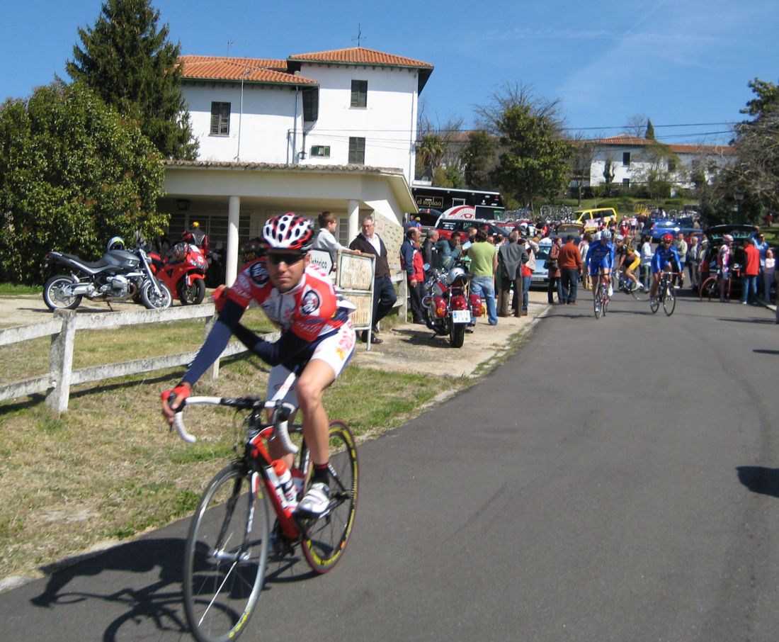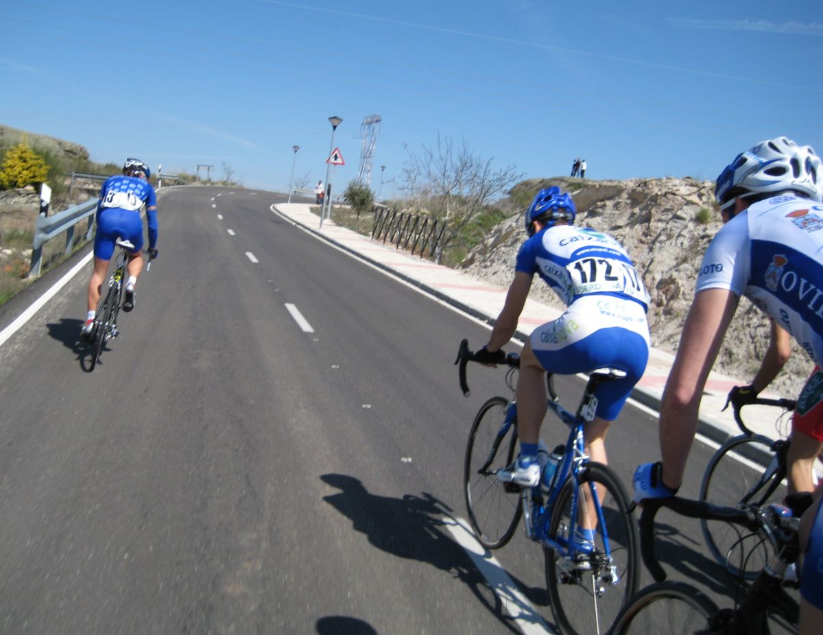 Pero como duele el paso por el puente y el primer látigo de Villadepera, aunque es sufrir ahi ahi un poco y se pasa, aunque yo iba muy tocado y en el pueblo de Villadepera, ya a 500 metros de coronar me abri, me metí entre coches y en el falso llano enganché.. buff.. otro sofocón, me recuperé un poco y me preparé para arrancar, que todavía quedaba otro puerto y mejor pasarlo por delante. Vi un repecho bueno, allí arranqué de atrás y me fui, se vino un Paulino conmigo y ya nos marchamos los dos, con 140 kms ya en las piernas es mas fácil irse por que la gente va muerta y no reaccionan fácil, aunque claro, hay que recordar que iban 20 tios por delante.