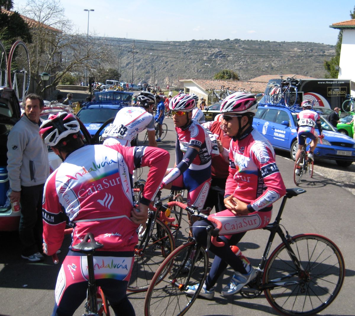 Salida muy tranquila, nadie quiere romper el hielo, hasta que un Fuenlabrada arranca, pero se enfila un poco y se vuelve a parar, miedo a los 160 kms, que hacen que haya actitud de reserva en todos los corredores, yo aprovecho para sacar unas fotos, aunque se que ese miedo tampoco va a durar mucho.