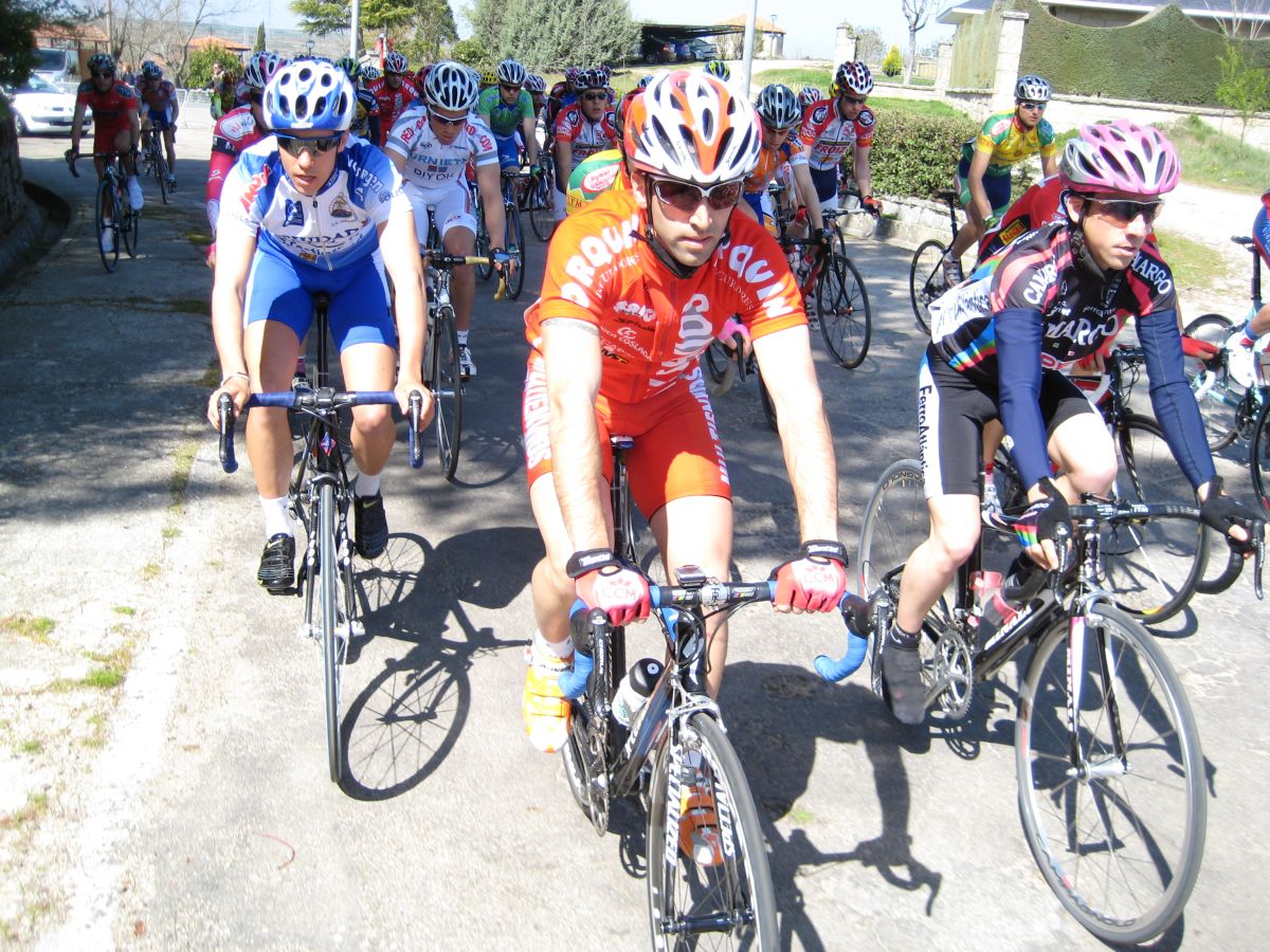 La situación de carrera después del primer puerto era de 12 escapados, un grupo de 6 perseguidores donde iba Dani y el pelotón, nosotros,que ya seriamos unos 40 tios o asi, pero seguía quedandose gente con el aire, giramos ya a la izquierda, dirección Villadepera, descenso de carretera mala, aunque a mi me gusta mas este que es mas técnico que el de Villalcampo que es de ir a toda ostia de carretera buena a 90 por hora en el pelotón y eso acojona.