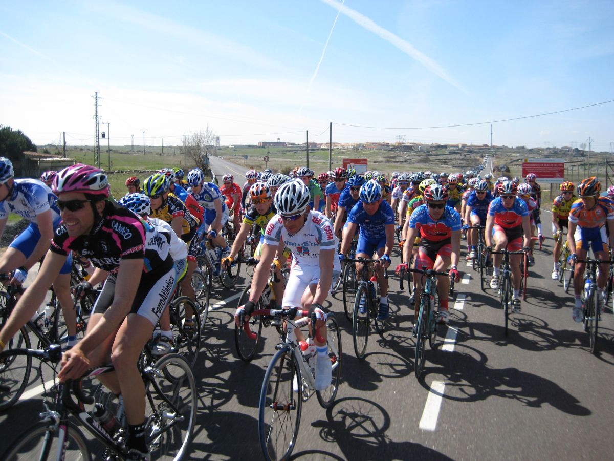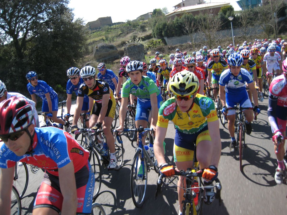 Camino de Zamora se veia la misma panoramica de parón que aprovechó un Viña Magna para cabalgar solo por delante, en el pelotón se arrancaba se cogía y se paraba, aun nadie quería gastar balas en serio, en el repecho previo a zamora arranqué yo coronando, no pude resistir la tentación pero salí con todo el pelotón detrás, asi que me paré y a la oficina a hacer el paso por la ciudad tranquilo atrás con su meta volante y sprint especial seguidos.