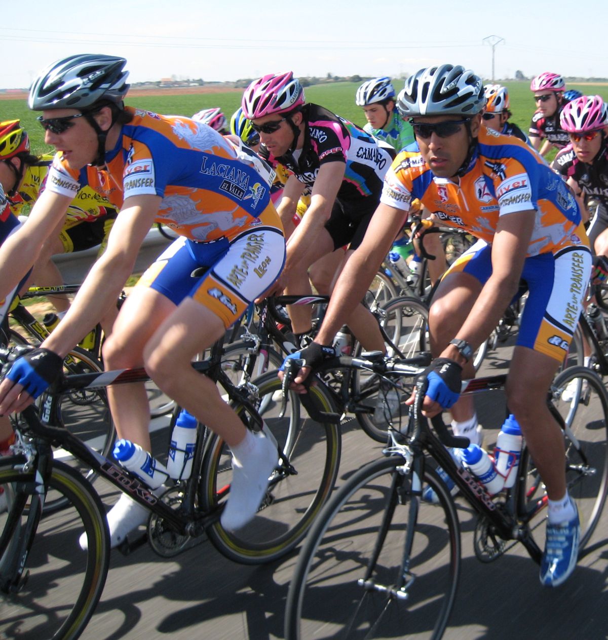 Mientras andaba yo por la oficina sacandole fotos a los guardianes de la misma se hizo una escapada numerosa, donde se había metido Abraham Montoya, por lo menos a alguno llevabamos, en el pelotón cierta pasividad, entramos en Bermillo de Sayago y de repente.. caida!! Montonera por la derecha.. a mi me salvó que justo me había cambiado de lado progresando por la izquierda, justo después de la caida estaba el giro a la derecha y de allí salieron los Paulinos esprintando.