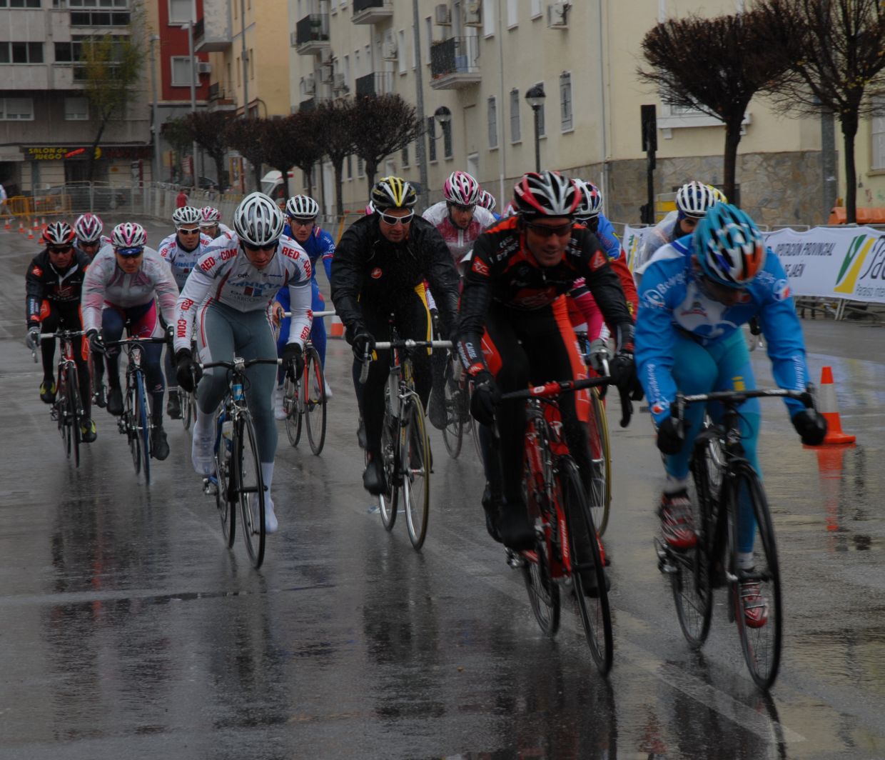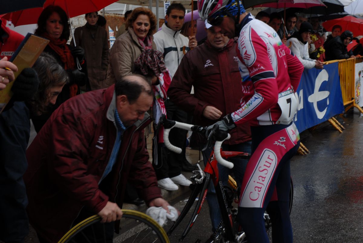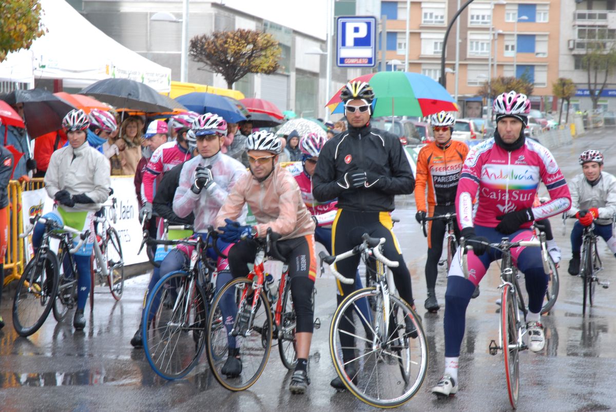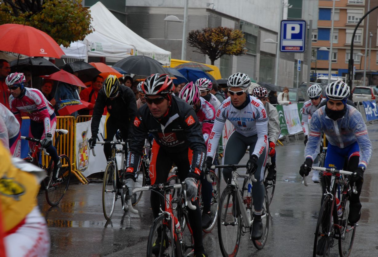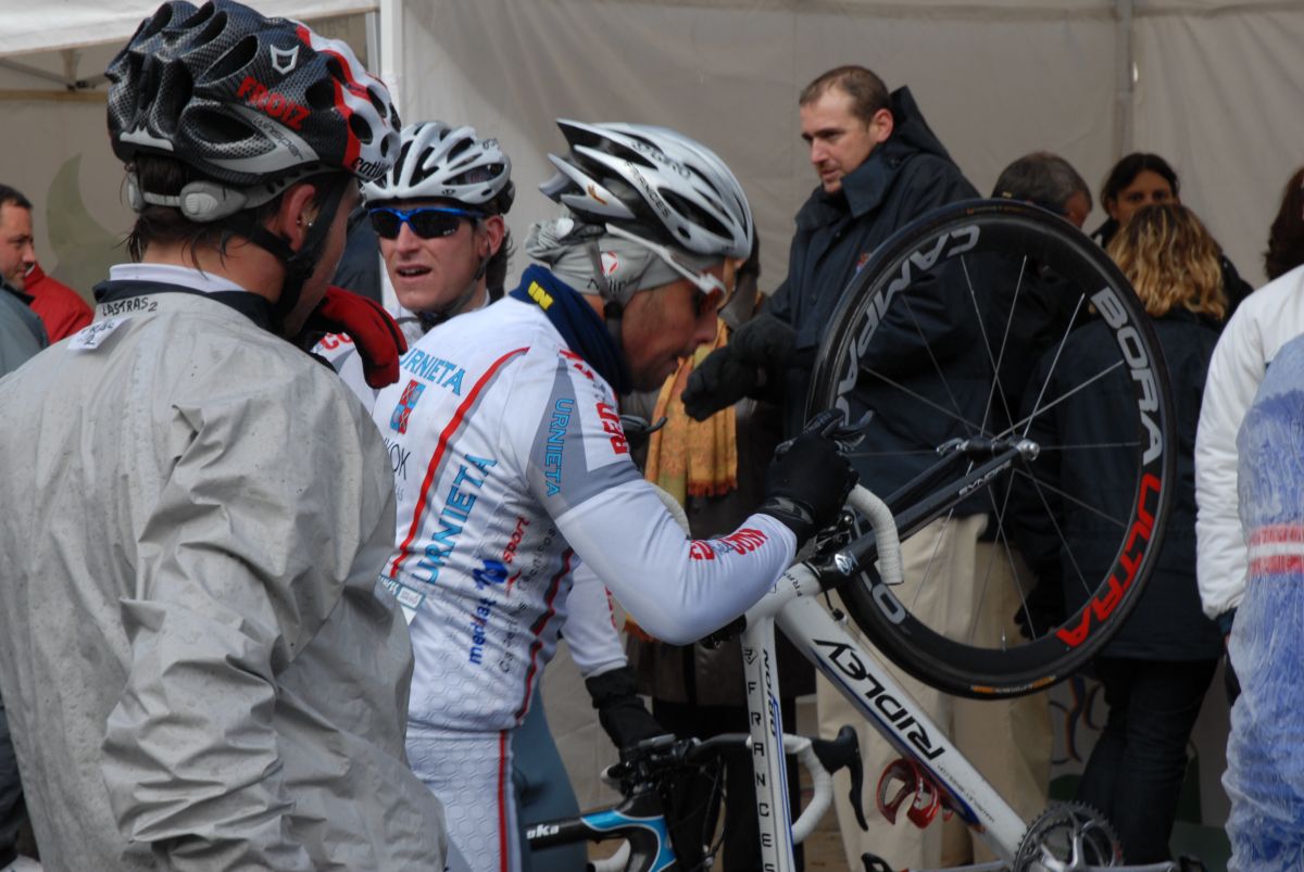![]() Ciclistas preparandose para la salida con los chubasqueros, el hombre del Froiz, Marcos García, Luis León, Benitez, Javi Moreno.. |