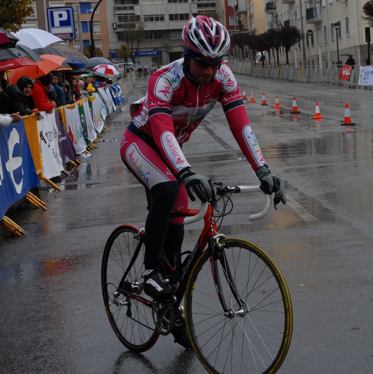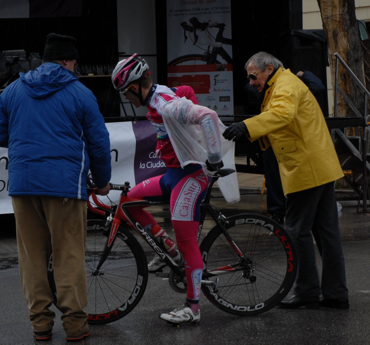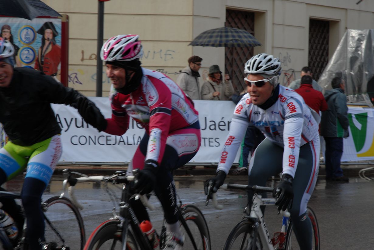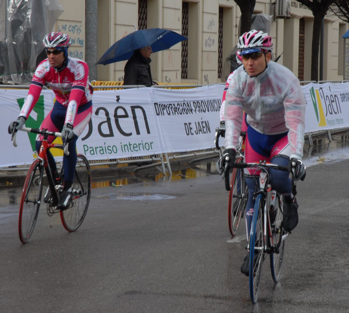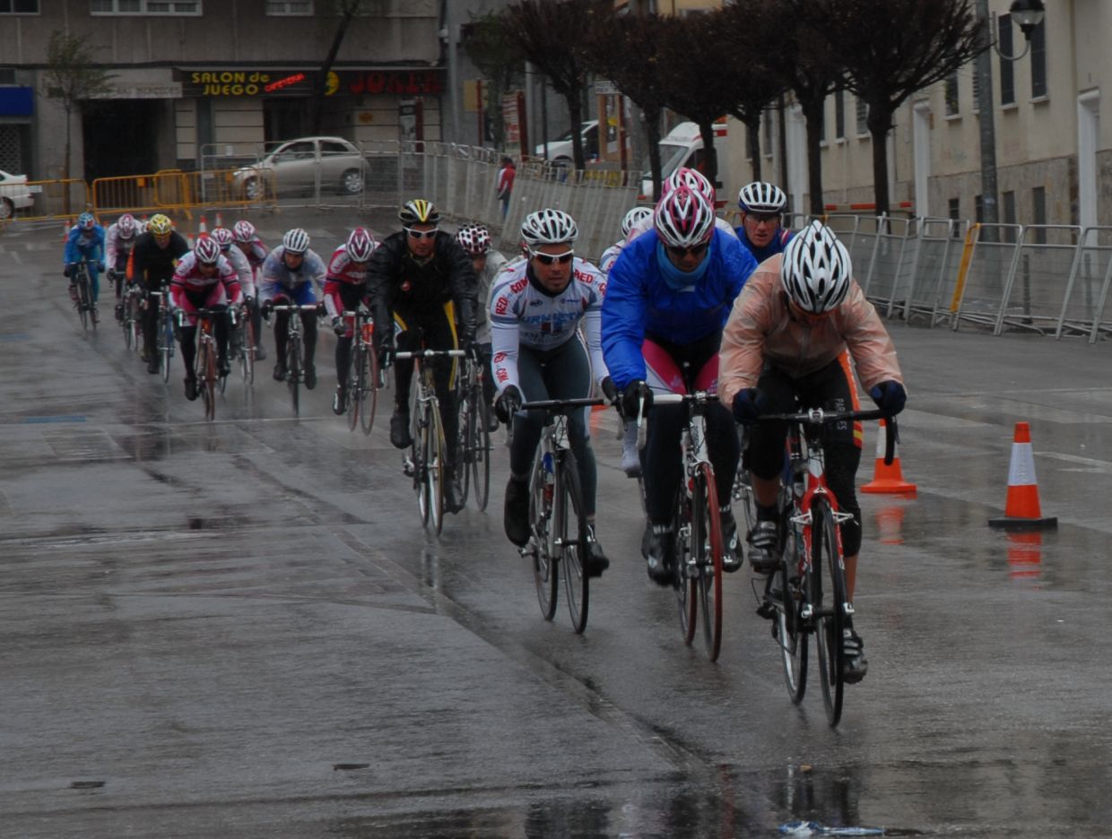 ![]() Ciclistas preparandose para la salida con los chubasqueros, el hombre del Froiz, Marcos García, Luis León, Benitez, Javi Moreno.. |
