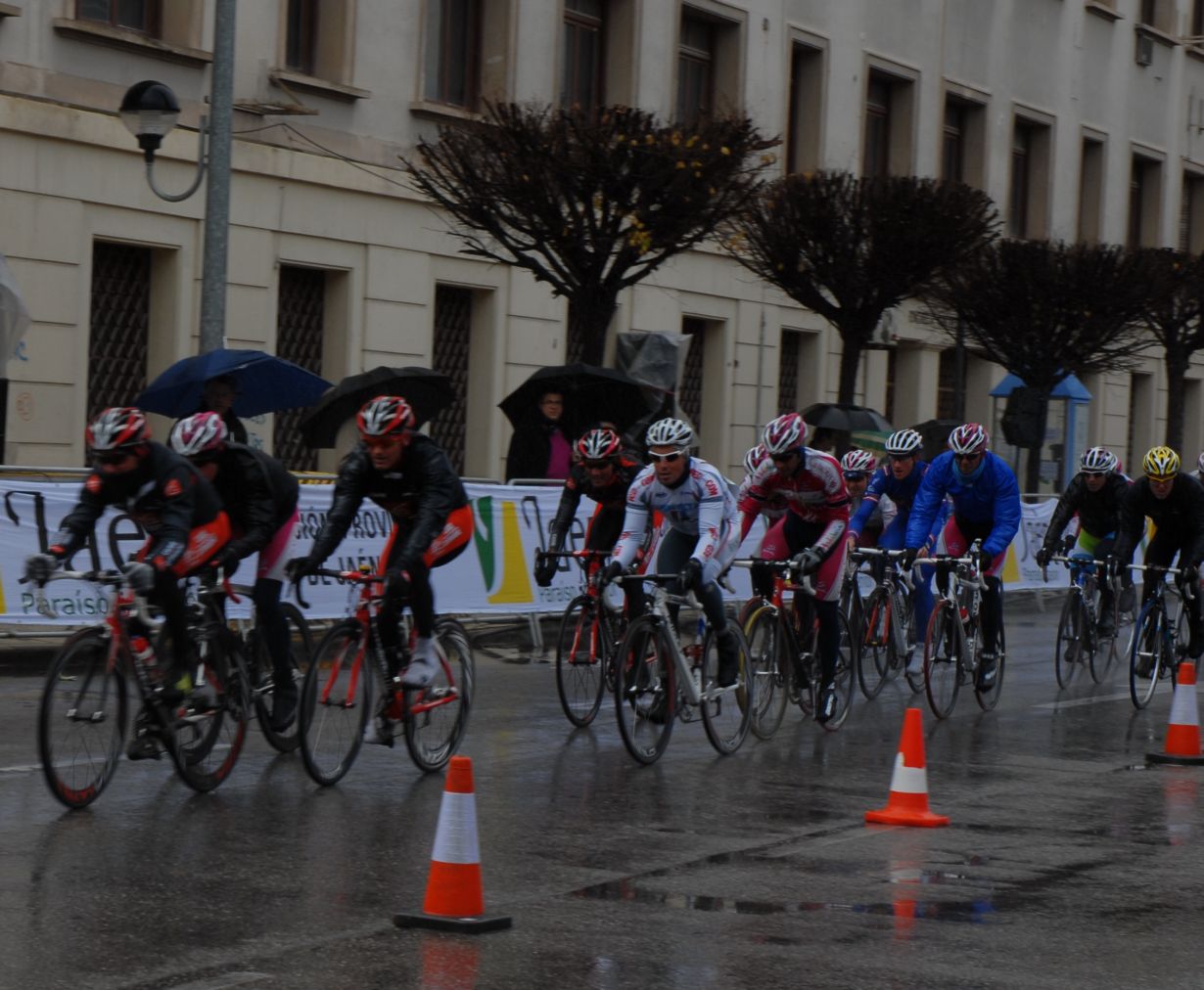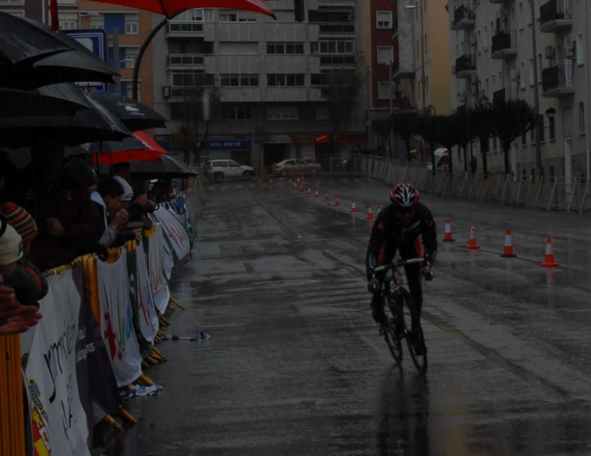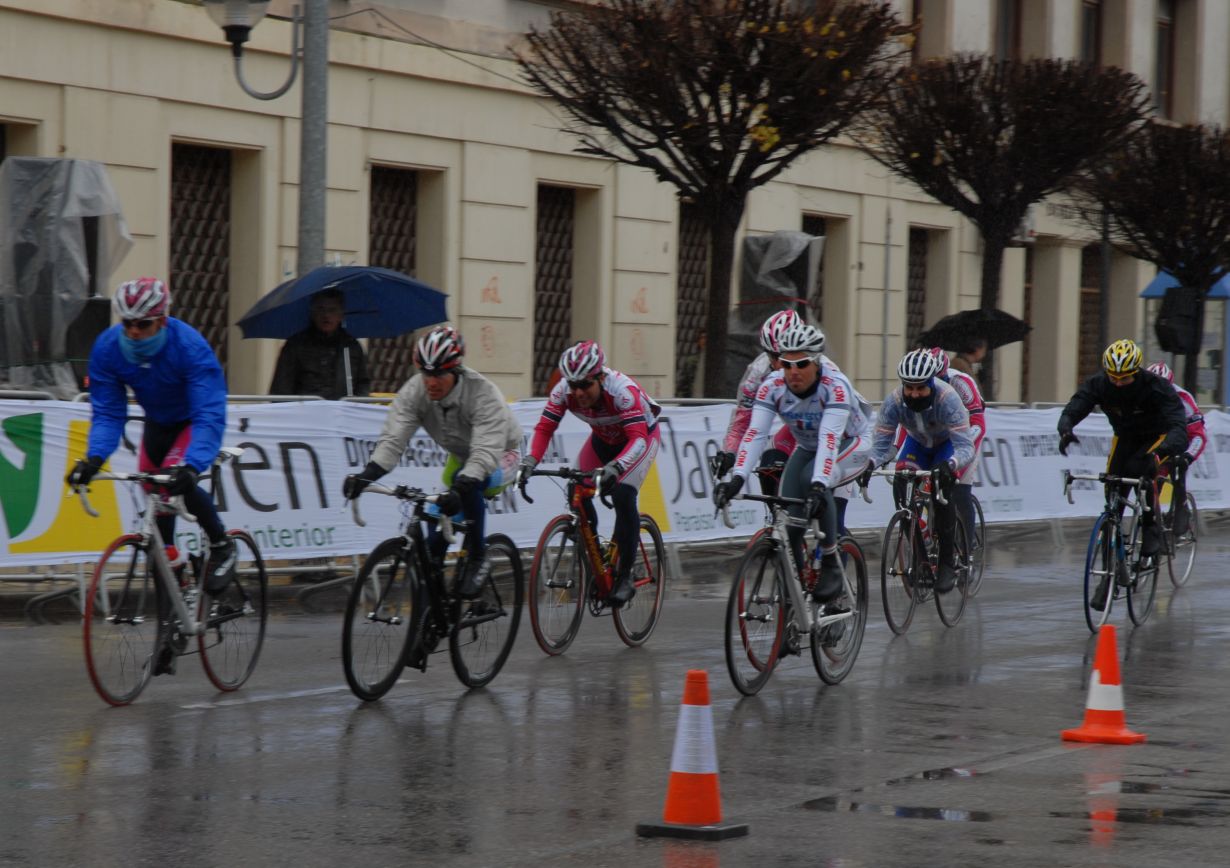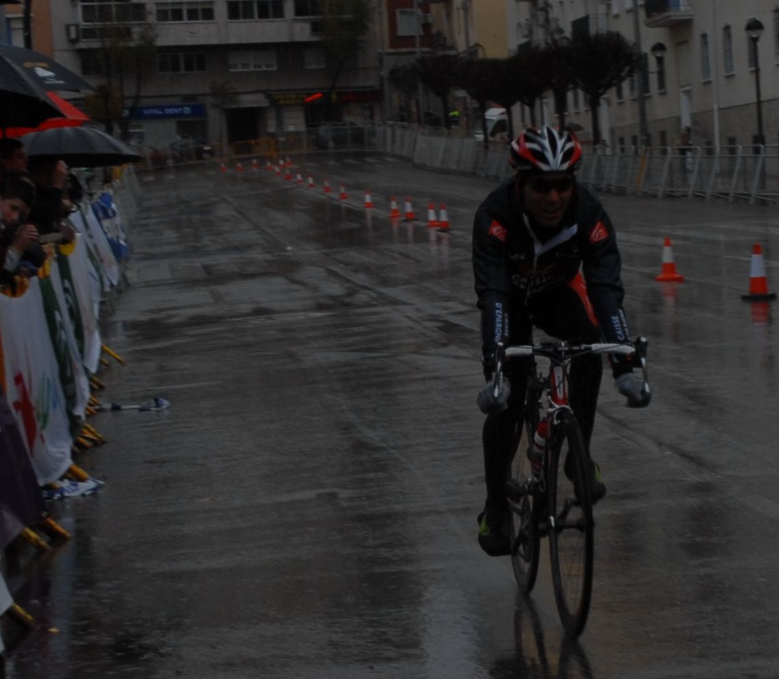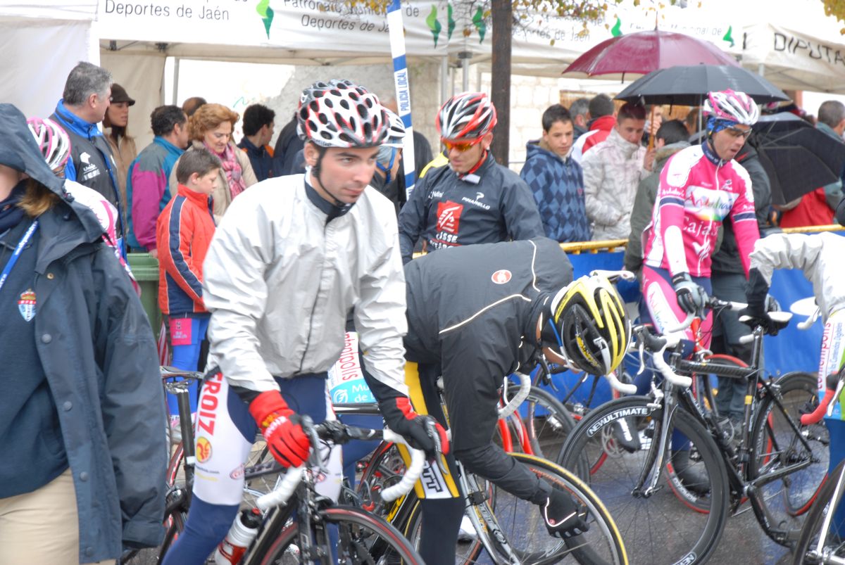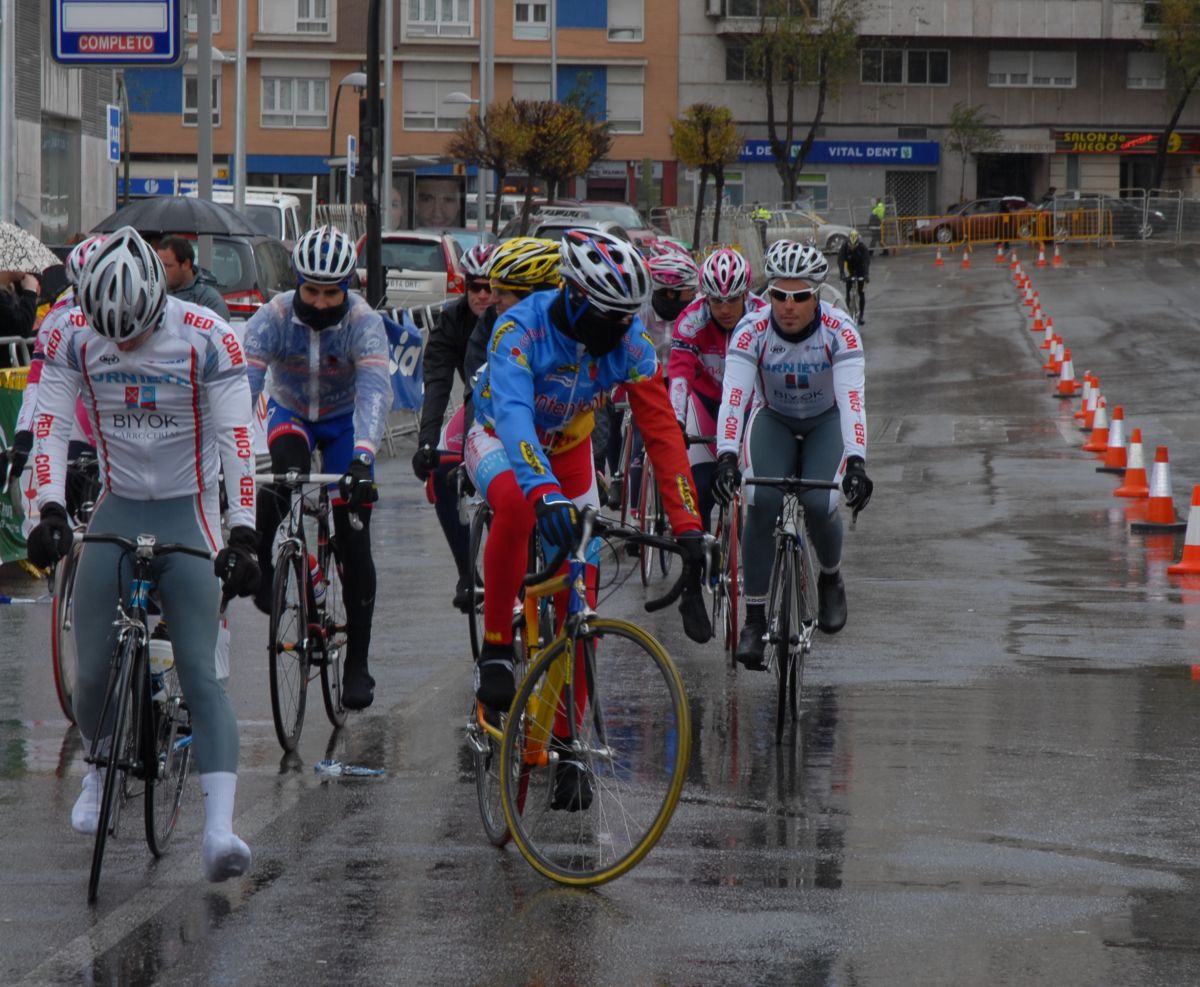 ![]() Ciclistas preparandose para la salida con los chubasqueros, el hombre del Froiz, Marcos García, Luis León, Benitez, Javi Moreno.. |