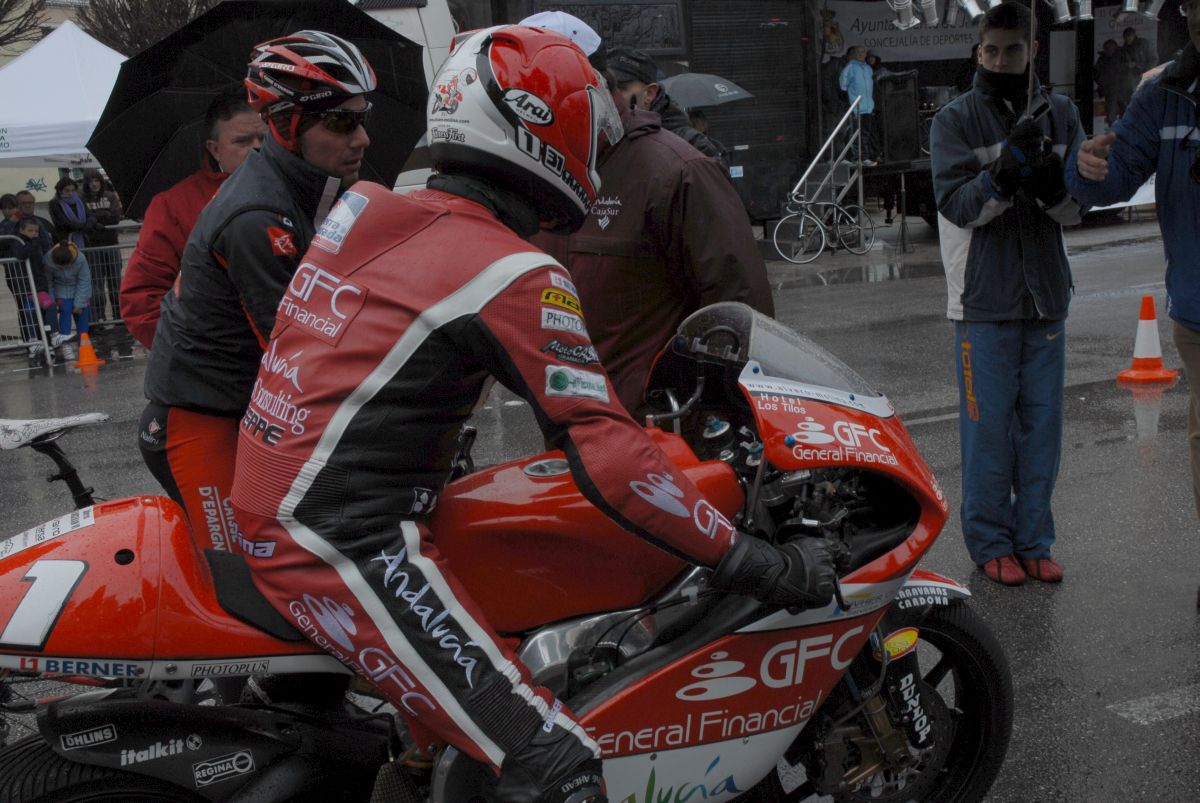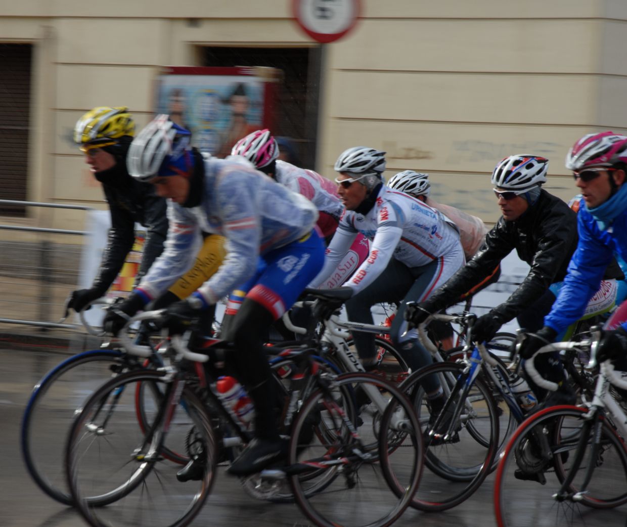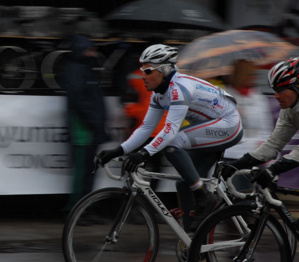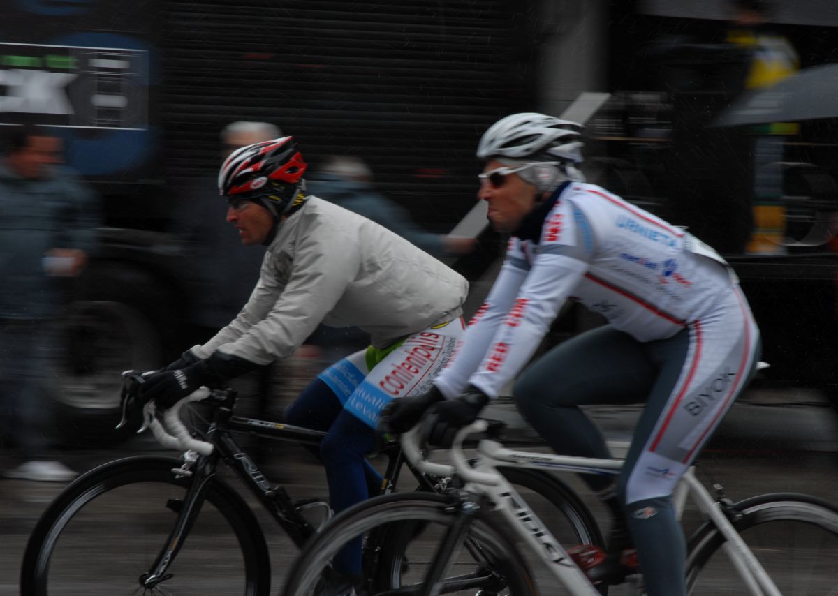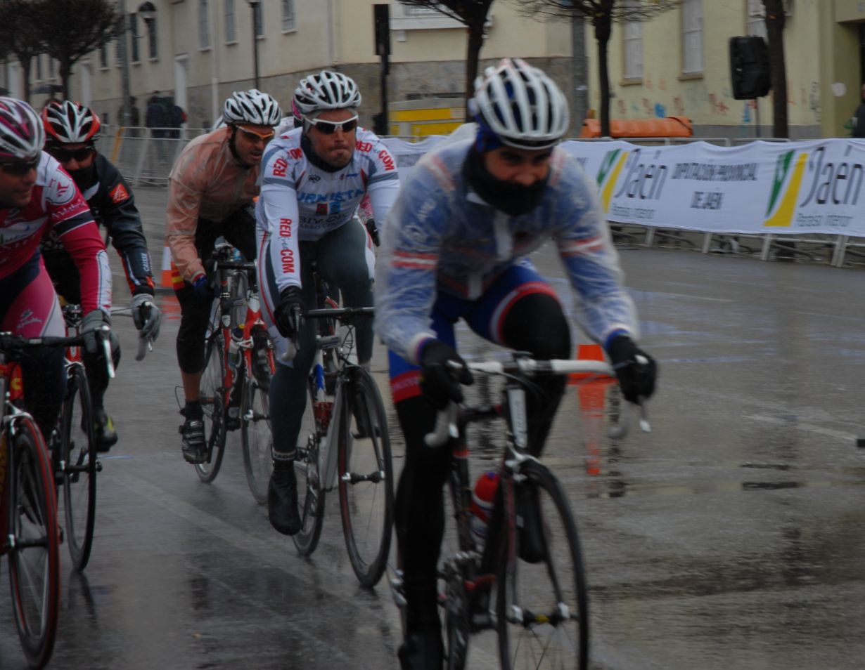 ![]() Ciclistas preparandose para la salida con los chubasqueros, el hombre del Froiz, Marcos García, Luis León, Benitez, Javi Moreno.. |