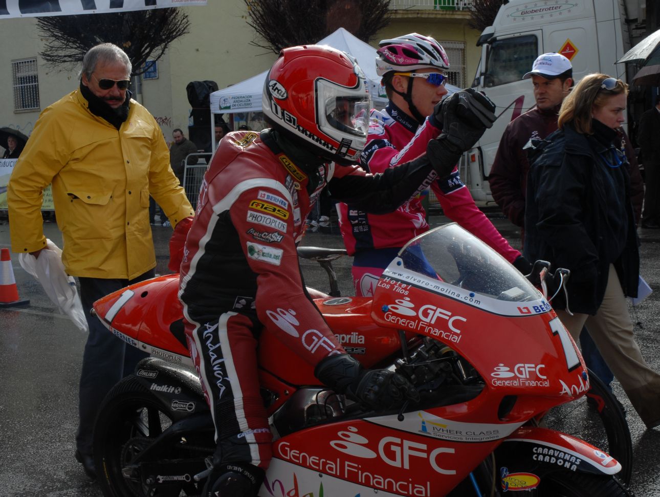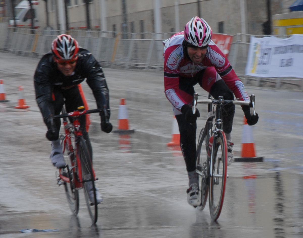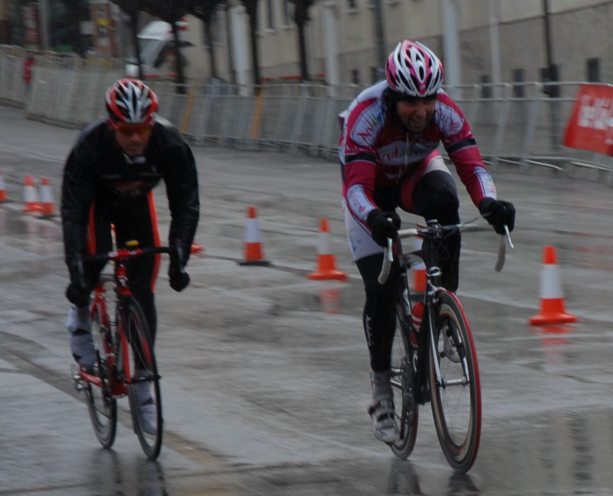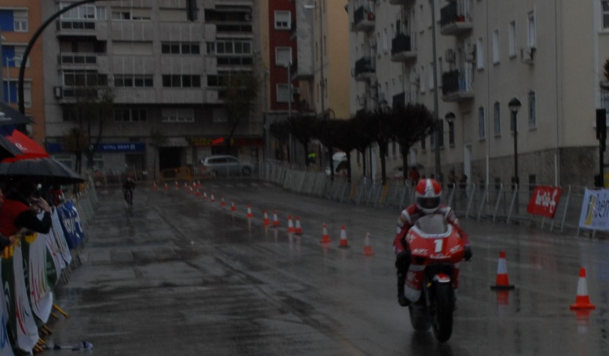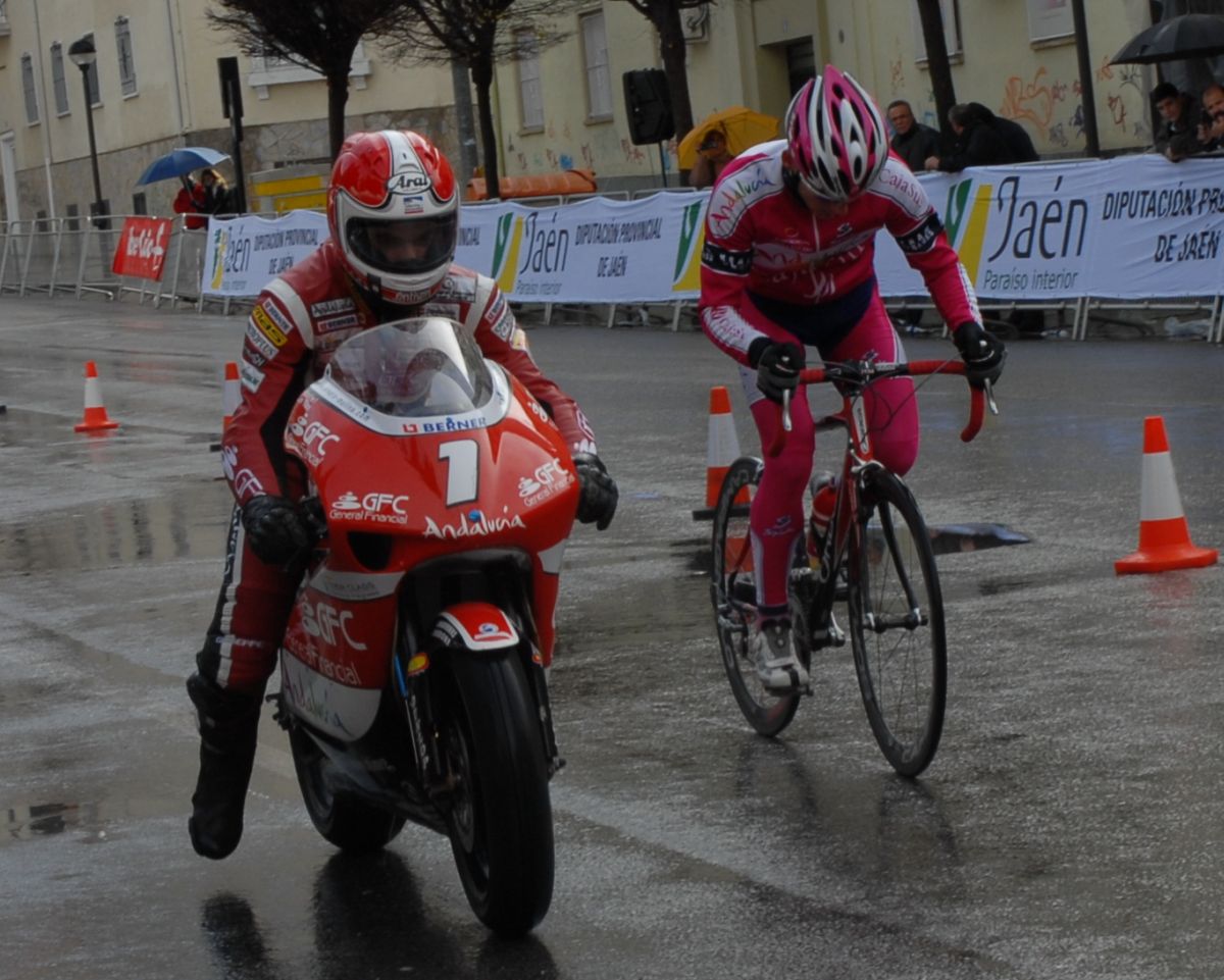 ![]() Ciclistas preparandose para la salida con los chubasqueros, el hombre del Froiz, Marcos García, Luis León, Benitez, Javi Moreno.. |