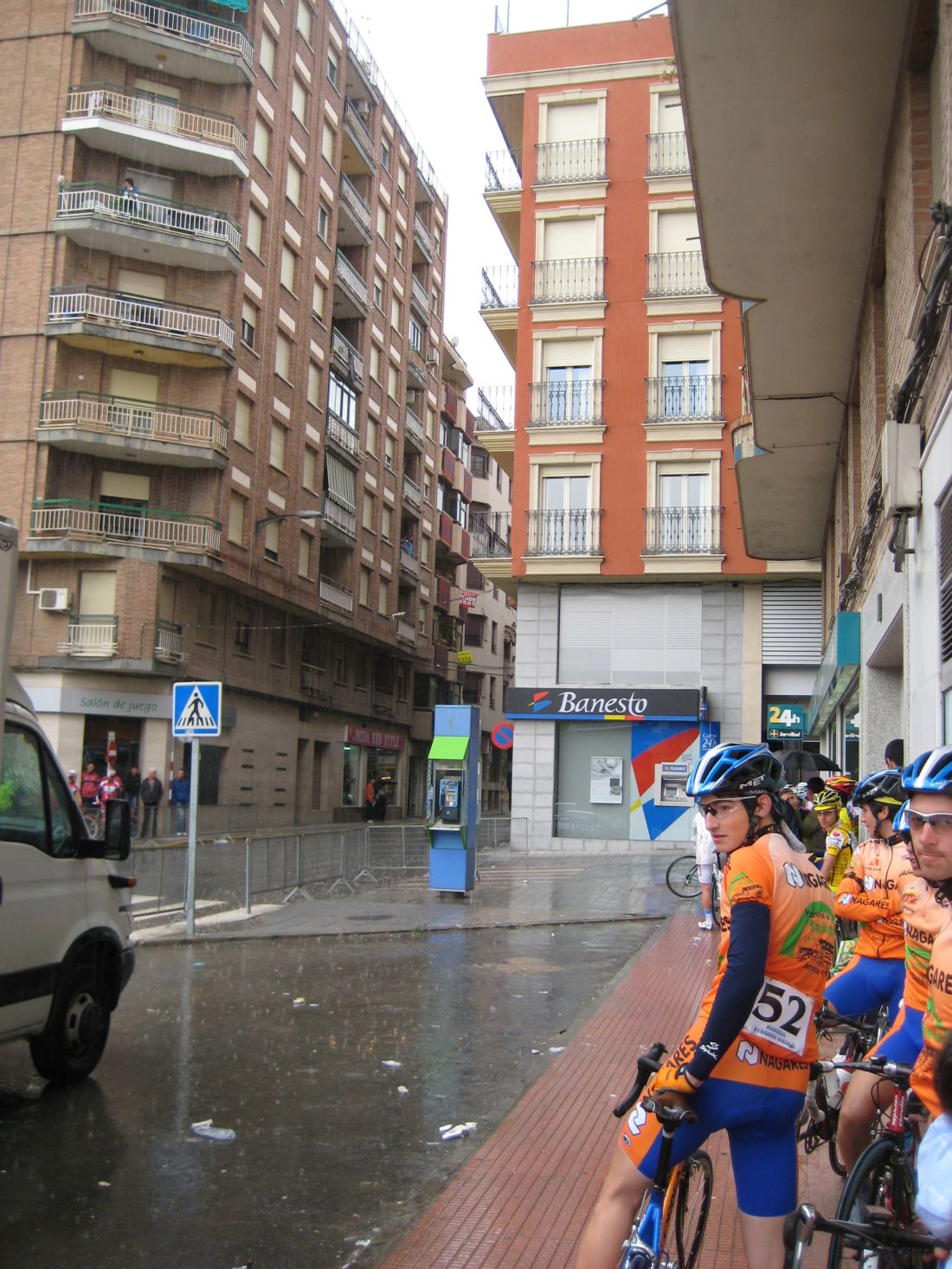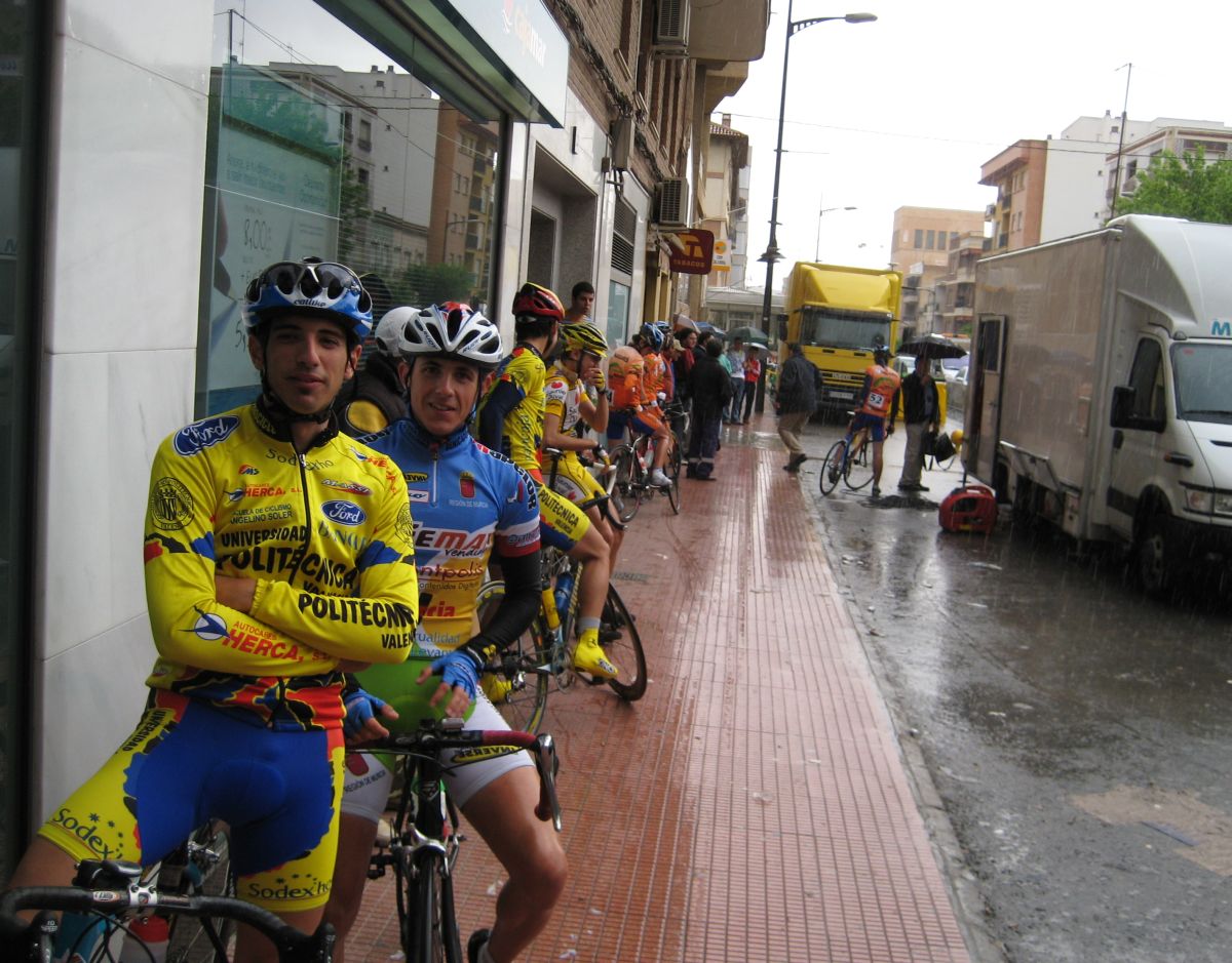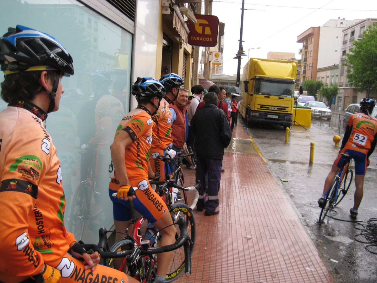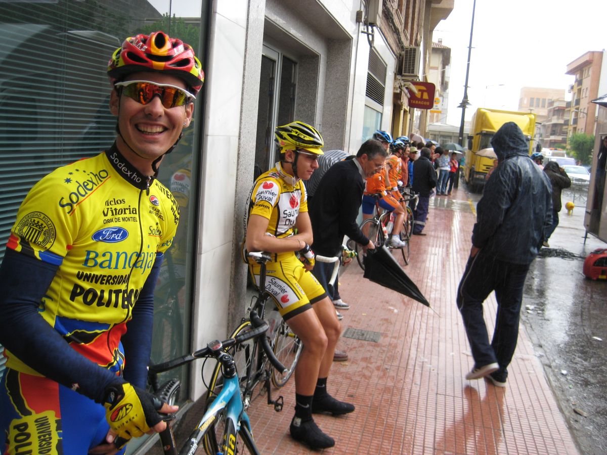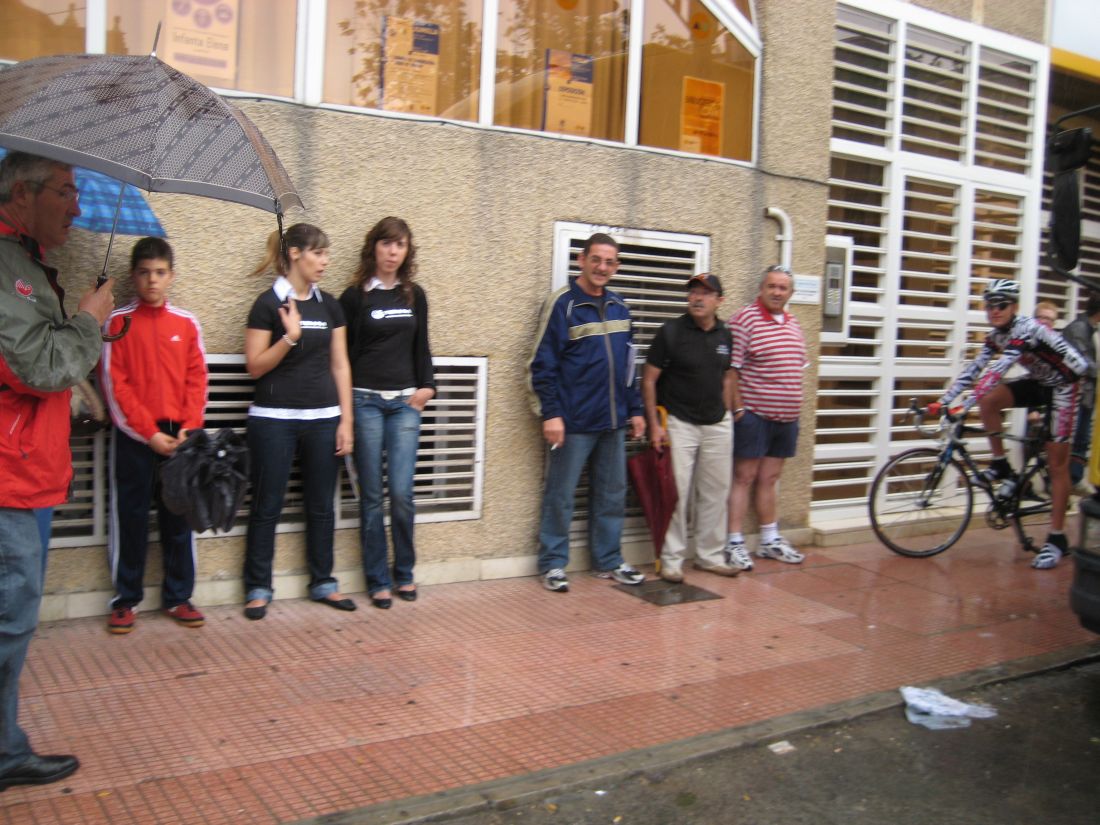 Fuerte lluvía en Jumilla, Murcía, Memorial Bernardo Gonzalez, que nos acojonó en la salida y nos tuvo metidos en los garajes y cornisas esperando a que parara un poco viendo como corrían los rios de agua, el único que calentaba con tanto rio era el Rockand Rios, que se le veian sus intenciones de dar el saque de honor.