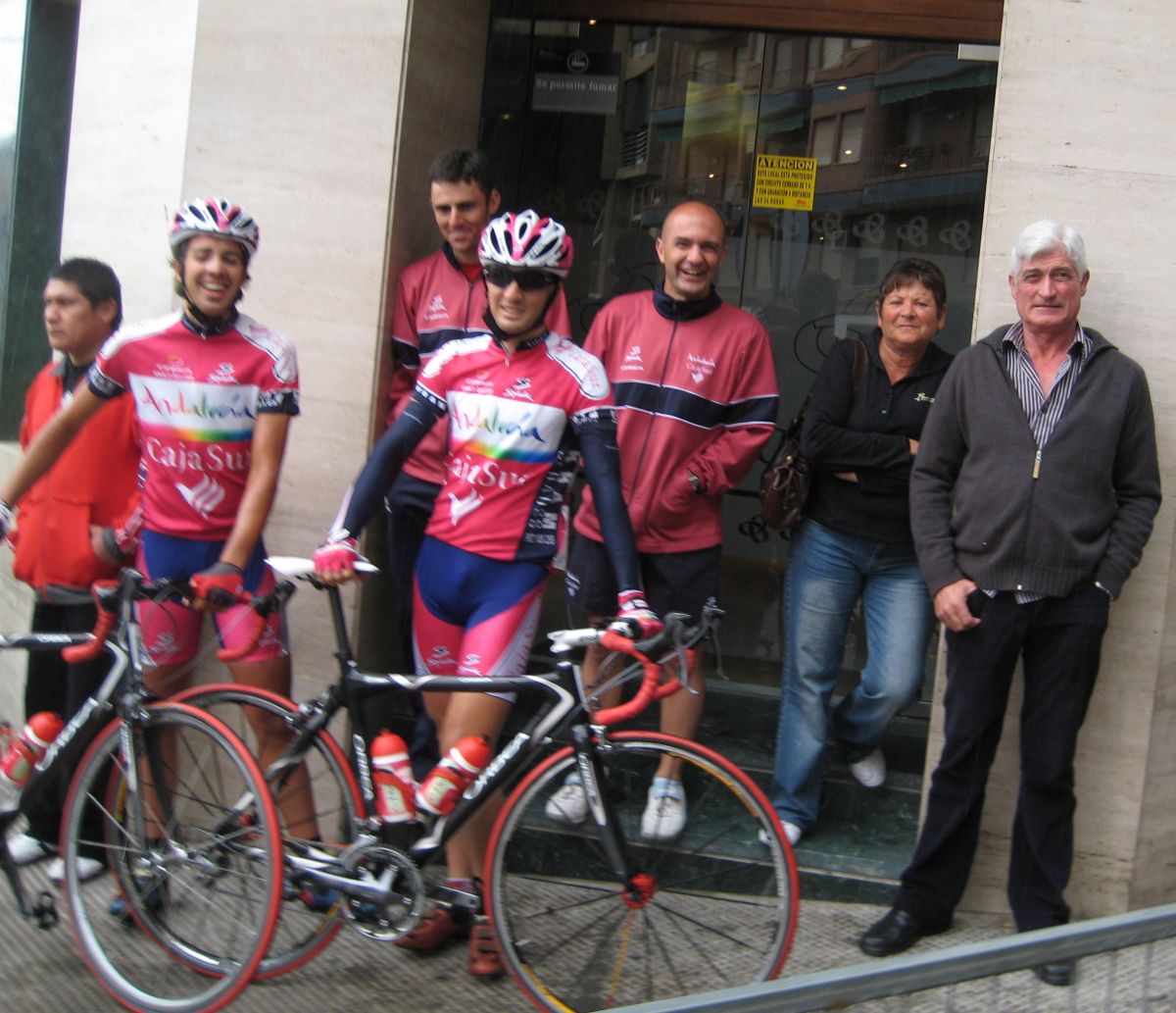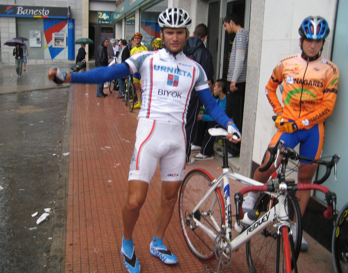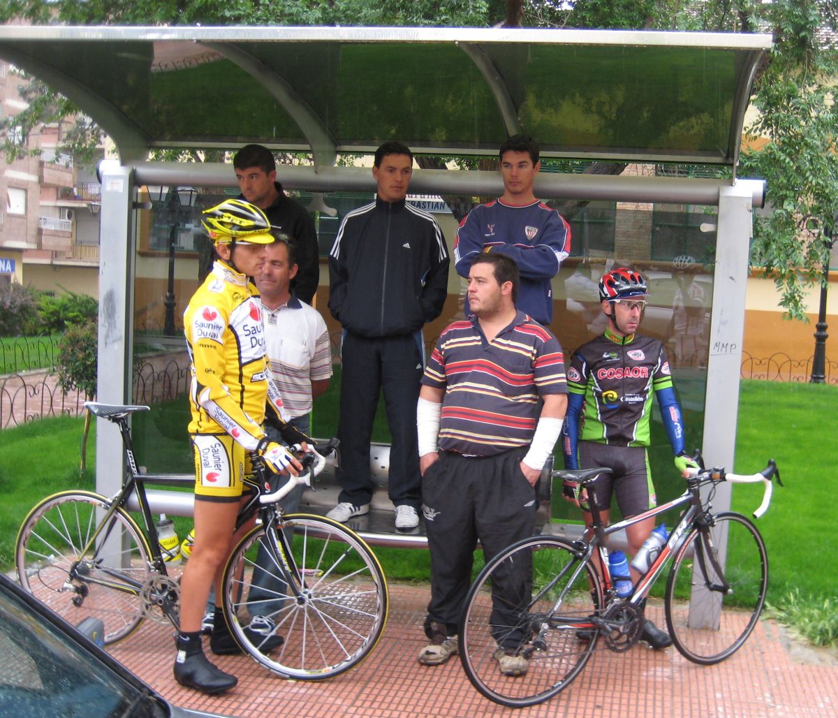 Arrancó Saul, mi compañero Saul, la primera vez que corro con el este año, y se puso a cabalgar solo por delante, Saul es un tio que rema el solo, tiene palanca, mas alto que Indurain, puede ser el tio mas alto de todo el pelotón, el ranking de altos lo gana jeje, por detrás empezaron a arrancar en una subida durilla y yo estuve atento y me metí, se cortó y se hizo la fuga buena coronando la subida esa dura, se habían metido el Abeja, el Mantecón, Rienda, el Estebitan...