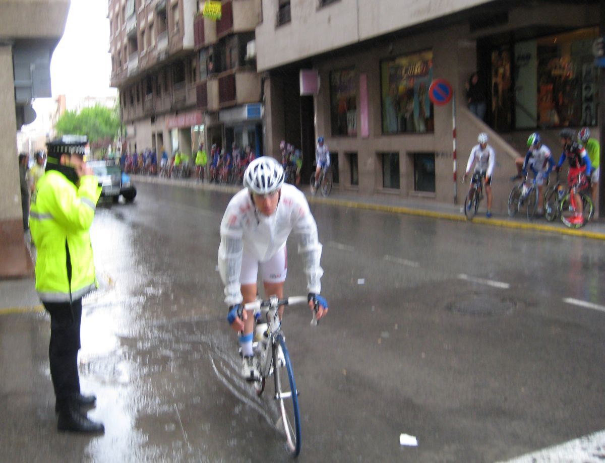 Llegamos a Jumilla, Meta Volante con lluvia, yo al saber que había giros con pasos de cebra, me autodescarté de disputar esa Meta Volante, no me arriesgué a caerme, la puta lluvia que tiene que joder siempre en las carreras, en Astillero, En Cuellar, en Castellón,, este año me persigue la lluvía!! 3 semanas sin correr con sol y calor,, llegan las carreras y se pone a llover para que yo me acojone y pierda cosas.