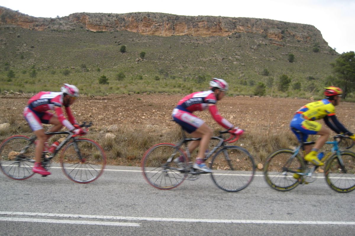 Otra vez el puertecillo de antes, nosotros ibamos bien a buen ritmo, pero por atrás, lo típico, iban a atacar, quien sino, el Totanero era el que iba a removerlo todo, tipico en el cuando llegan las subidas jeje, se acercó el pelotón pero apretamos y nos volvimos a ir, esta vez ya con mas consistencia, aunque en otra recta vimos que no iban demasiado lejos, el pelotón nunca estuvo lejos del todo.