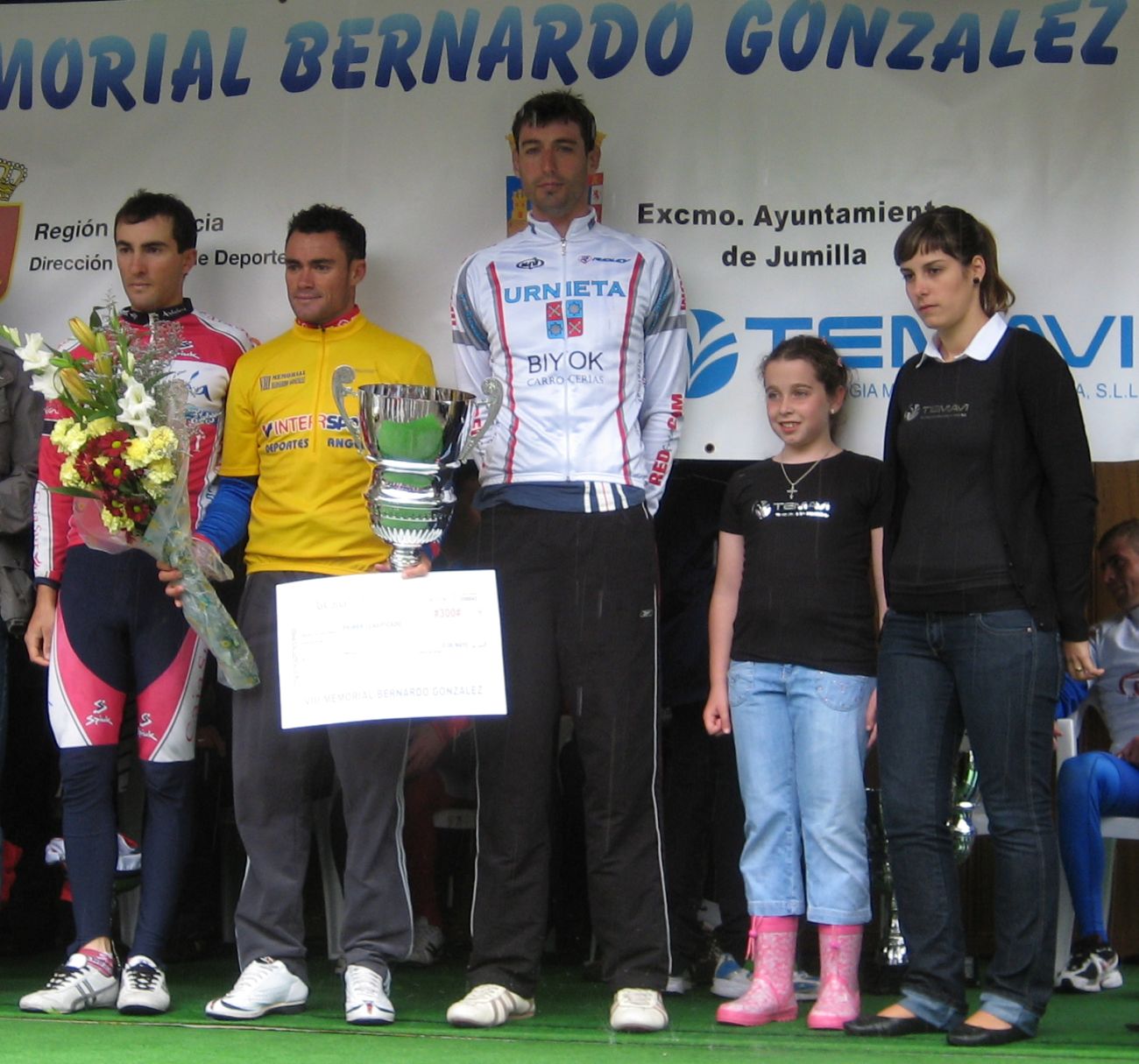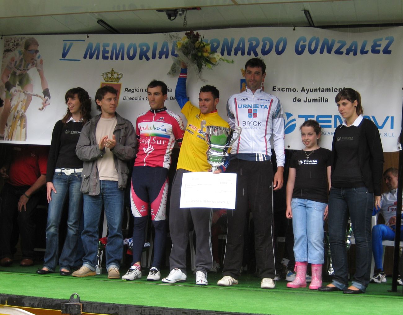 Llegaron 2 que se habían quedado de la fuga y después el pelotón al sprint, que locura.. se cayeron hasta después de pasar la meta, Dani Cordón tropezó con el Algarrobo y cayó en una piscina!! en un charco nadando, menuda caida! se tiró a la piscina del agua que había en la carretera.